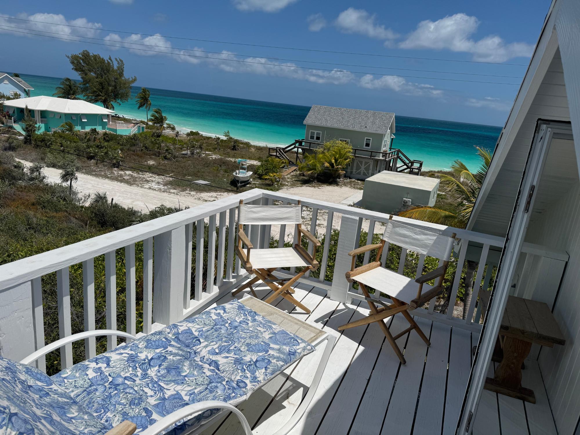 Located just across from the stunning Sugar Beach on Great Harbour Cay, this turnkey, cozy two-bedroom, one-bath cottage with a spacious full loft is the perfect island retreat or income-producing vacation rental. The home features an inviting front porch overlooking the Atlantic Ocean, ideal for relaxing and taking in the sea breeze.