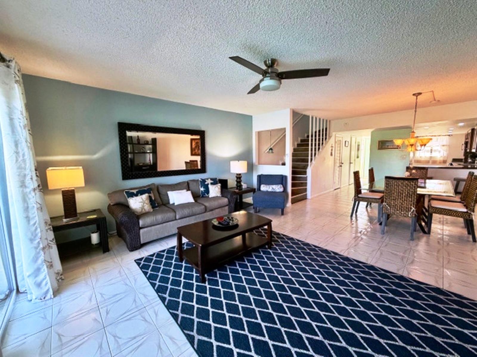 Enjoy the comfort of this newly renovated condo with great potential for short-term rental income! This condo is extremely spacious and bright. It consists of 2 bedrooms, 2.5 bathrooms, a kitchen, a living room, and a dining room. The condo offers amazing views from 2 large balconies, one from the main living area and one from the master bedroom, looking out onto the beautiful blue waters of the Xanadu beach channel. This condominium complex of just 12 units within a larger, gated community located on the sea channel in walking distance of Xanadu beach. The complex has a pool surrounded by palm trees overlooking the channel. The condo has 2 bathrooms and a powder room on the main floor. There's a laundry room tucked under the stairs with a front-load Bosch washer and dryer for added convenience. The kitchen is very large and custom-designed, featuring pot drawers, a built-in dishwasher cabinet, a slide-out garbage compartment for a seamless look, and granite countertops and backsplash. There is ample cupboard space and a large pantry as well for all your small kitchen appliances.