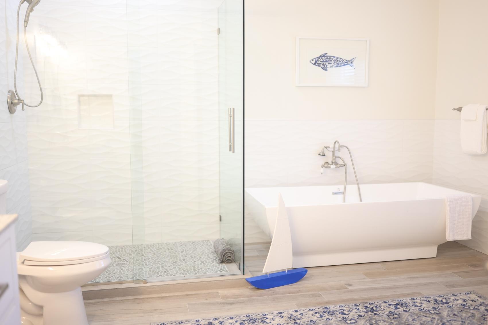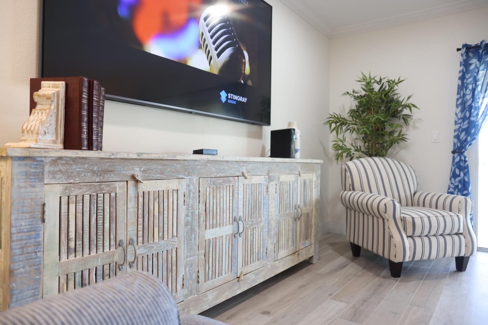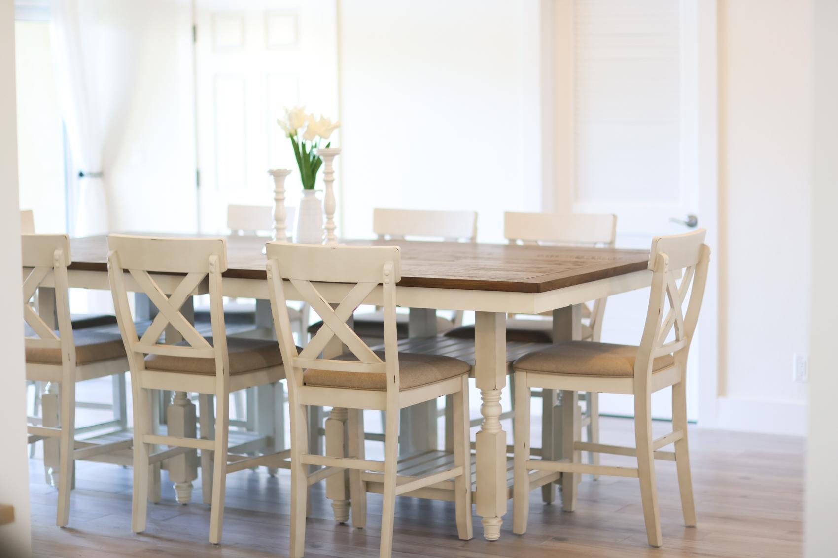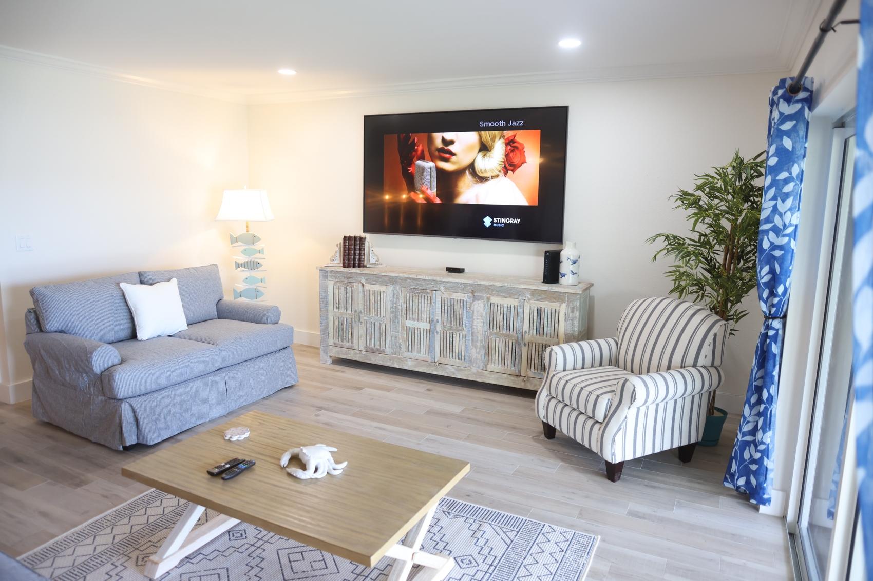 The Eleuthera Villa is 3 bedroom 3.5 bath villa overlooking the marina at Villa Marina Cove. Centrally located on Midshipman Road it is conveniently located between Taino Beach and Port Lucaya. The 3 bedrooms are elegantly furnished with king beds and premium linens with ensuite luxury bathrooms. The living room features an 85-inch TV and the bedrooms are equipped with 55-inch smart TV’s. 1 bedroom is located on the ground level with the gourmet kitchen, large dining area and living area with patio doors leading to an outdoor patio and the marina. There is also a half bath and full-size washer and dryer located on the ground level. Upstairs features a large master suite equipped with ensuite bathroom with glass shower stall, double vanity, and soaker tub. It also has its own private terrace. The 2nd upstairs bedroom has a king size bed, desk and ensuite bath. Covered parking and an outdoor pool are included and the entire property is secured and gated.