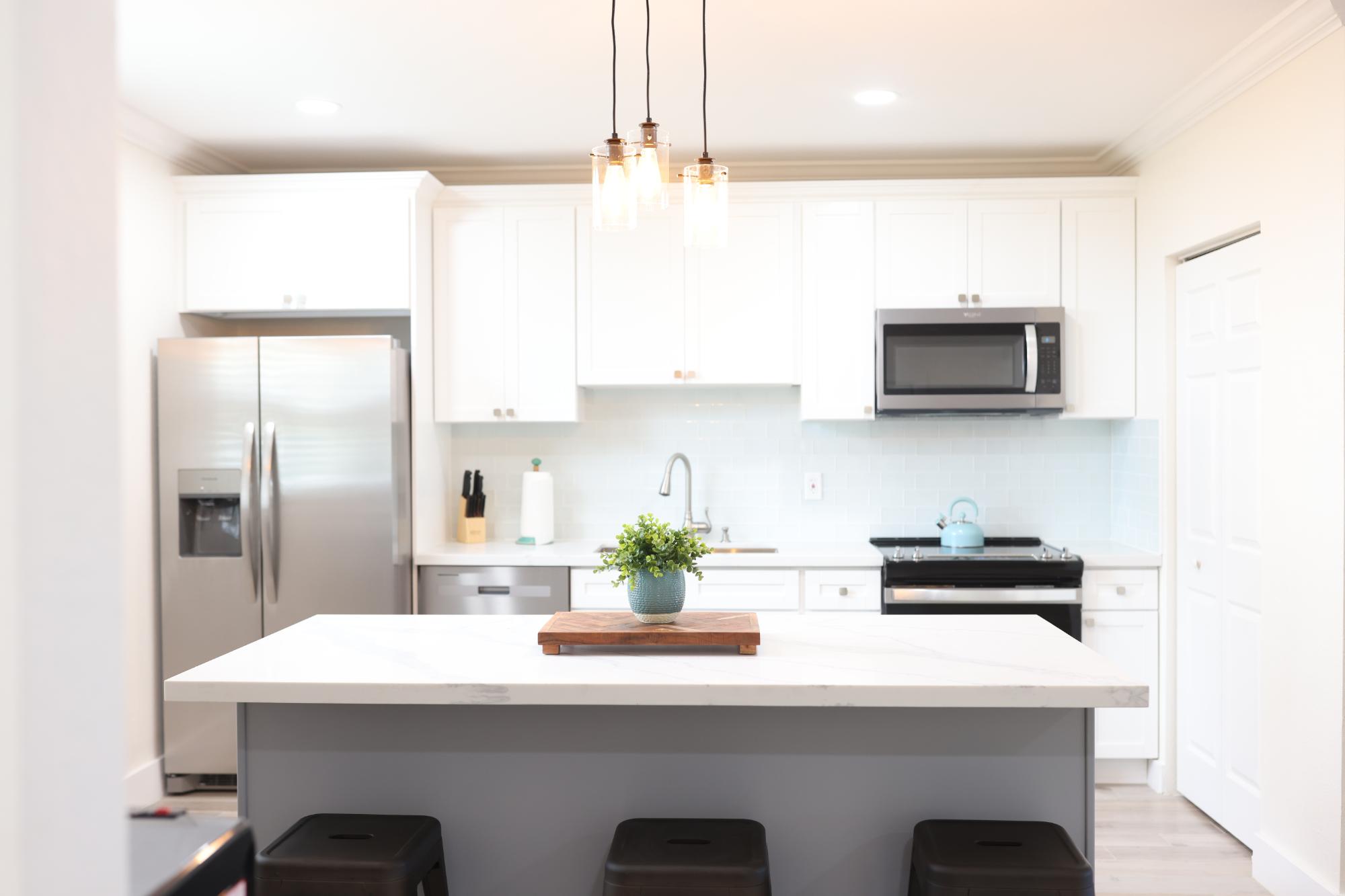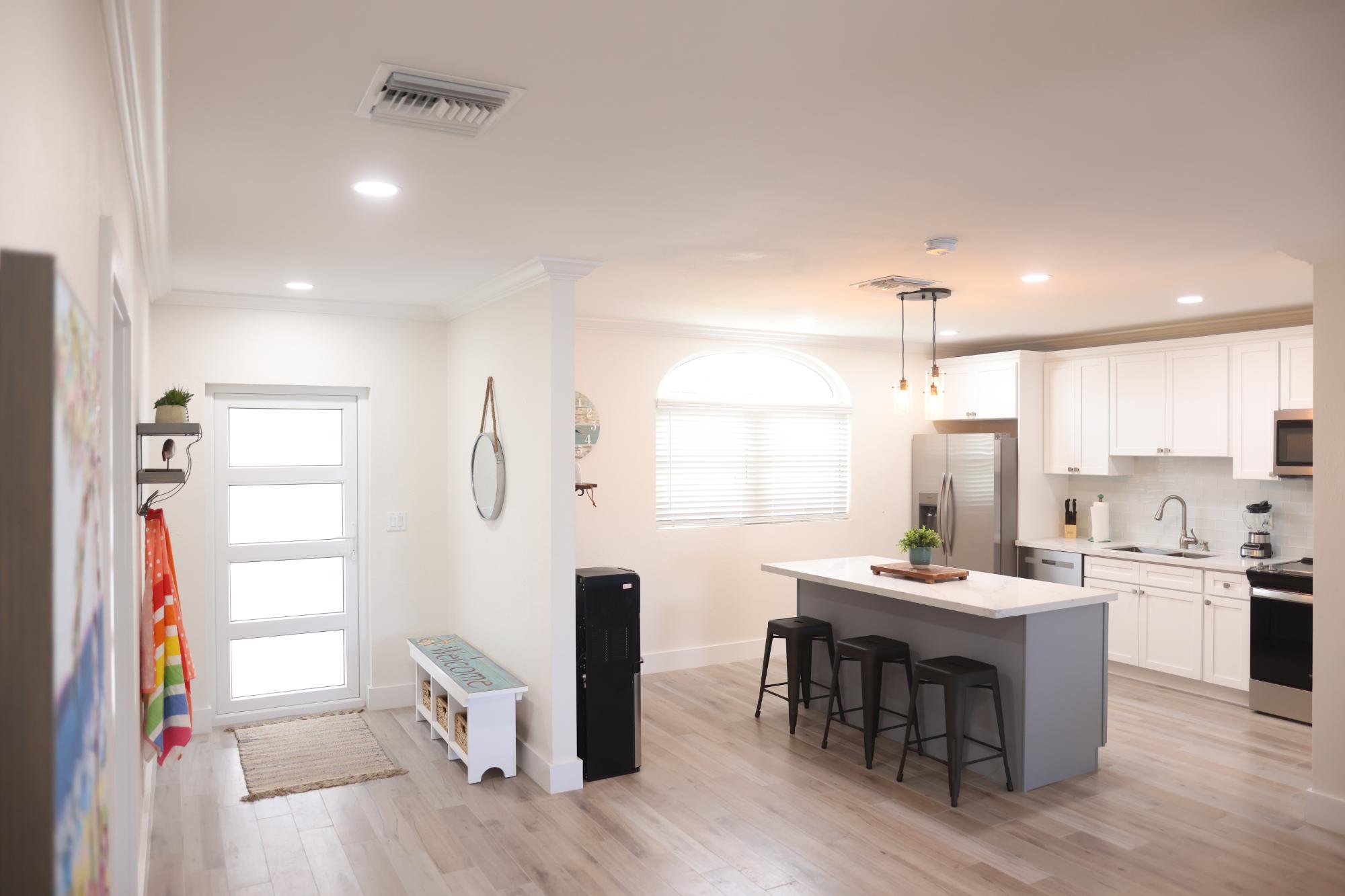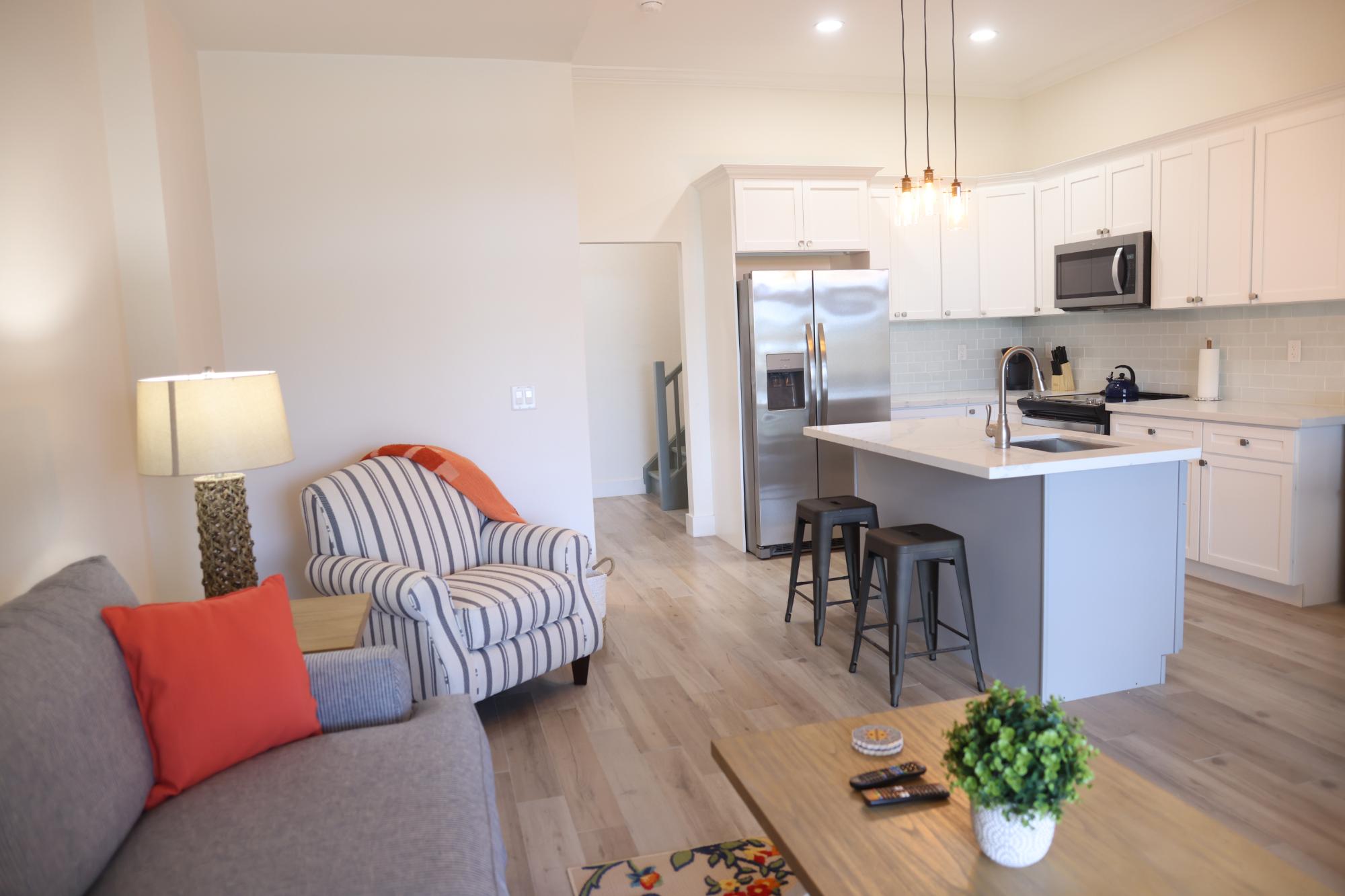Centrally located on Midshipman Road Villa Marina Cove is conveniently located between Taino Beach and Port Lucaya. Villa Marina Cove is a boater’s paradise located on the Bell Channel Canal close to beaches, shopping and attractions. Features include private docks accommodating vessels up to 100', with power & water. Outdoor pool with BBQ area and lounge chairs. Each of the six two level spacious villas overlook the marina from private patios. All the units have gourmet kitchens and are fully turn key with furniture, linens, towels, cutlery and dishes. All but one bedroom have king beds, 55" smart TV's and feature ensuite full bathrooms. Each villa includes large dining and living areas and include washer & dryers. One unit is fully wheelchair accessible on the ground floor with a separate entrance, ramps, and a compliant bathroom and kitchen. The entire property is secured and gated with covered parking.