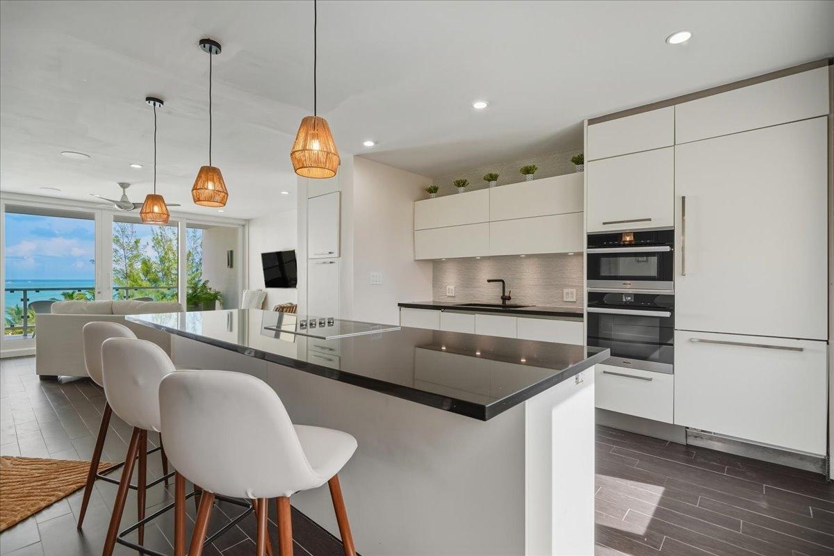 Experience coastal living in this modern 3-bedroom, 2-bathroom unit on the 4th floor of Rawson Court, Cable Beach. This fully renovated unit showcases stunning ocean views and a sleek and spacious kitchen that opens into a bright, airy living and dining area, ideal for entertaining. Just steps from the living room, enjoy an oceanfront patio perfect for relaxation and unwinding. The spacious master suite offers an ocean view, his-and-hers walk-in closets, soaking tub, and stand-up shower. This unit also boasts 2 additional bedrooms and another spacious bathroom, offering ample space for family or guests. The unit comes fully furnished with island-chic furniture and decor, impact windows, in-unit laundry and is ready for immediate occupancy. At Rawson Court, residents enjoy gated entry, a large oceanfront pool with deck and cabana, beach access, and a tennis court. Rawson Court is ideally located on Cable Beach near shops, restaurants, and grocery stores.