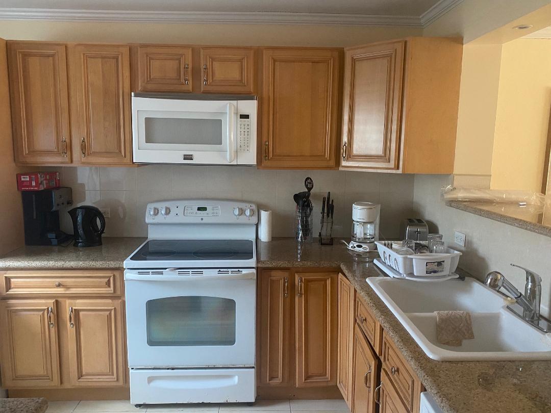 3 bed, 2 1/2 bath, washer dryer, ocean front, back patio, furnished, TV, water cooler, fridge, stove, microwave, and linen.