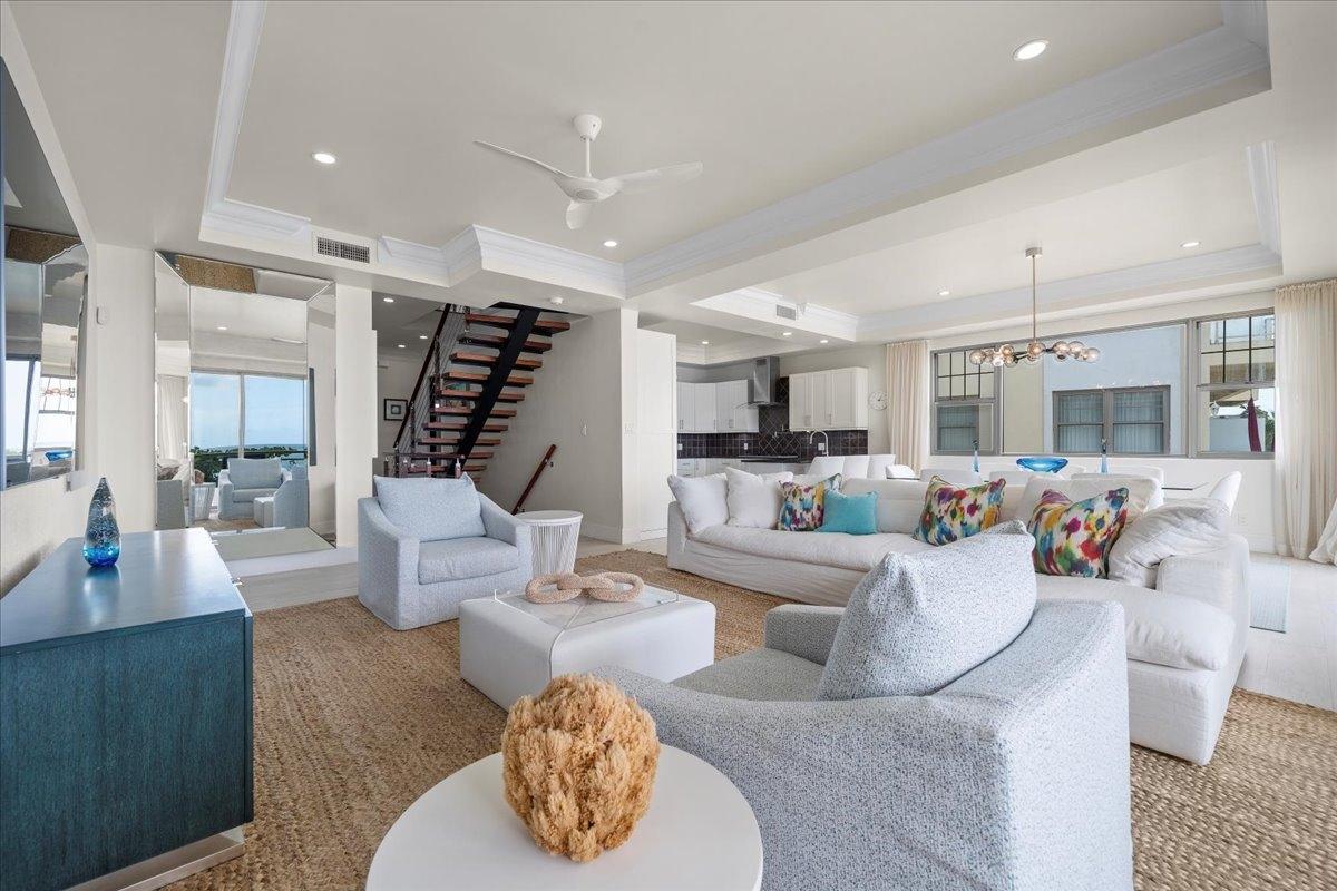 Set directly on the sands of Love Beach, this rare corner townhouse offers three levels of refined oceanfront living in the gated community of Columbus Cove. With 4 bedrooms, 4.5 bathrooms, and a study, the residence features an open-plan living and dining area, a spacious kitchen with stainless steel appliances and island, and large balconies with sweeping ocean views. The master suite includes its own balcony and spa-style bathroom. The ground floor offers a self-contained studio apartment with private entrance—ideal for rental income, guests, or staff—alongside a garage and dedicated staff quarters. Community amenities include 24-hour security, two pools, and a fitness centre, all just minutes from Lynden Pindling International Airport, Old Fort Bay Plaza, King’s College, and Lyford Cay International School. Additional features include a generator and curated island-chic furnishings—offering turnkey oceanfront living in one of Nassau’s most desirable enclaves.