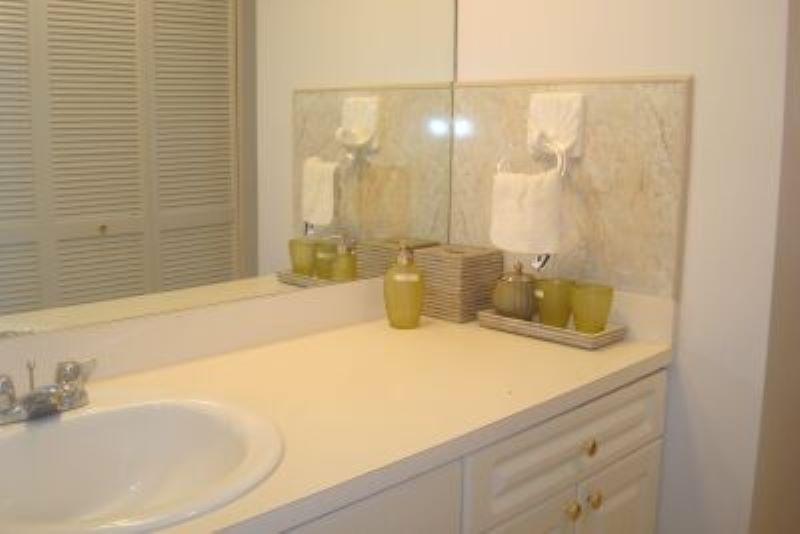 Just renovated and redecorated with new furniture! No. of bedrooms: 3 No. of bathrooms: 2 Fully Furnished, 24 Hour Security. In Lucaya, Grand Bahama, renovated and tastefully decorated is this 3 bedroom 2 bathroom condo located on the 4th floor North Building. Ceramic tile throughout out, new furniture and newly installed, antique white, maple kitchen cabinets and porcelain sink, water heater and central air conditioning are some of the amenities. The spacious kitchen has all the appliances you will need including a Brand New Stove and a separate "back" door entrance. Being a corner unit, every room in this condo has a great panoramic view of the island and cool breezes as well as partial sea views. This condo is very large and spacious with ample room and feels like a house but with the advantages of condo living!!