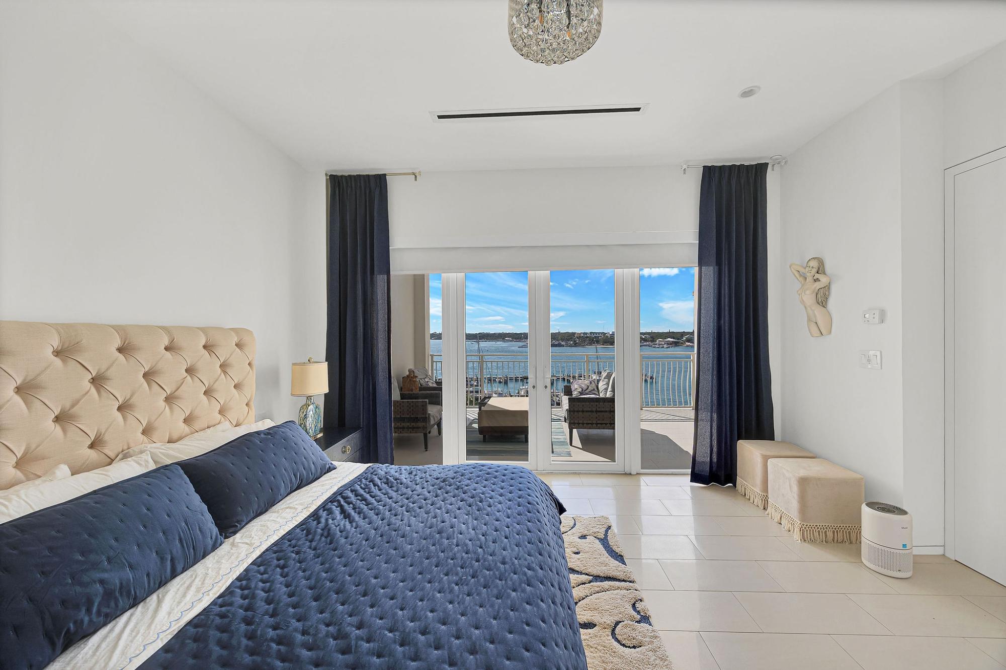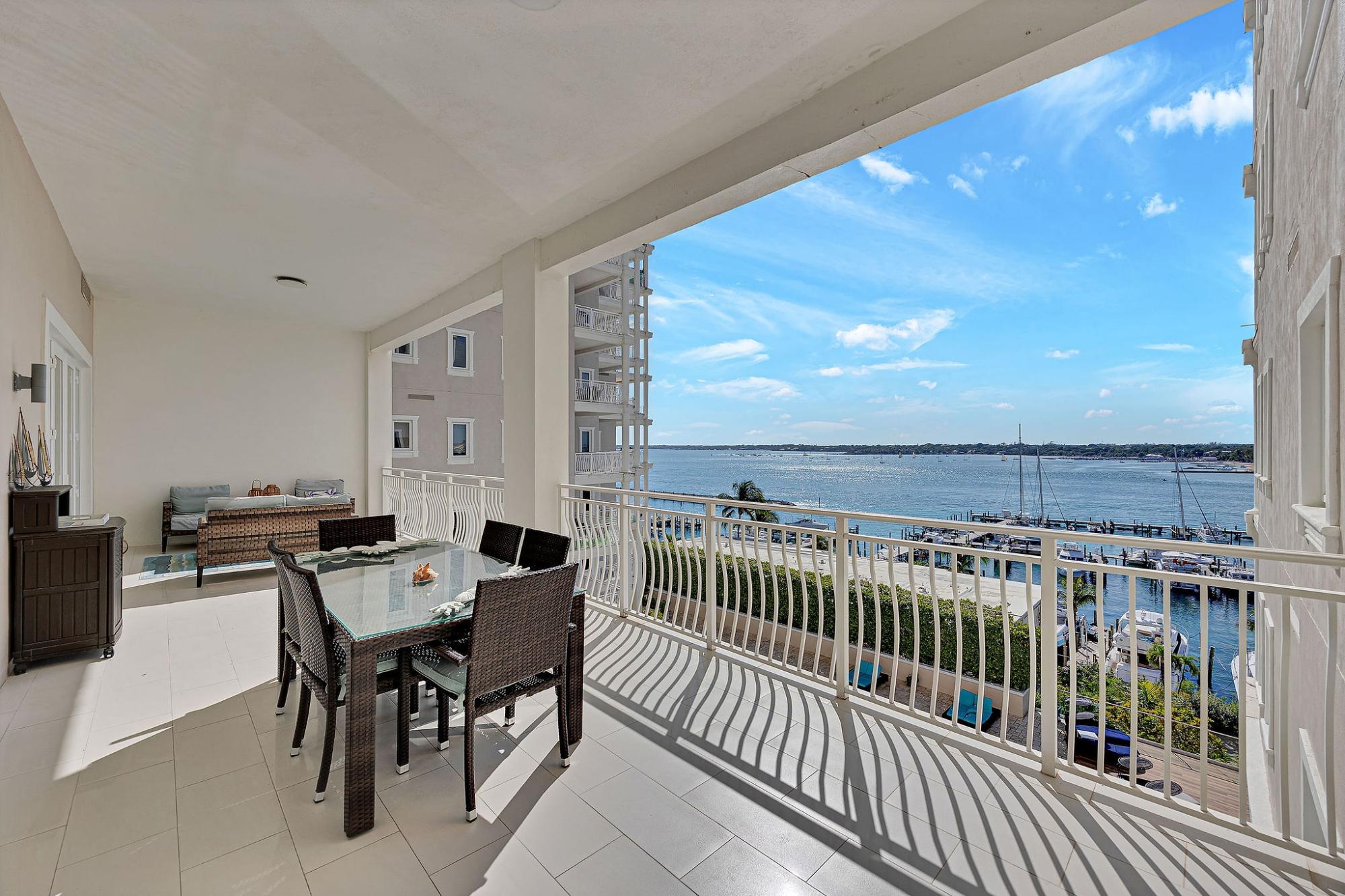 Situated on the 4th floor, this stunning residence in paradise welcomes you with views of the harbour as you step inside. This spacious, single-level luxury condominium features an open floor plan with modern and high-end finishes. Large windows fill the space with natural light, offering breathtaking sea views, complemented by polished marble tiles throughout. It includes fully integrated, top-of-the-line appliances and quartz countertops that reflect the sophistication of upscale European designs. The master suite is a retreat, providing beautiful views, ample closet space, and a large master bathroom. The second and third bedrooms each have en-suites and walk-in closets. The unit also has private elevator access and a standby generator for convenience and comfort. Unique amenities of this property include a gated security entrance, underground parking with assigned storage, porte-cochere, concierge and a gym.