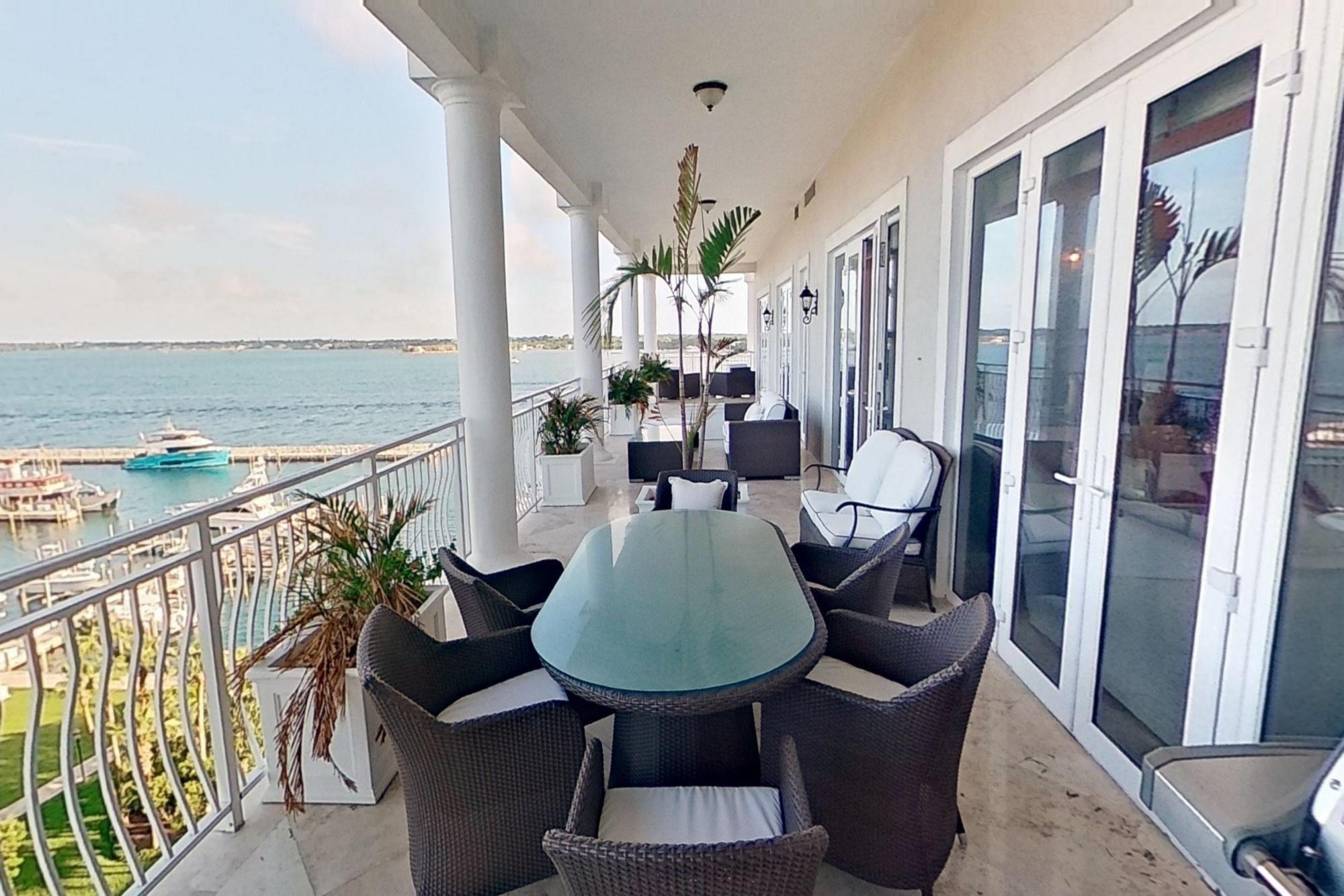 Enjoy stunning panoramic views from this 3 bedroom, 3.5 bathroom condo in one of the Caribbean's most enviable locations. Perched at an elevation of over 80 feet high, this condo is adorned with oversized windows providing sweeping vistas of Montagu Bay, the Atlantic Ocean and the beautifully manicured Ocean Club Golf Course. The spacious, open floor plan is tiled throughout with 24" x 24" travertine and features 12" baseboards, 10" crown mouldings, recessed ceilings and surround sound in every room. One Ocean is ideally situated between Ocean Club Estates and the Four Seasons Ocean Club Resort. It is within walking distance of gourmet dining, designer shopping, and the Atlantis Resort and Casino. One Ocean's onsite amenities include a tranquil harbour-view pool and relaxation deck, fitness center, open-air lobby, concierge desk and secure underground parking and storage.