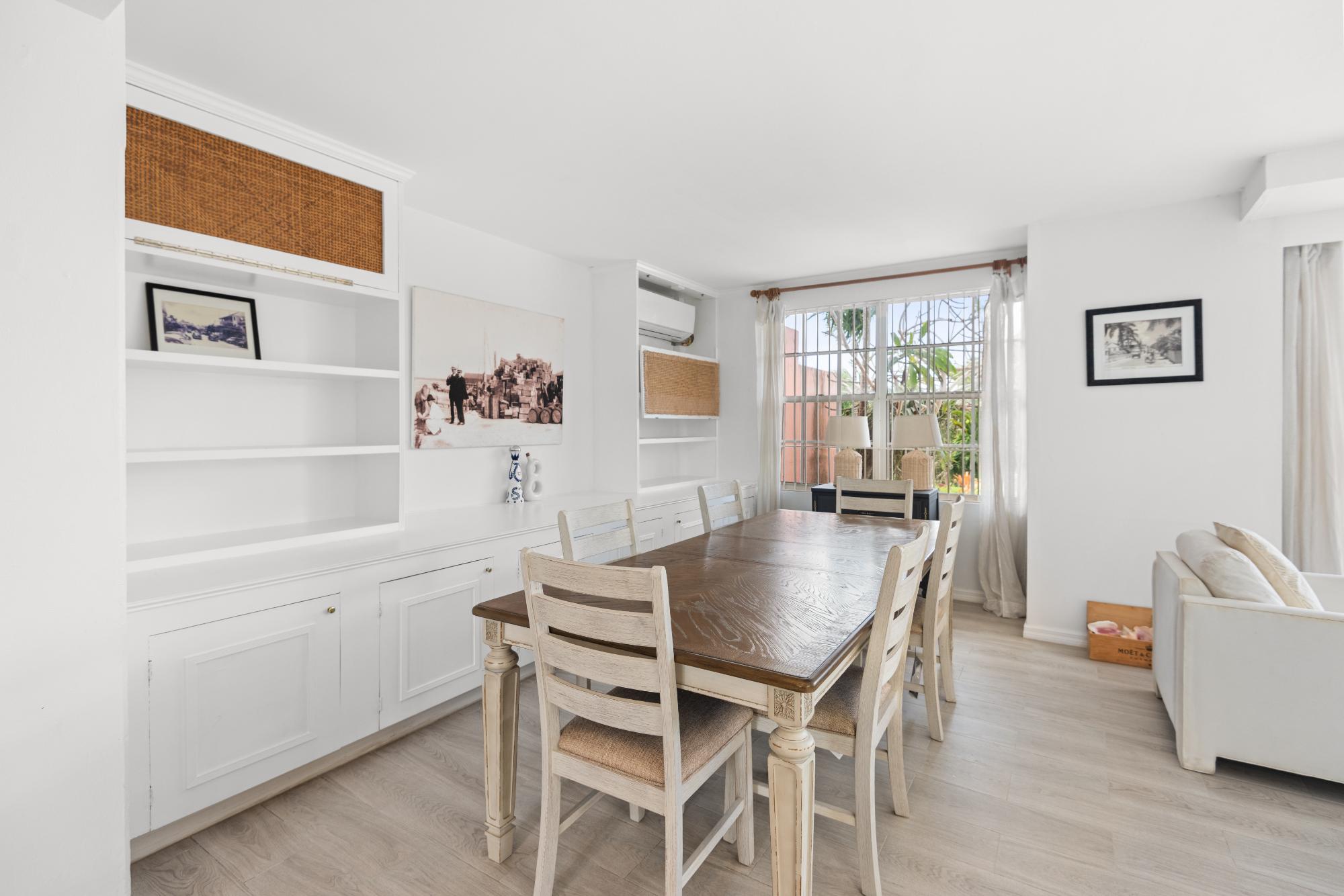 Fully furnished 2-bed, 2-bath condo in a gated community in Western New Providence. This bright, move-in–ready unit features an open-concept living and dining area, updated kitchen with stainless steel appliances, in-unit laundry, and large sliding doors that open to a private patio with lush garden views. Community amenities include a beautifully landscaped pool and a standby generator for added convenience and peace of mind. Water included. Ideally located near beaches, shopping, dining, and major amenities.