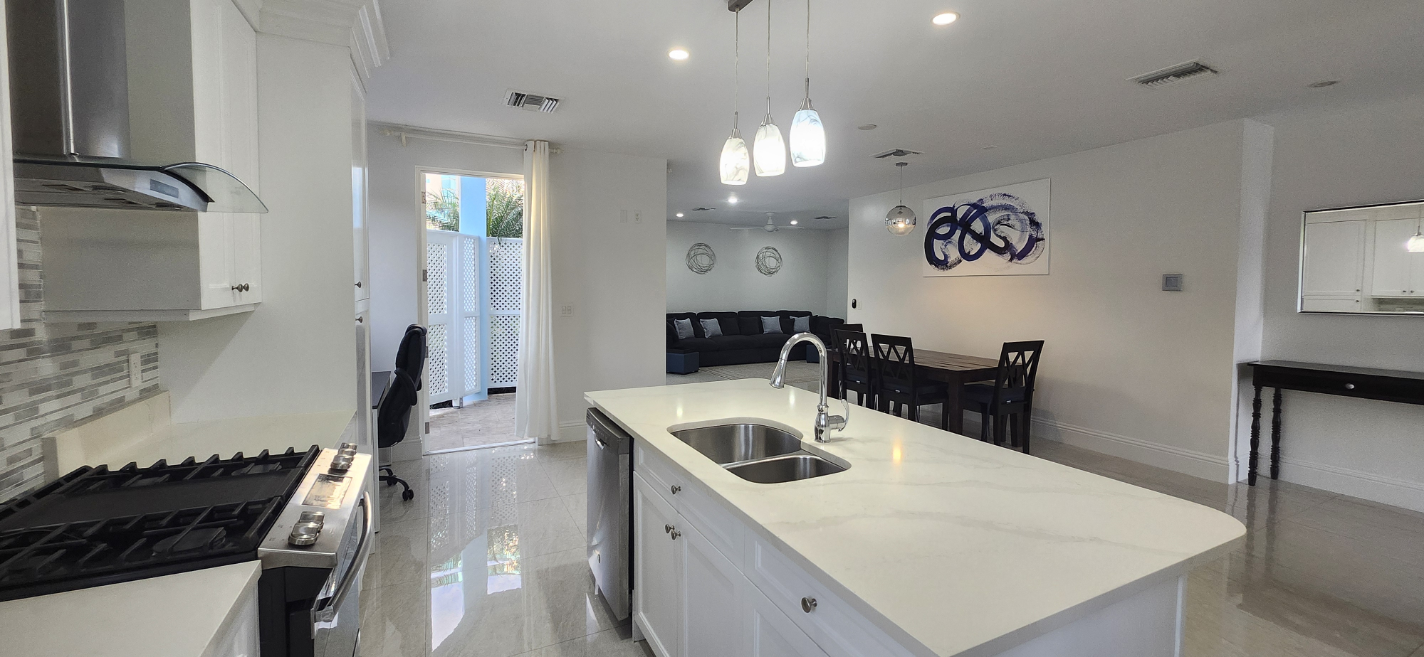 Modern, turnkey, very spacious and beautifully appointed townhouse featuring 2 ensuite bedrooms with walk-in-closets, 2.5-baths, open floor plan, top-tier finishes and appliances, including dishwasher, washing machine, and dryer, a bonus open room, covered patio and generous storage space. This property boasts high ceilings, 8-foot doors, and a backup generator. French doors in the living room and kitchen allow natural light to come in. Wes Bay St. Saffron Hill gated community with 24/7 manned security, pool, tennis and basketball court, gym, playground, and a 5-minute walk to the beach. $4,200.00 per month.