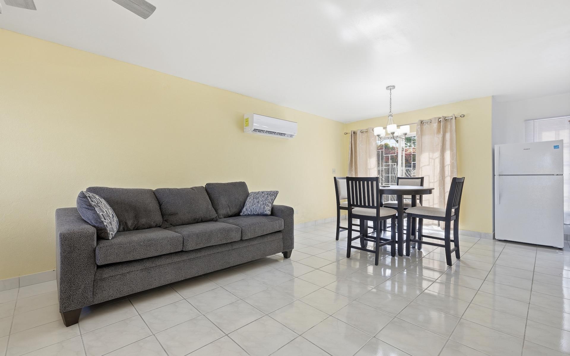 Introducing Unit 1, Ferguson Road, a newly renovated 2-bedroom, 2.5-bathroom fully furnished townhome, located just a walk across the street from Saunders beach and designed for comfort and convenience. The monthly rent for this unit is $2,600, which includes water and cooking gas. This spacious unit features a well-equipped kitchen with essential appliances, an in-unit washer and dryer, and a functional layout ideal for everyday living. The primary bedroom includes an ensuite bathroom, while the second bedroom has easy access to its own full bath.