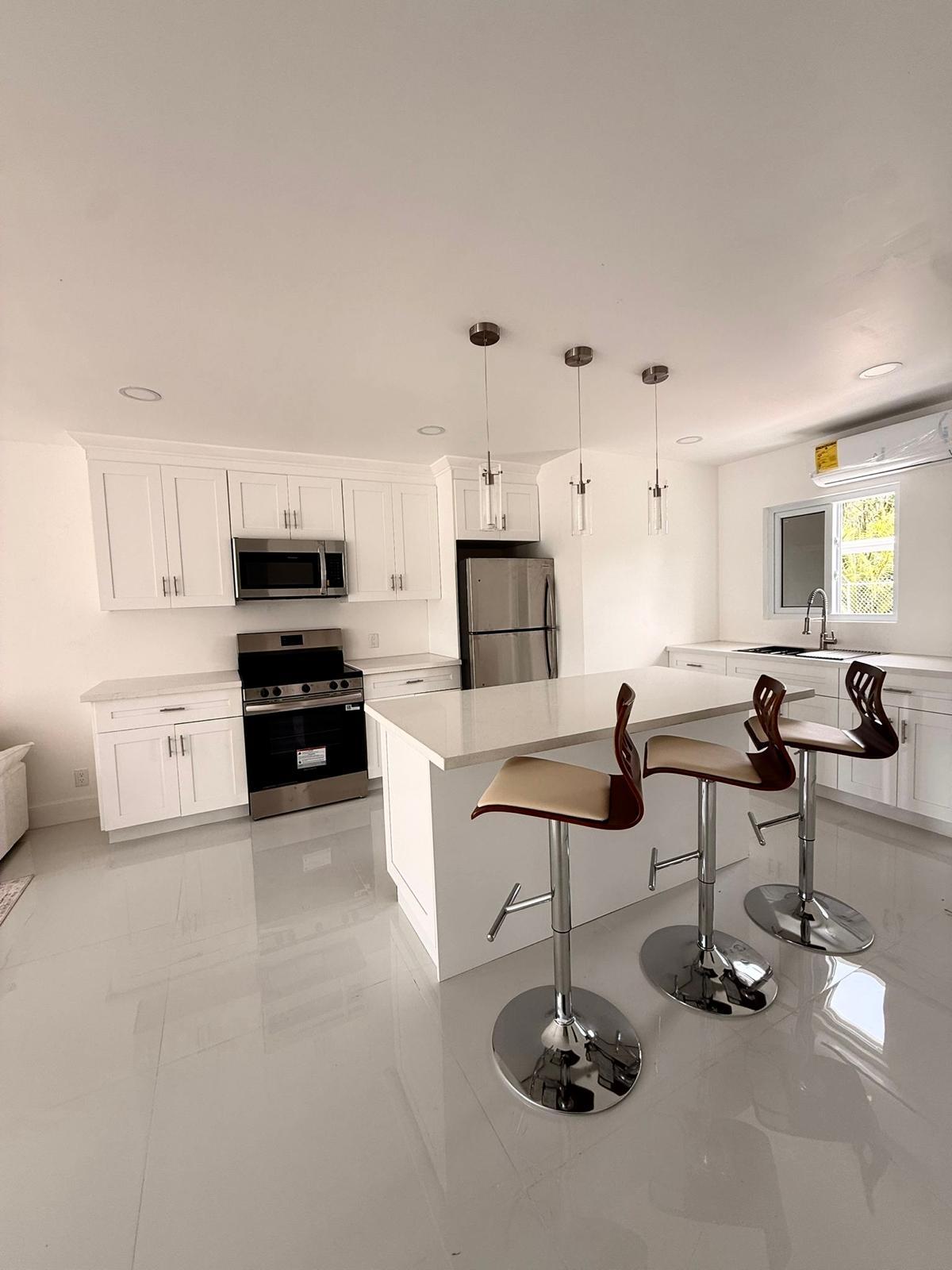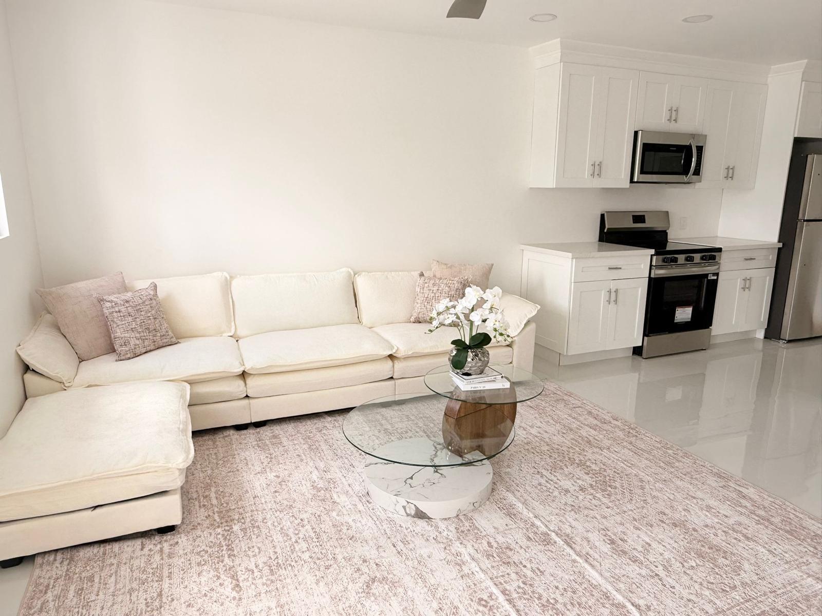 Step into this newly built, modern 2-bedroom, 1-bathroom apartment designed for comfort and convenience. Fully furnished with contemporary finishes, this space features an open layout complemented by a stylish breakfast bar. The apartment is equipped with sleek stainless steel appliances, ample cabinet space, recessed lighting and convenient washer and dryer, ductless A/C units, LED mirrors, and hurricane-impact windows which provide added safety and peace of mind. Ideally located near shopping, dining, and everyday conveniences, this apartment offers the perfect blend of style, functionality, and accessibility. Water is included.