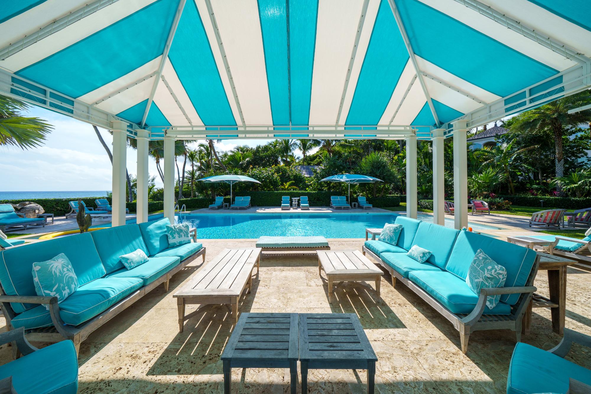 Outdoor living is a defining element of Rosalita. A stunning mosaic-tiled swimming pool anchors the estate, surrounded by sun decks, shaded lounges, and a pavilion ideal for relaxed gatherings. From here, private steps lead directly down to the soft pink sands and calm waters of one of the Caribbean’s most celebrated beaches.