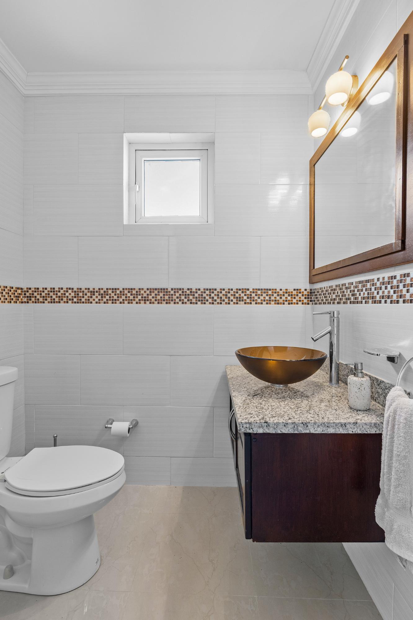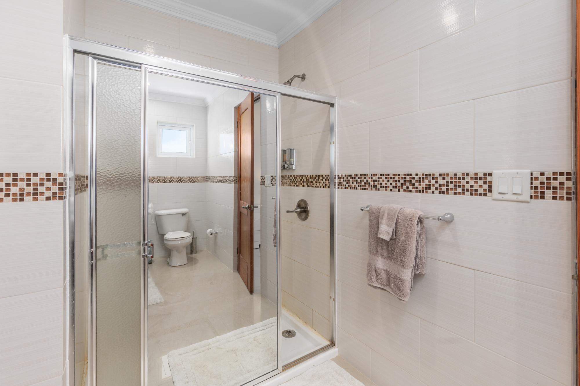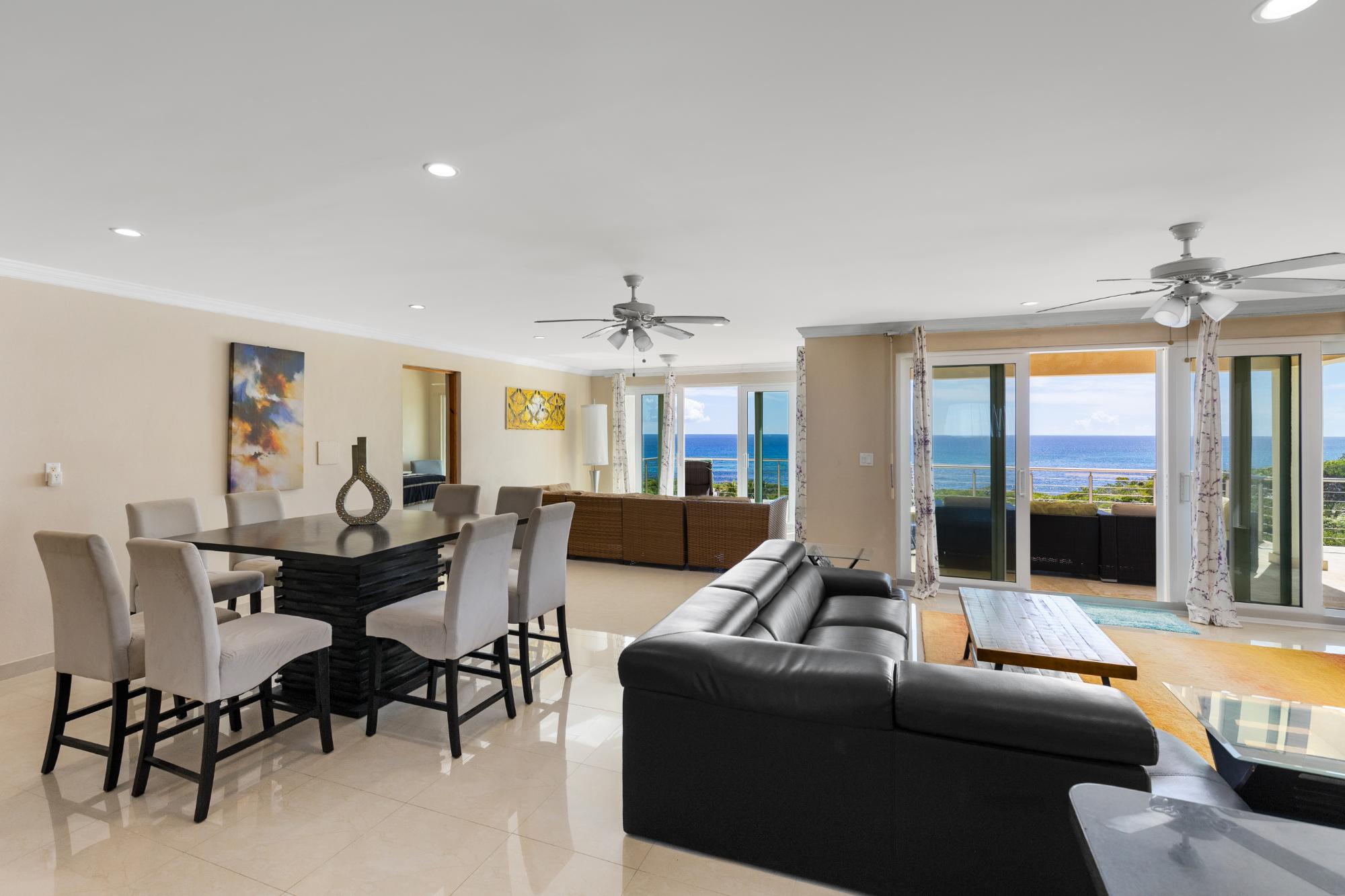 The 6,000 sq. ft. residence sits on a 24,200 sq. ft. property and features hurricane impact windows throughout. The expansive ground floor includes two ensuite bedrooms (one with an outdoor shower overlooking the Atlantic), a third smaller bedroom with a washroom, a wide corridor, storage room, and cloak closet.