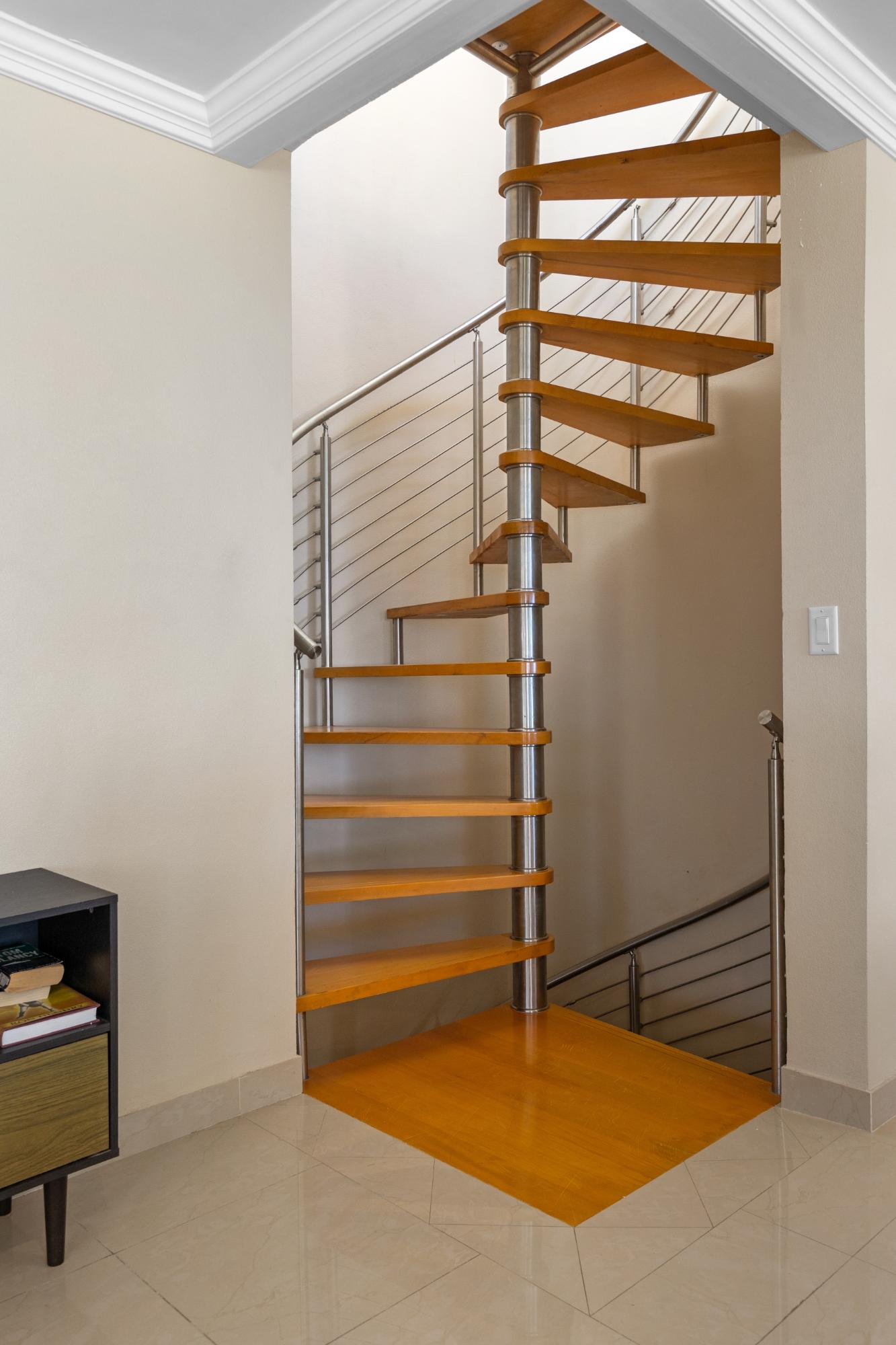 The spiral staircase continues upward to a small office, a large roof terrace, and a spectacular lookout turret, often leaving guests in awe.