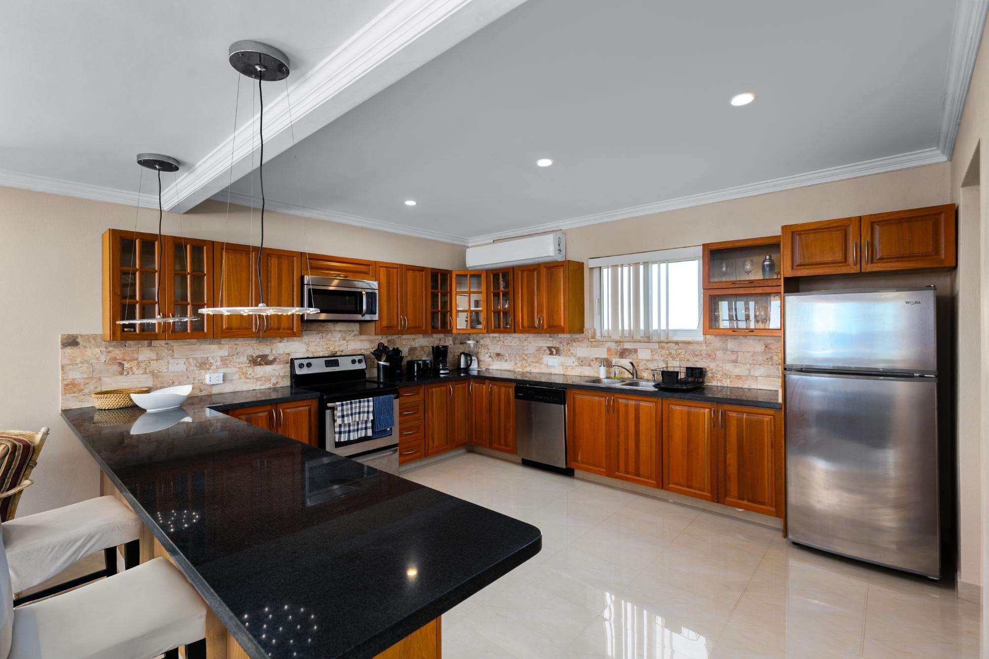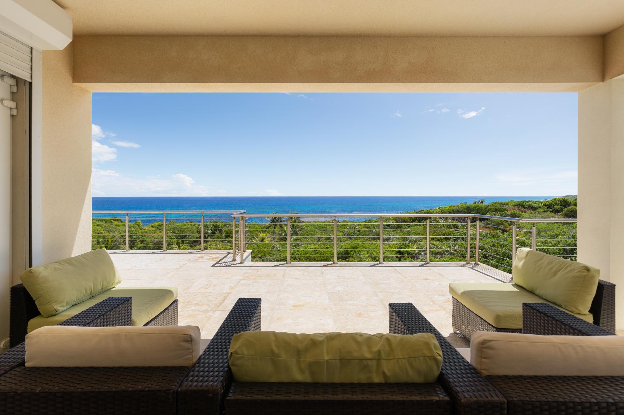 Additional features include a concrete platform designed for solar panels, a 20,000-gallon water storage tank, and an external storage room. The expansive top-floor patio is perfect for entertaining, with unobstructed views of the island and ocean.