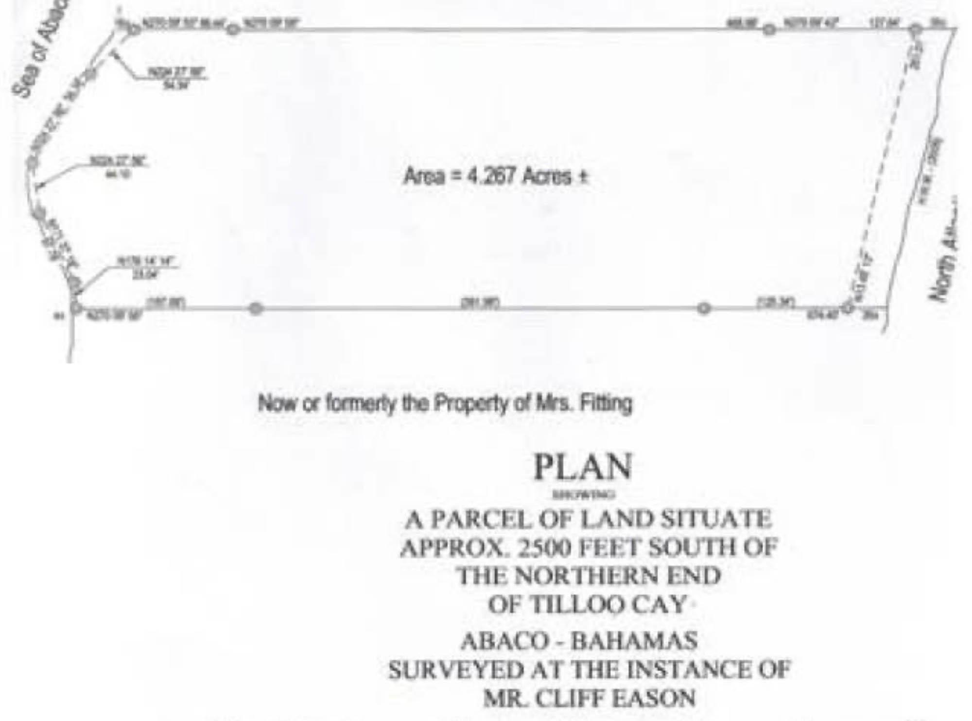 This stunning 4.267-acre (185,870 sq. ft.) Sea to Sea property boasts 243 feet of Sea on Abaco and 251 feet on Atlantic Ocean waterfrontage and a depth of 752 feet. Located on Tilloo Cay just 1/4 mile south of Cuby Jack's Cay and 1/2 mile to Tahiti Beach or 15 minutes by boat to Hope Town Harbour. This property can be subdivided, and a survey plan of the entire property is available. Any additional survey work is at the expense of the purchaser.