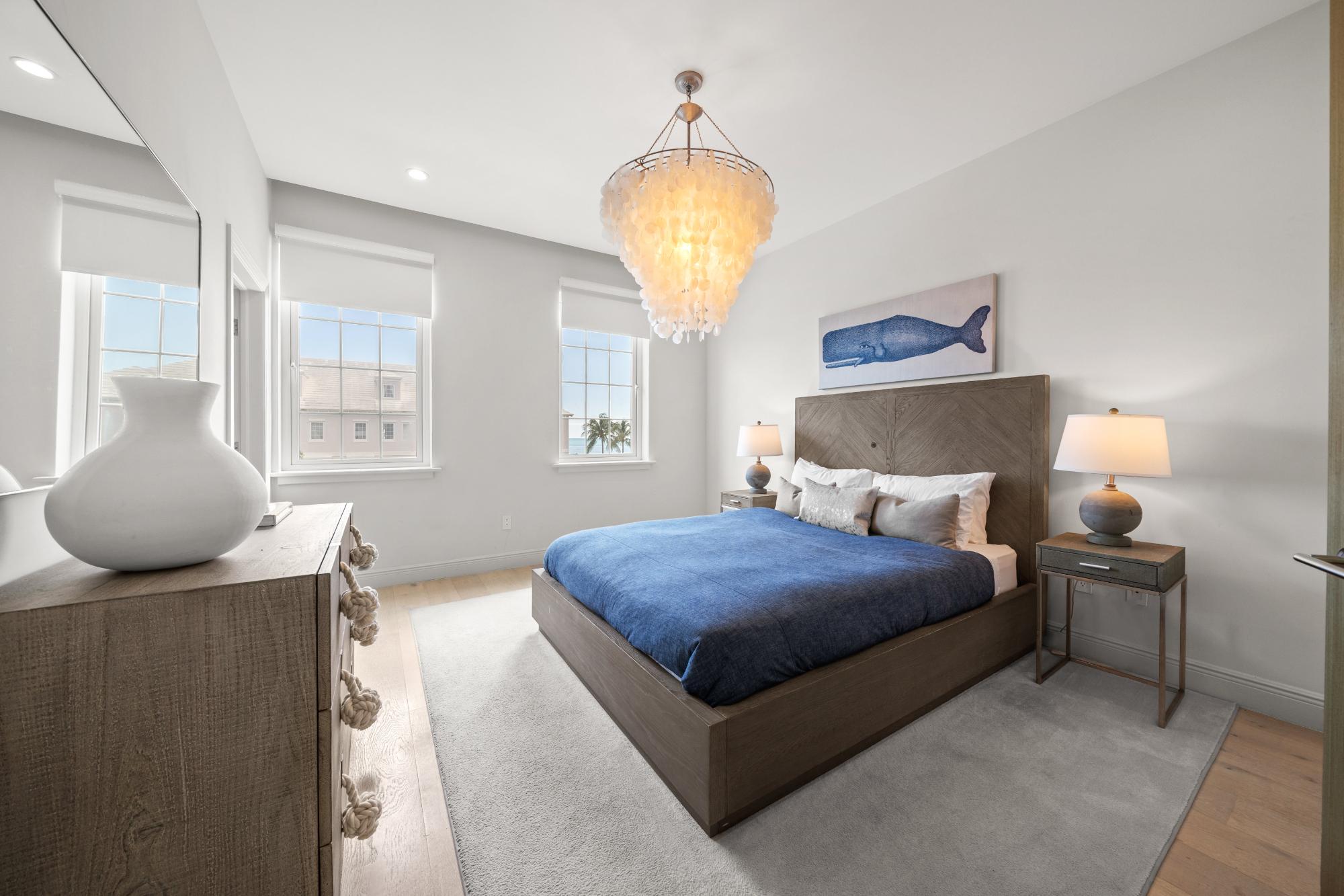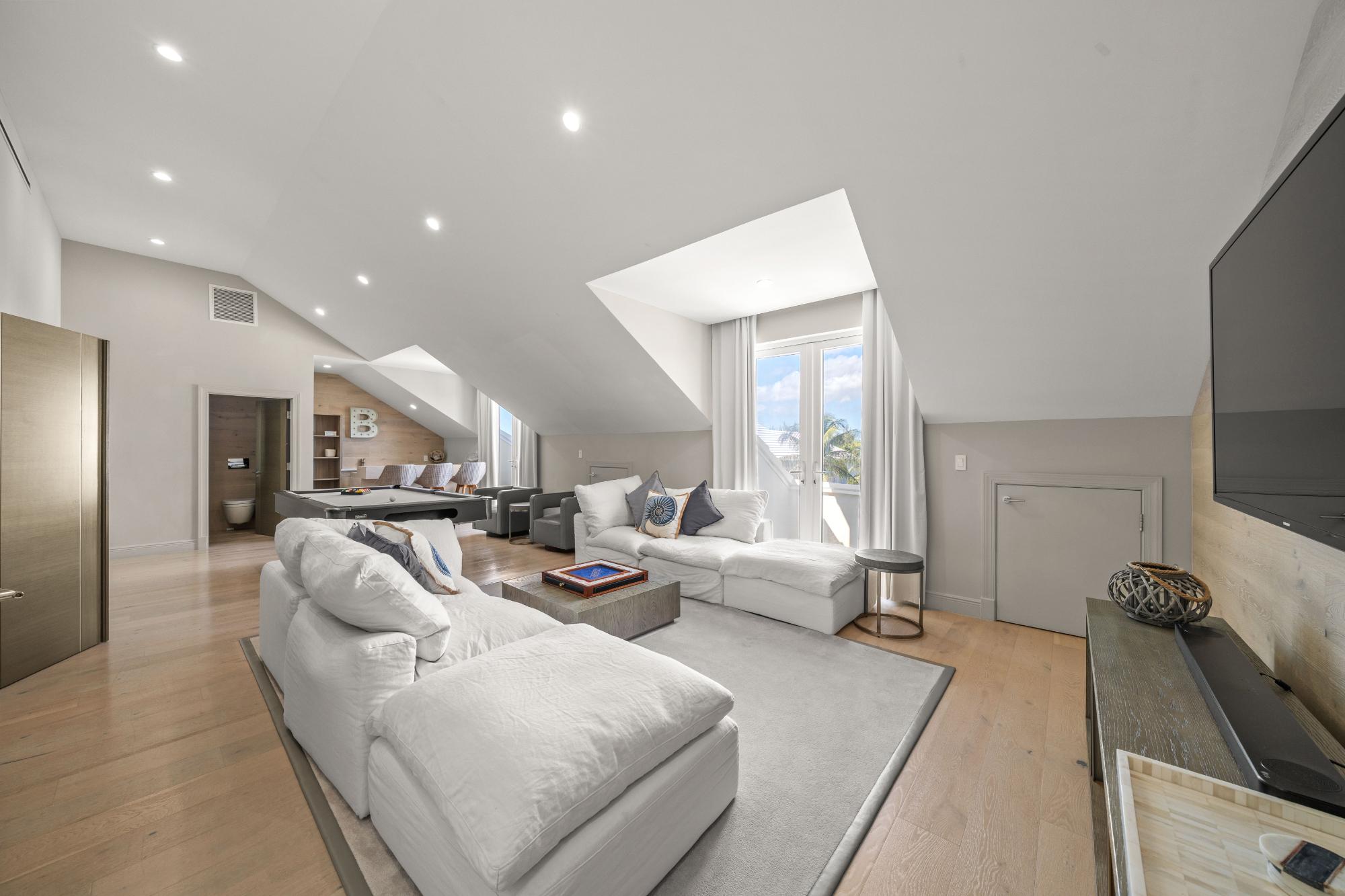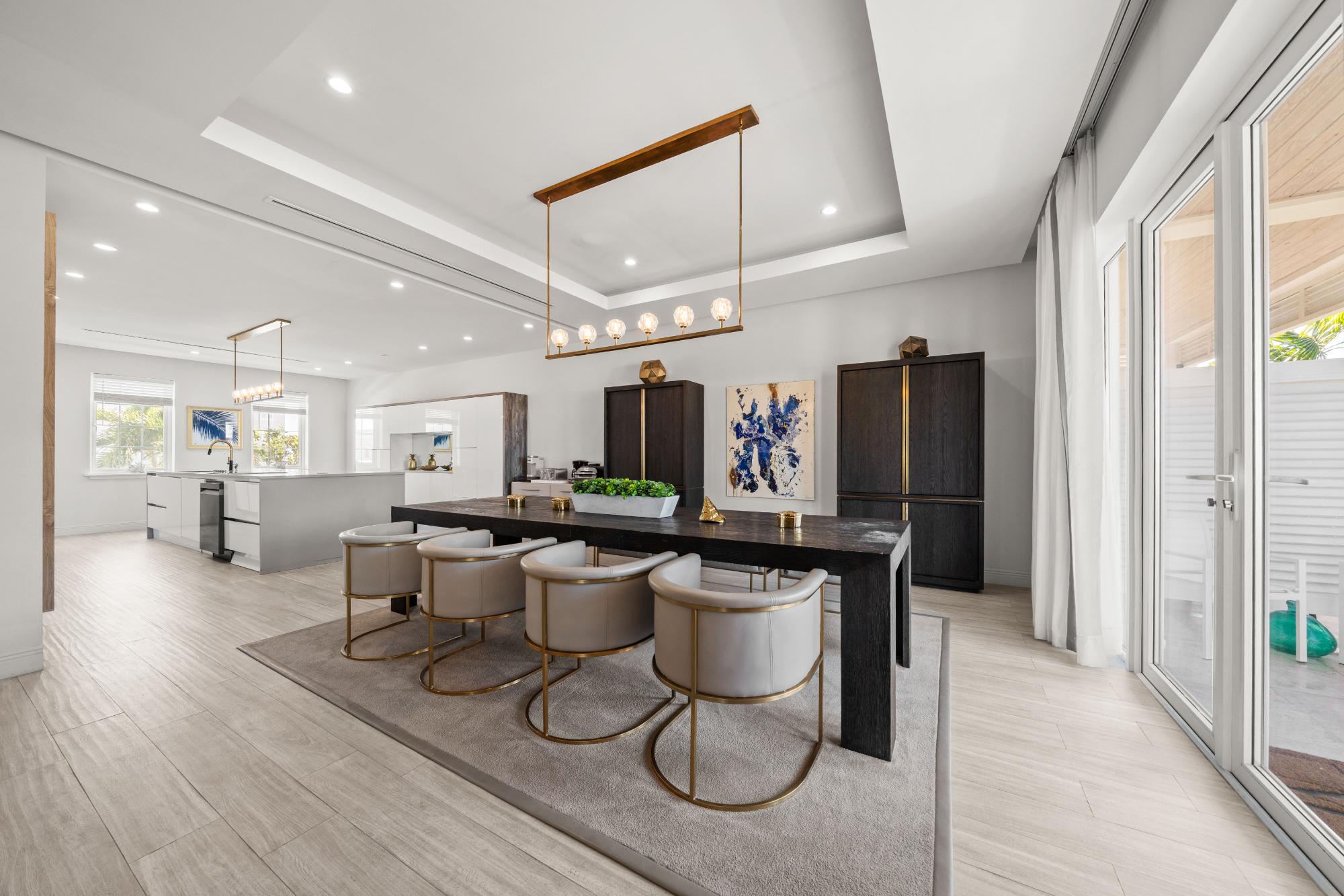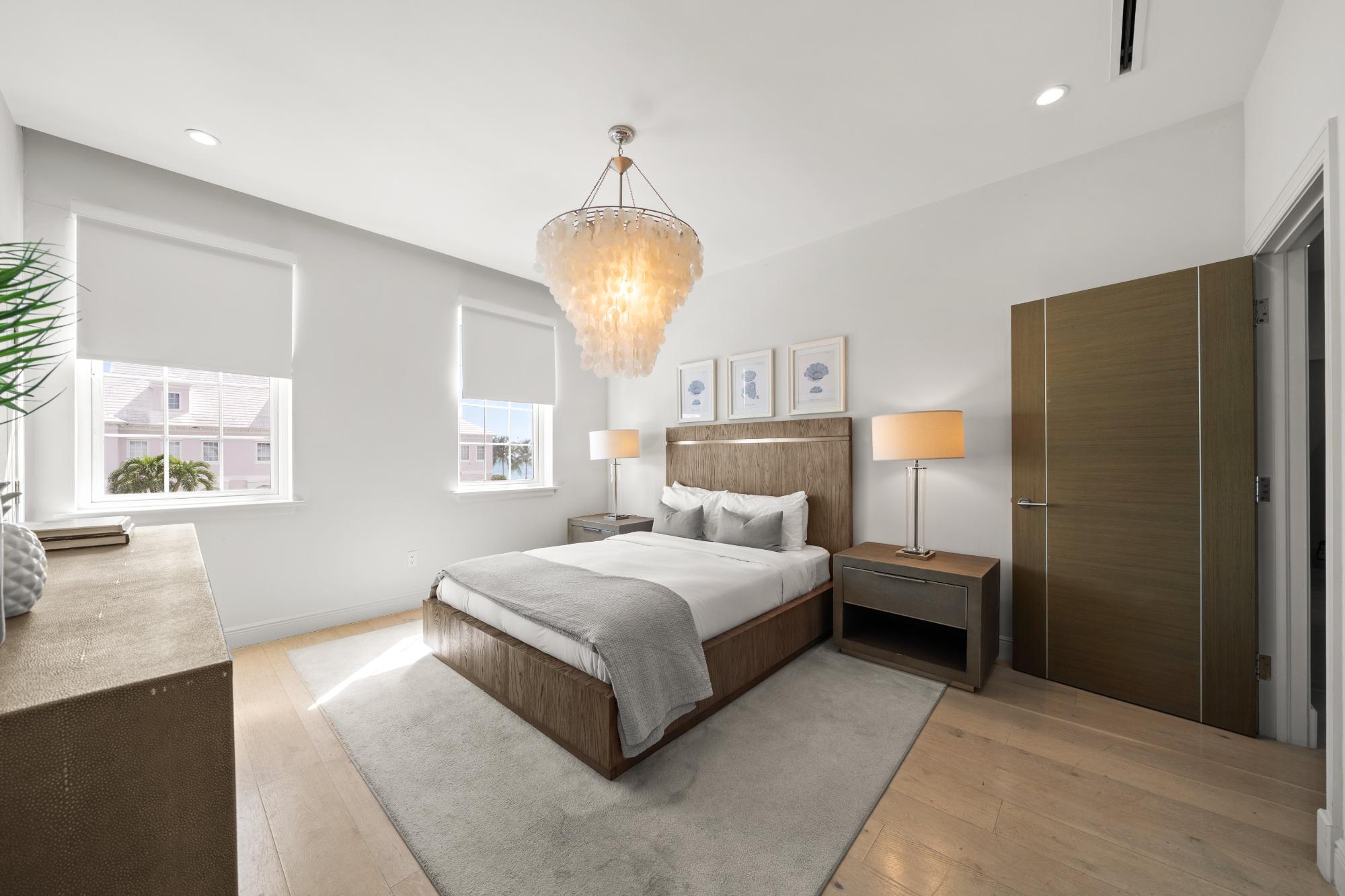 Discover refined island living in this exceptional double-unit townhome located within the exclusive gated community of Palm Cay, Nassau. Offering five bedrooms, four full bathrooms, and two powder rooms, this beautifully appointed residence is sold turnkey and fully furnished for effortless ownership. The open-concept living, dining, and kitchen area features porcelain tile flooring, recessed lighting, and high-end finishes throughout. A chef’s kitchen with solid wood cabinetry, a large island with seating for four, built-in coffee maker, double ovens, microwave, and wine storage flows seamlessly into the spacious living area and out to an inviting covered patio. Upstairs, the luxurious primary suite includes a large soaking tub, separate shower, double sinks, and dual rain showerheads, while the third-floor lounge with a bar, balconies, powder room, and pool table provides an ideal entertainment space. Outdoor living is maximised with a double garden, oversized patio, and garden deck for relaxing or entertaining. Just steps from one of New Providence’s most beautiful beaches.
