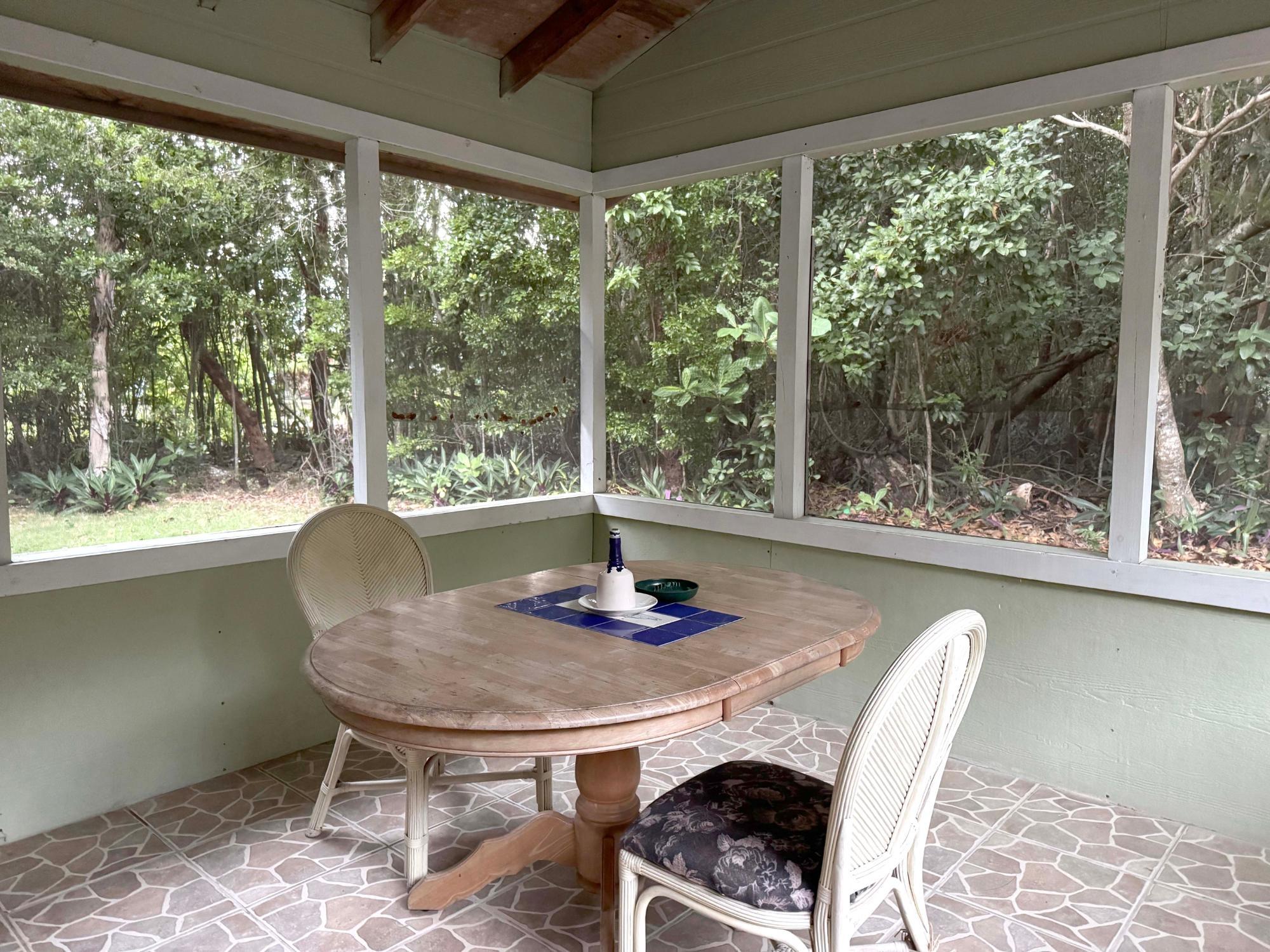 Fully furnished 3-bedroom, 2-bath villa located a short walk from the beach. This Andros retreat offers privacy, mature landscaping, and a screened-in patio that functions as an additional living and entertaining space. Currently a successful short-term rental, the property is completely move-in or rental-ready. Features include tiled flooring throughout, split A/C units, city water, and a generously sized tree-lined lot that creates a quiet, retreat-like setting. An ideal option for vacationers, families, or long-term guests with strong income potential for investors.