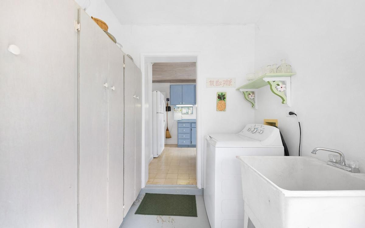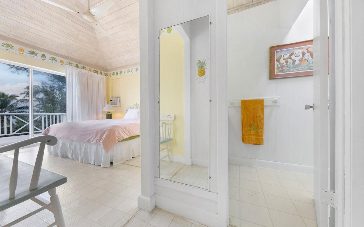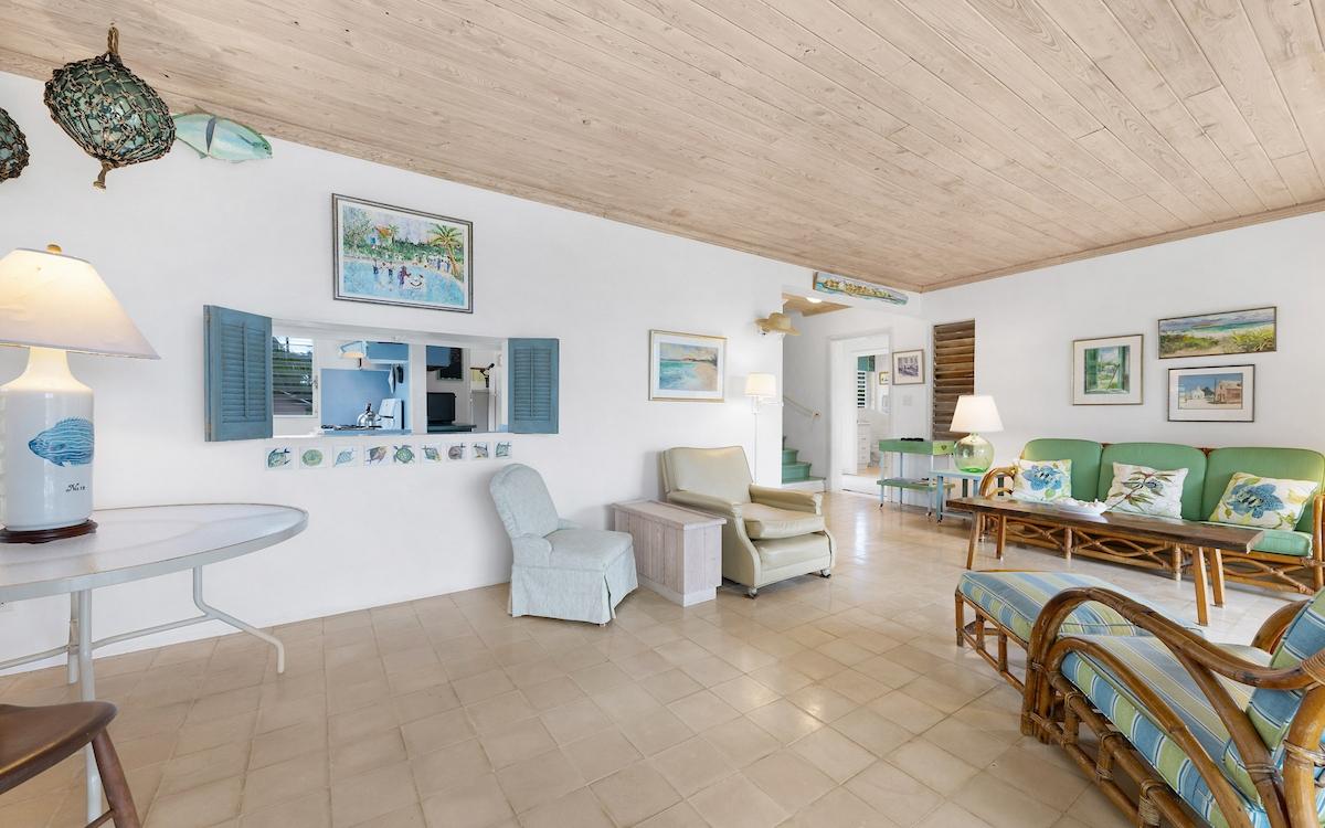 Set along 150 feet of pristine pink sand frontage on the breathtaking shores of Double Bay Beach, In The Pink is a rare offering in one of Eleuthera’s most coveted coastal enclaves. Built in 1968 during the early evolution of Double Bay—originally developed in the 1950s—this authentic Bahamian beach house embodies a relaxed yet refined era of island living. Positioned on nearly two acres of lush, natural tropical vegetation and mature coconut palms, the property offers exceptional privacy, peace, and uninterrupted beauty. One of only thirty homes in this intimate seaside community, In The Pink enjoys sweeping views of the Atlantic’s brilliant blues and neighboring Diamond Cay from every room. Bedrooms and living areas open seamlessly onto shaded patios and sun-drenched decks, where the sound of surf and ocean breezes defines daily life. The three-bedroom, three-bath main residence is complemented by a charming studio apartment above the single-car garage—ideal for guests or additional privacy. Fully furnished and thoughtfully equipped, the home includes a well-appointed kitchen