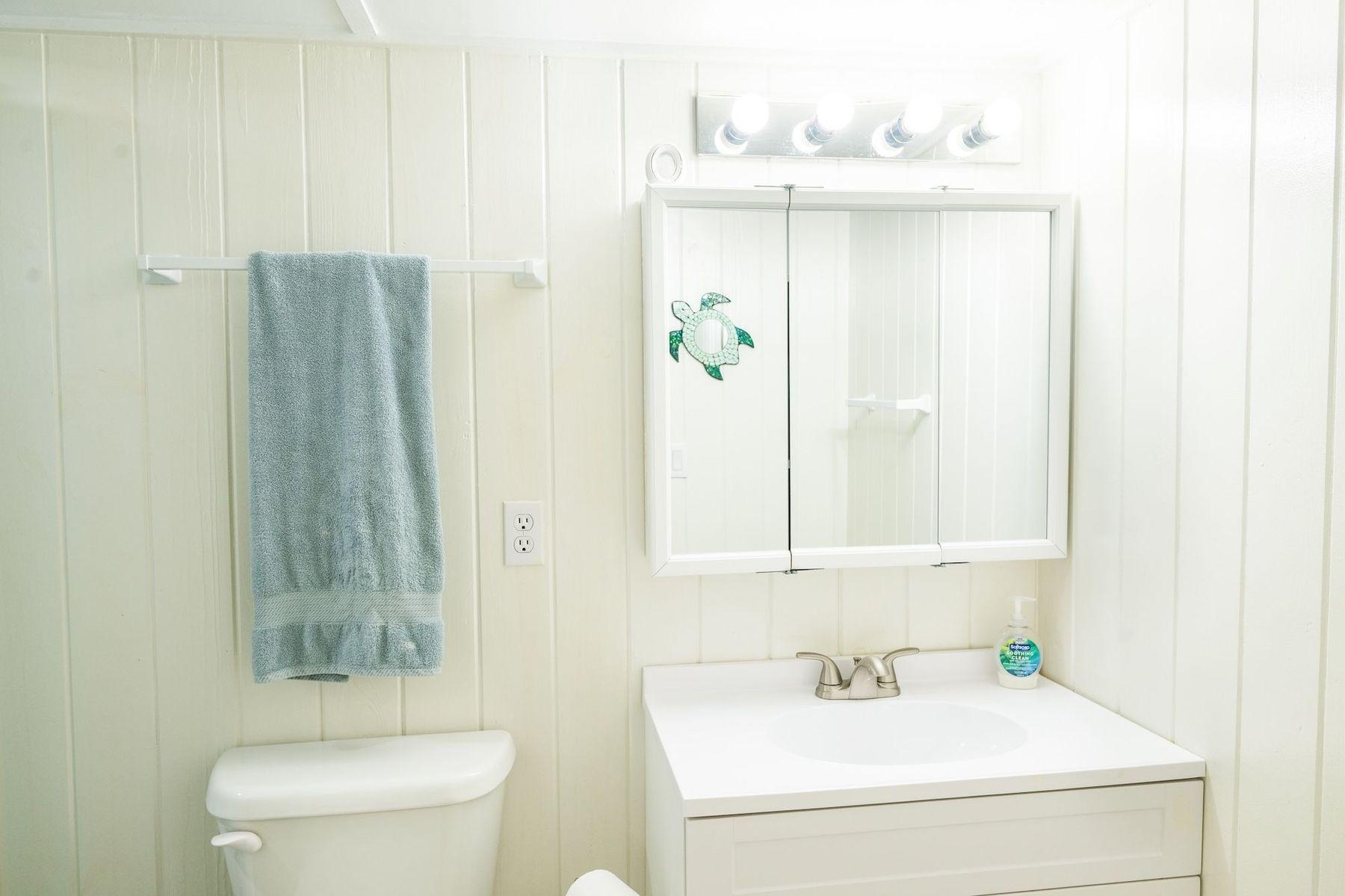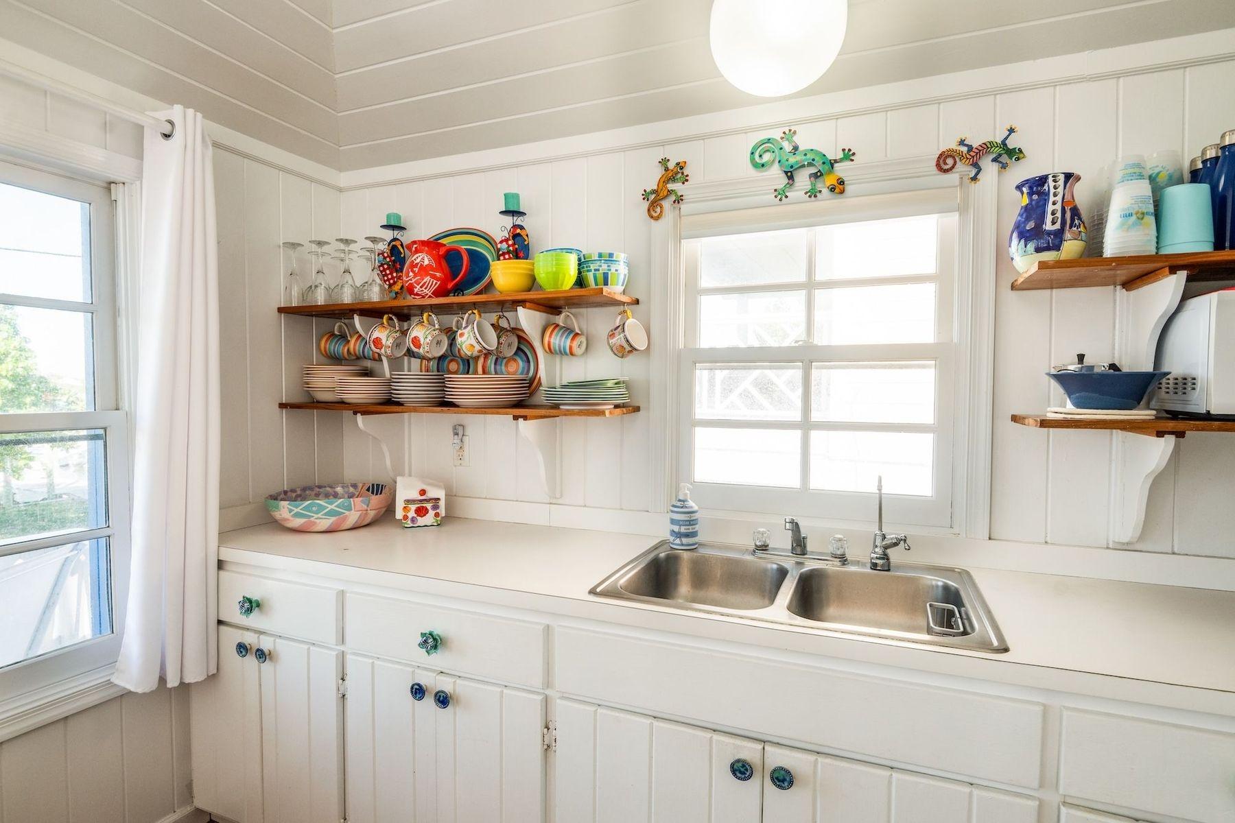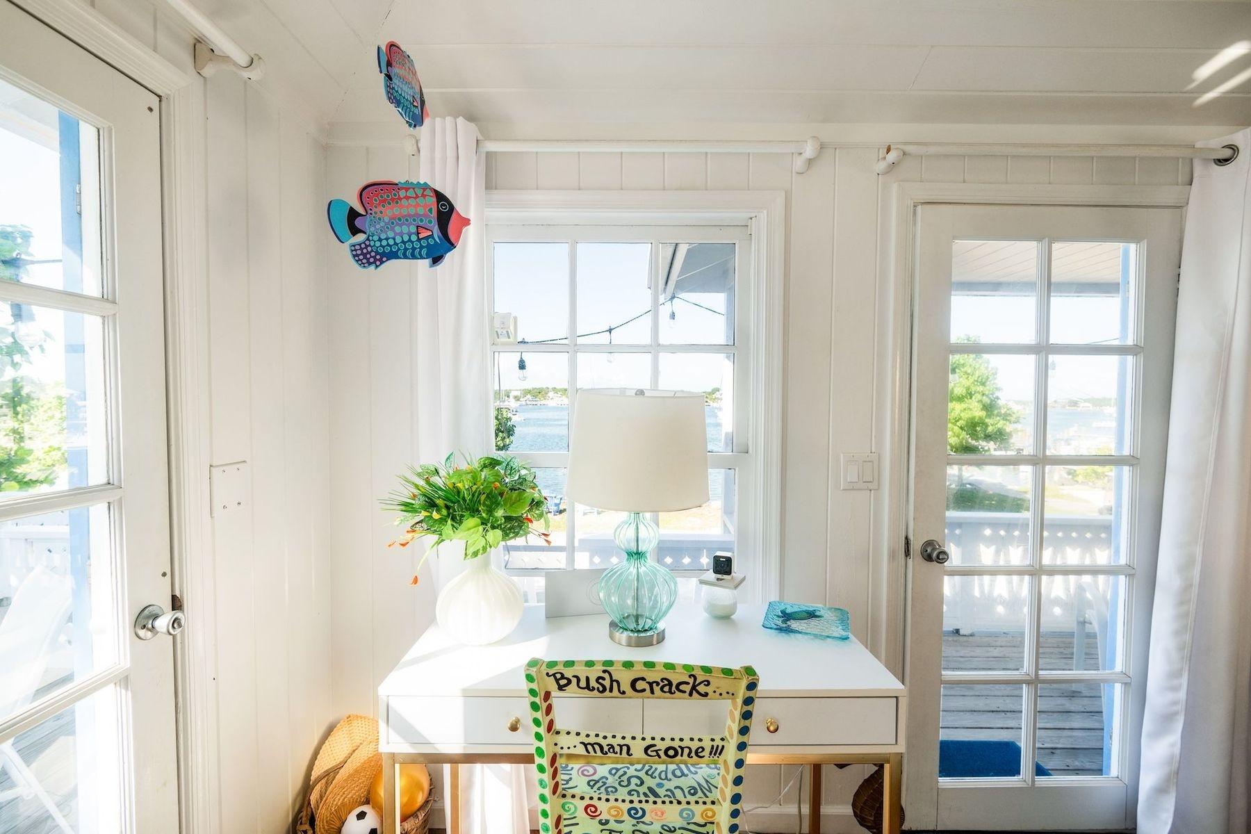 Bright, airy, and colourful home in the heart of Hope Town with postcard-perfect Elbow Reef Lighthouse views. The property has excellent storage and a flexible downstairs space, plus true boater appeal: private dock + parking and the ability to “pull your boat right up.” Layout has a kids’ bunk area, two king bedrooms—one ensuite—plus an extra full bath. Down stairs in the private bunk rooms, with access to basement, storage area for bikes & a basement with even more storage area plus a washer/dryer.