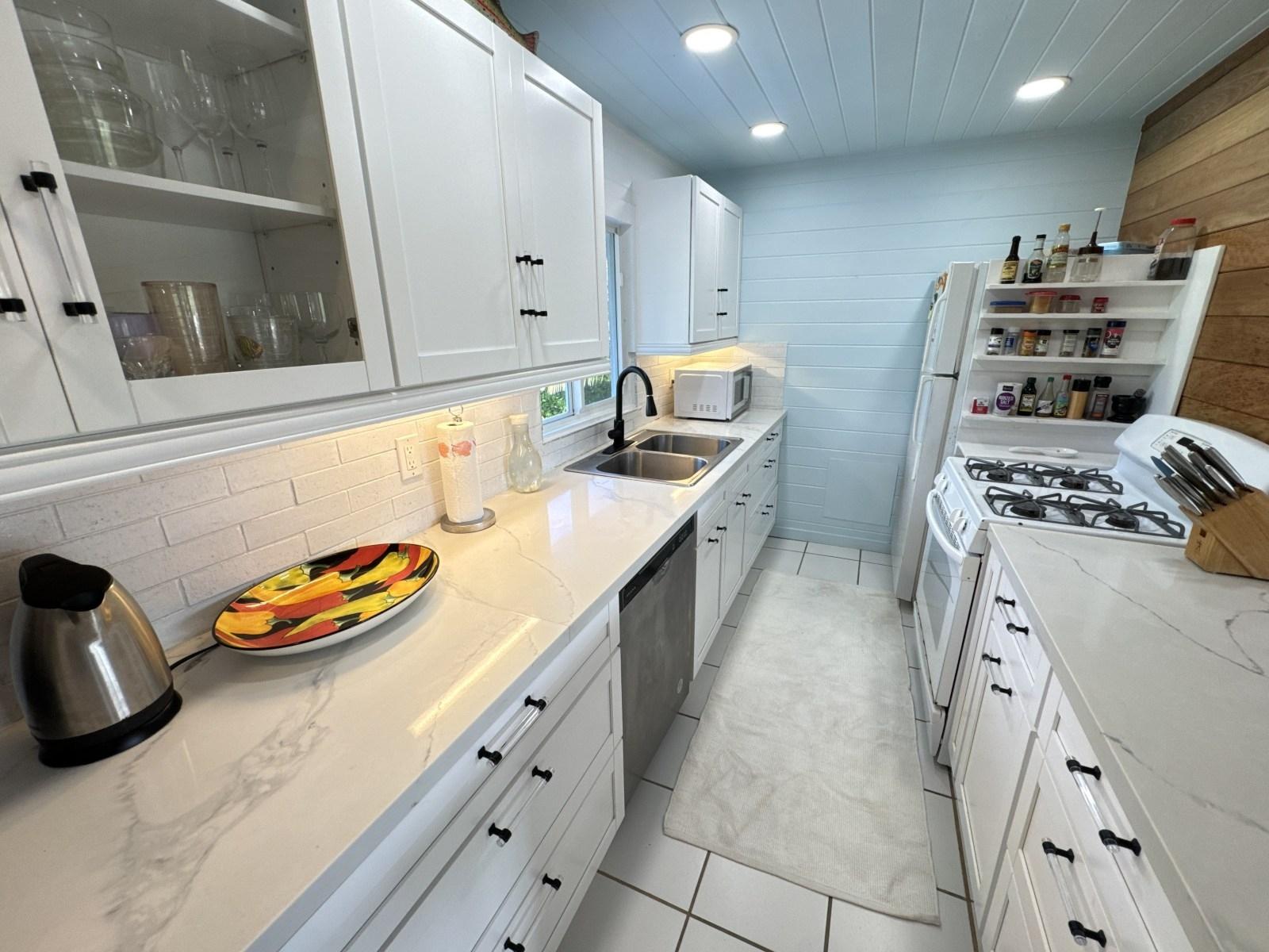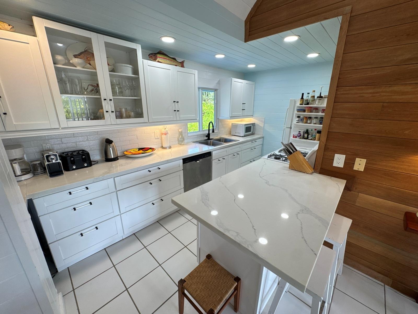 Cloud Nine is a charming cottage located on the quiet north end of Elbow Cay, which is known for its idyllic out-island vibe. The cozy interiors open to a large, covered porch, which takes in the cool Bahama breezes while overlooking a beautiful tropical garden. From the cottage, you are a few minutes' walk from the Atlantic or Sea of Abaco beaches. Community shared dockage is also just a few minutes away. A 10-minute golf cart ride takes you to the historic Settlement of Hope Town, with its candy-striped lighthouse and amenities such as grocery stores, restaurants, and ferry docks. Cloud Nine has 2 bedrooms and 2 full bathrooms and features tile flooring throughout, quartz countertops, a golf cart garage, a solar system, and more. Contact us today for more information or to book a showing.