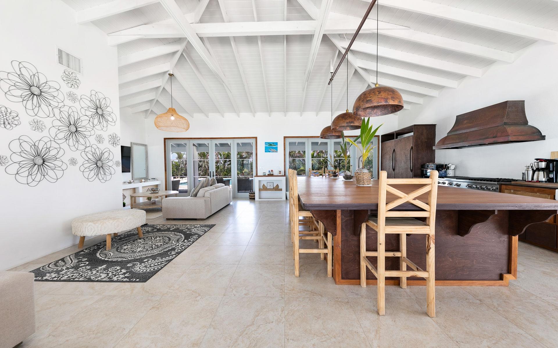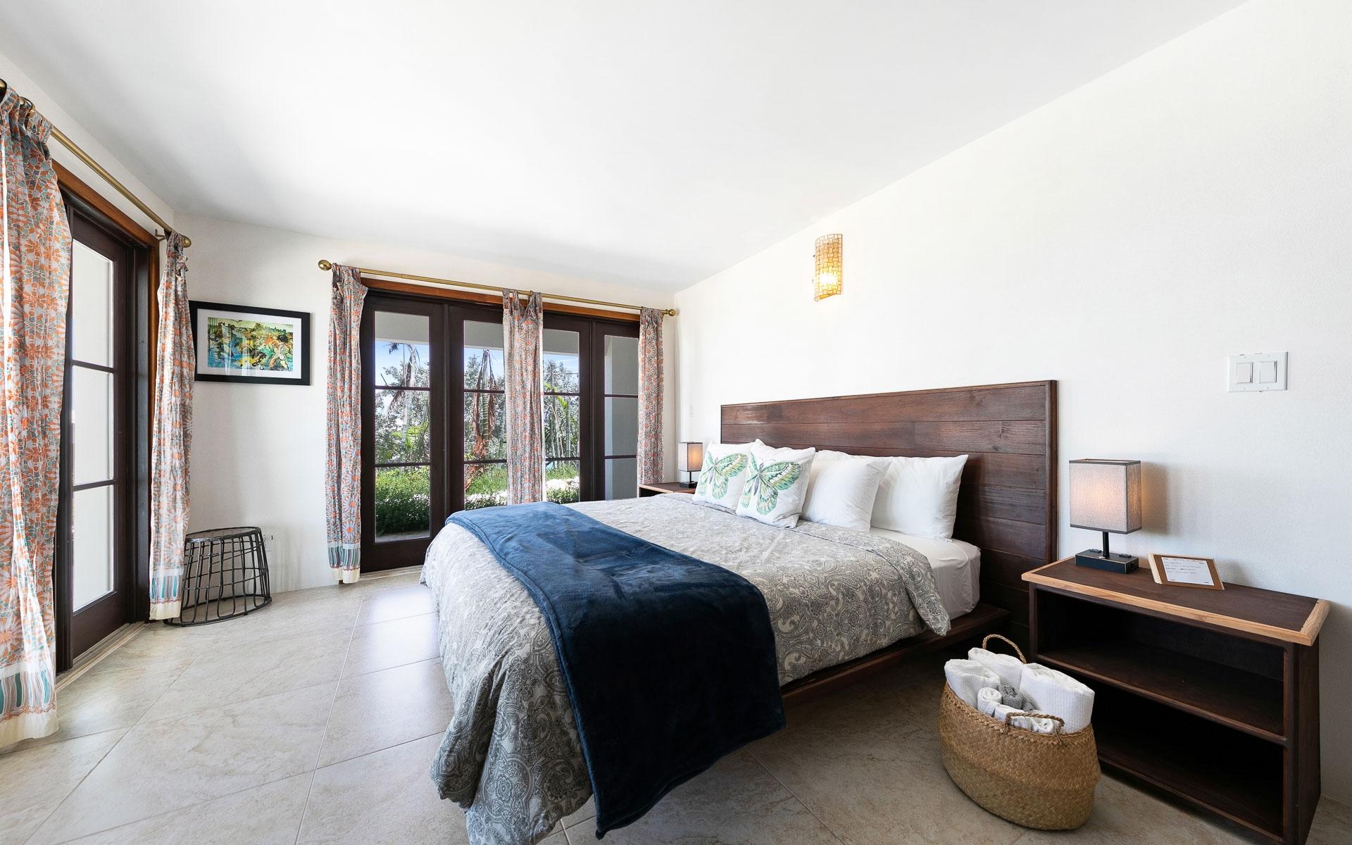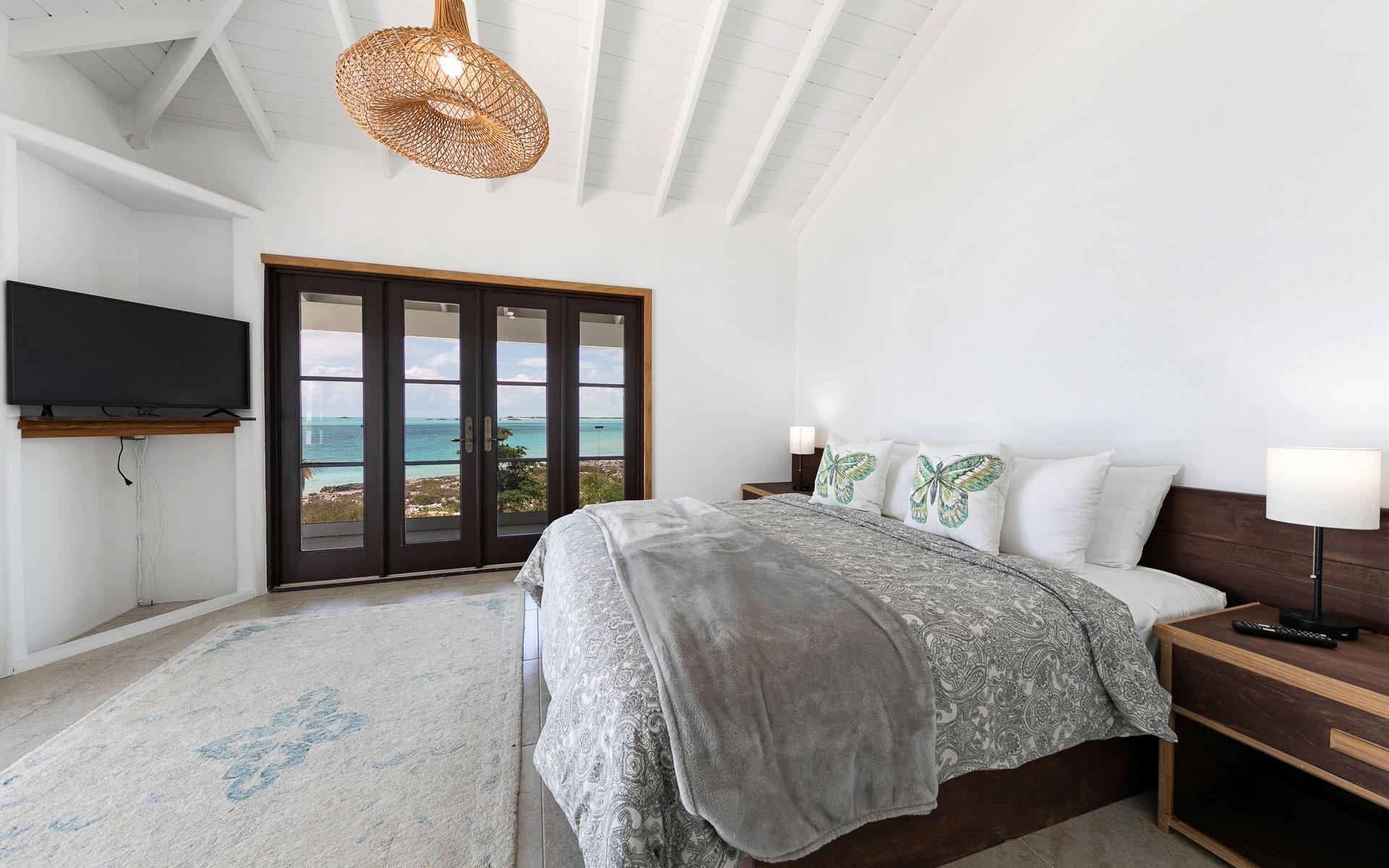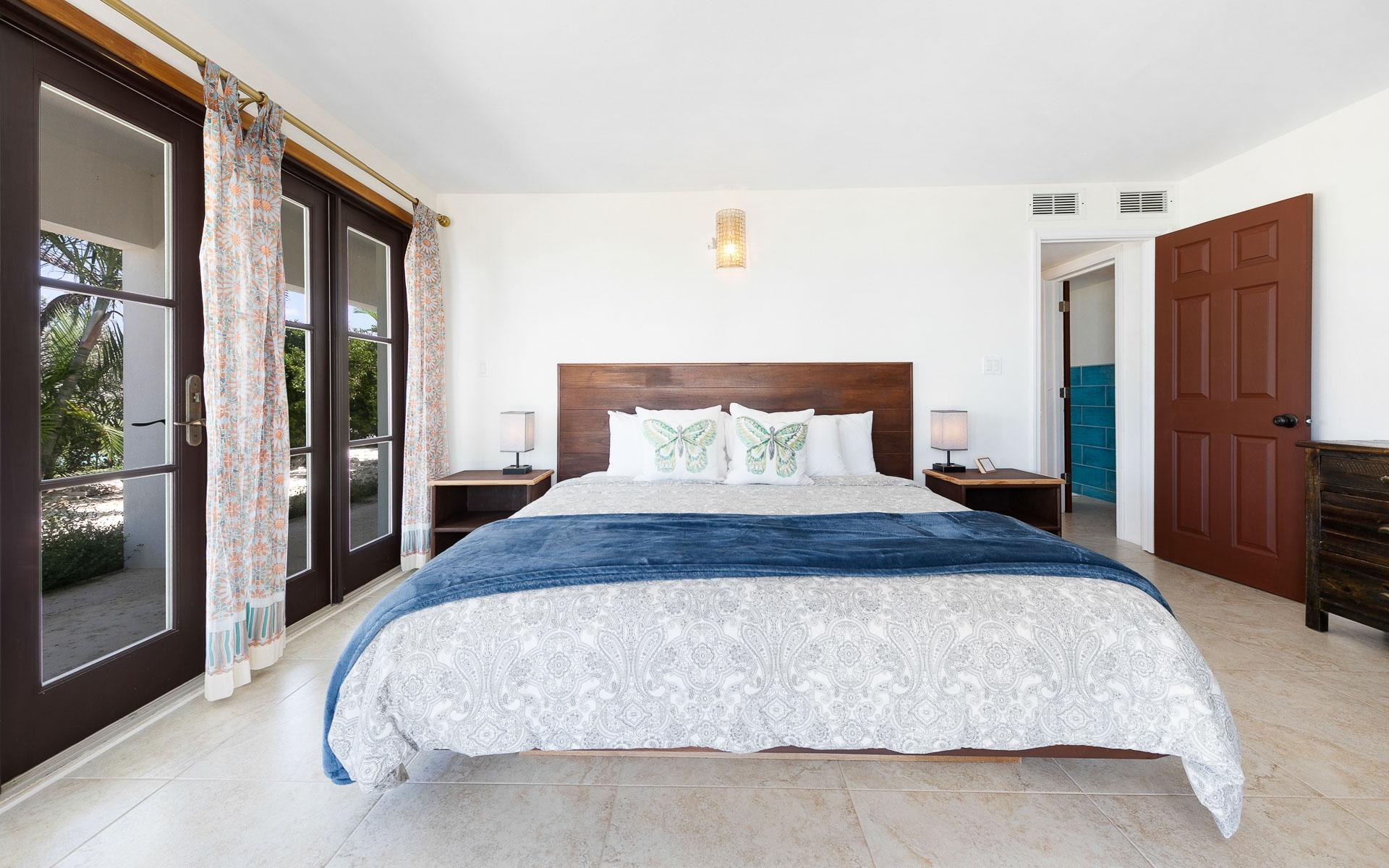 Set on the largest available acreage parcel on Staniel Cay, Narikela is situated on 12.5 acres on the southern peninsula on Staniel Cay. The property is set on 15 individual lots on the Staniel Cay Subdivision, making future development of the property a breeze. The lots reach from the southern tip of Staniel Cay around a beautiful turquoise private harbour with a stunning coconut grove beach and two docks giving the estate a fully "private island" experience with all the benefits of being located on Staniel Cay. While there is immense value in all the readily developable land, the estate's existing spacious dwellings provide a comfortable haven for owners and guests with panoramic views of the nearby cays. The entire upper floor of the main villa features an extensive living area with a king bed, and an ensuite bath featuring both a shower and a tub that overlooks the ocean. The suite also features a private dining table and seating area, a full kitchen with appliances, and a large pantry. The upper floor has a wrap-around deck with glass walls and beautiful 360-degree views.