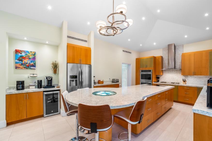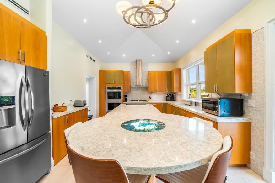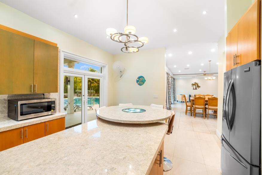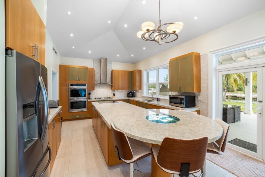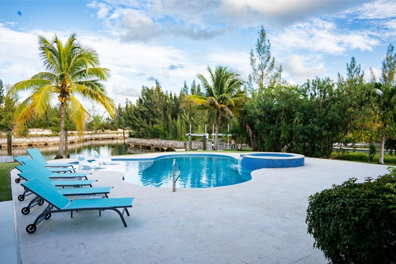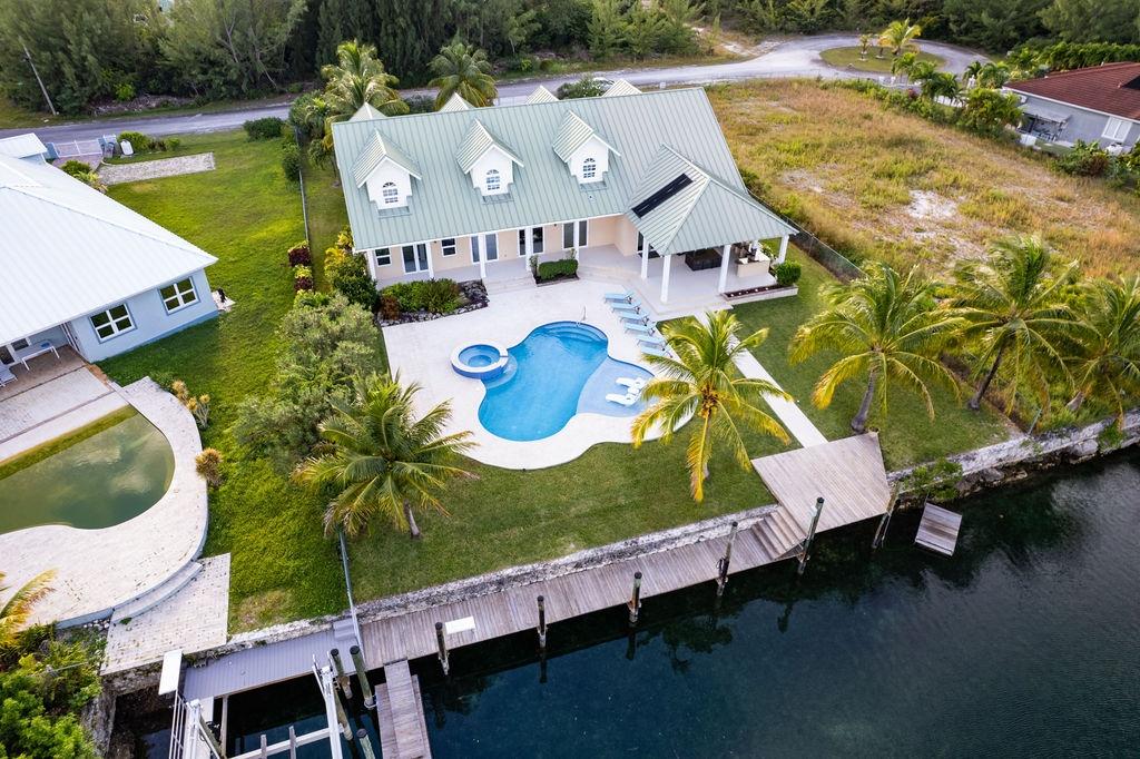 This stunning 4-bedroom, 4.5-bathroom canal-front estate in Fortune Bay estate delivers the perfect balance of modern luxury, comfort, and island charm — ideal for boaters, families, and those seeking a refined canal-front lifestyle on Grand Bahama island. It offers exceptional craftsmanship, functional elegance, and an open-concept layout perfect for entertaining and relaxation. Enjoy multiple living and dining areas overlooking the canal. Interior boasts 10-foot double crown-molded ceilings, fully furnished chef’s kitchen featuring dual cooktops (gas and electric), double ovens, and quartz countertops. Grand Primary suite with most luxurious en-suite bathroom is downstairs. Upstairs: additional living area with office space and 3 generous guest suites, each with its own en-suite bath. Outdoors enjoy a fully equipped outdoor kitchen and dining space, new heated pool with Baja shelf/spa and patio. Other features: solar water heaters; Impact wind