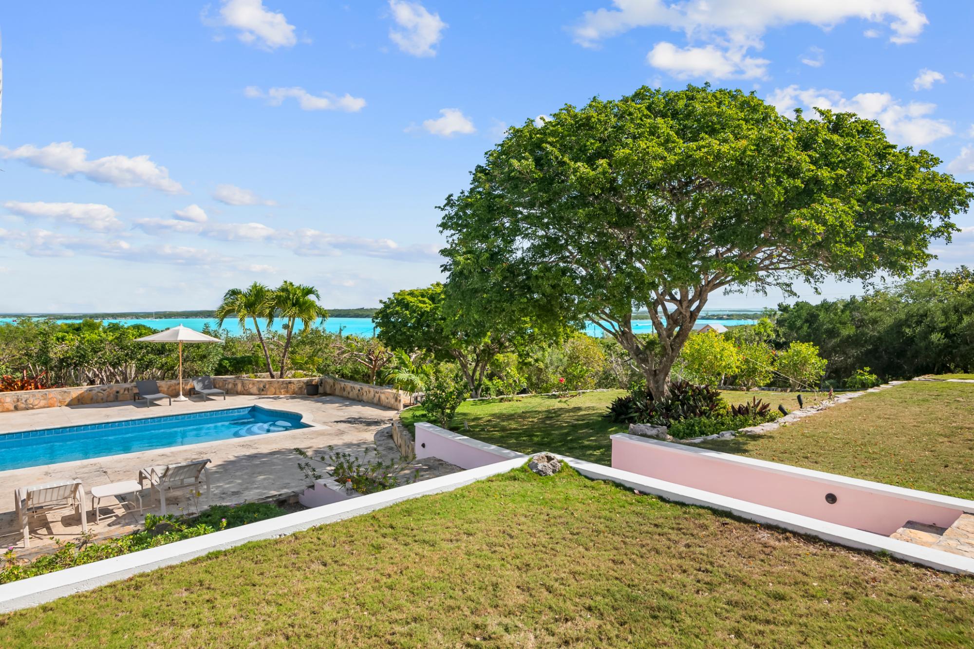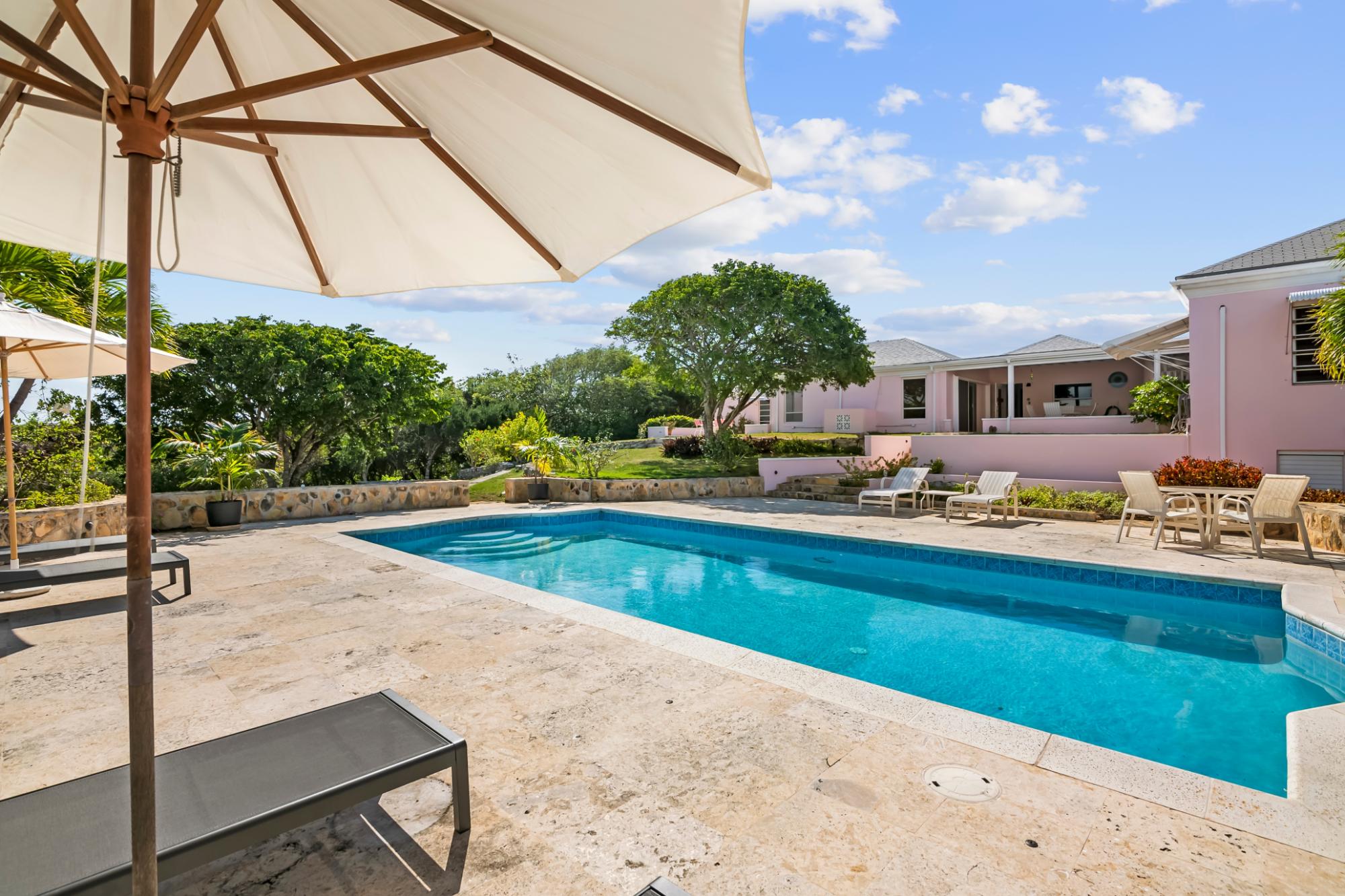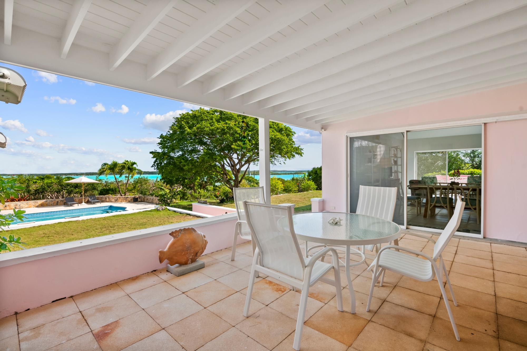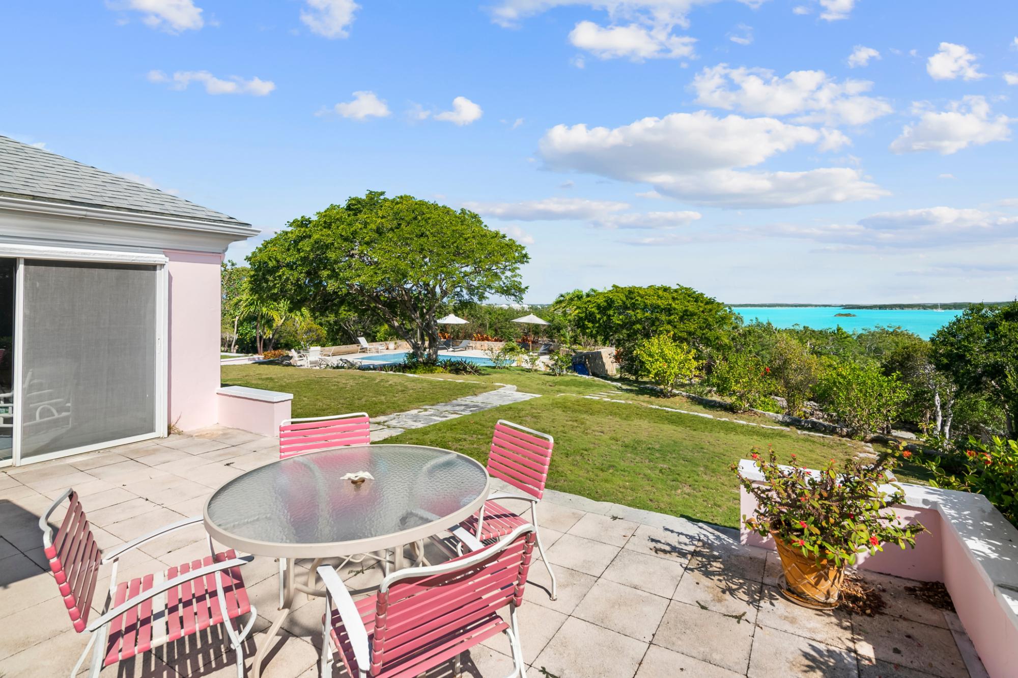 Perched atop a hill on Caravelle Road in George Town, Exuma, The Pink House sits on 1.52 acres of mostly flat land with lush gardens and fruit trees. Enjoy sunrise-to-sunset panoramic views over turquoise waters, including Elizabeth Harbor, Crab Cay, and February Point. Ideal as a primary residence, vacation retreat, or investment, the estate offers rare privacy with convenience. The 3-bedroom, 3 full and 2 half bath home features an open living and dining area designed to capture cooling island breezes and flow seamlessly outdoors. Exterior amenities include three patios, an ocean-view pool, expansive deck, and outdoor shower—perfect for entertaining or relaxing. The kitchen features stainless steel appliances and generous workspace. Minutes from George Town, the property provides easy access to dining and shopping while remaining secluded. Five contiguous lots allow for expansion or future development. Schedule your private tour today!