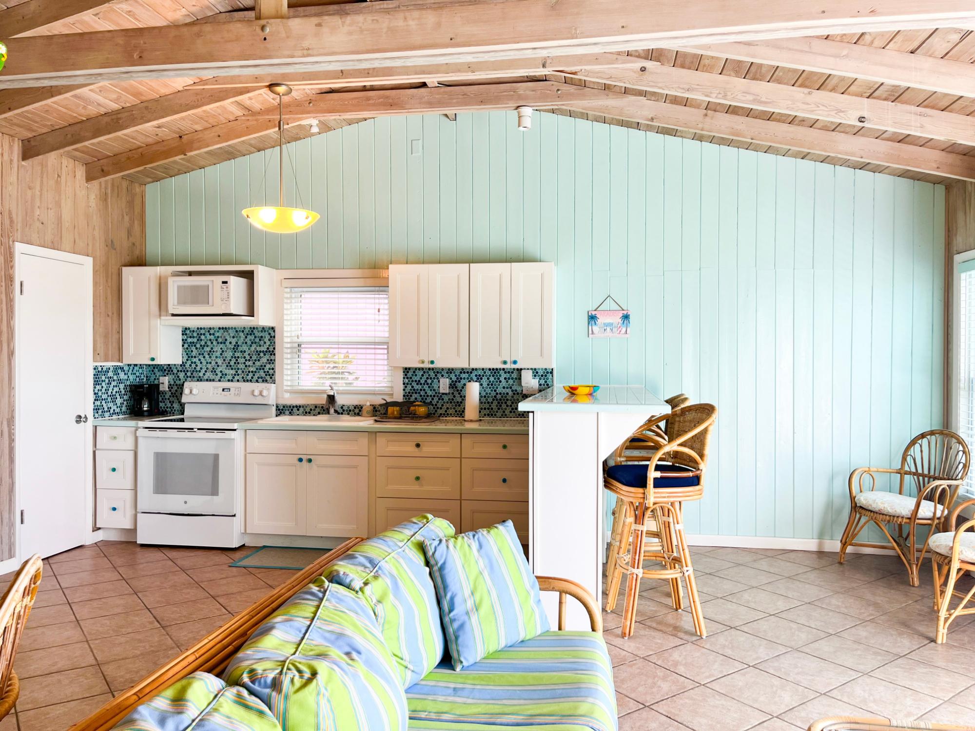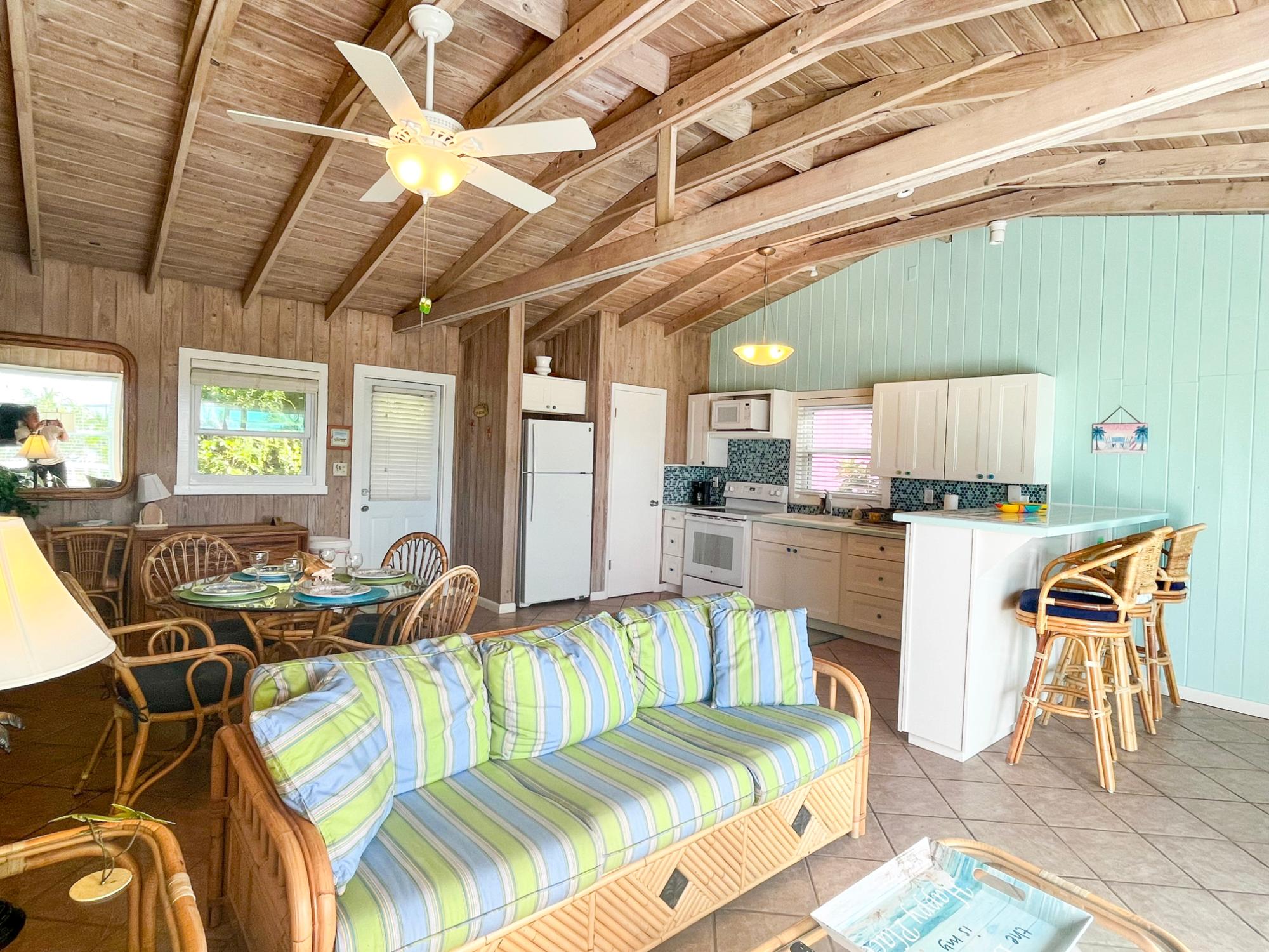 Discover your own private escape at this cozy one bedroom cottage, nestle peacefully in the lush hillside of the Buff House. Perched above the Sea of Abaco, this serene retreat offers panoramic views and perfect Island charm. Step inside to an inviting open concept living space filled with natural light and ocean breezes. Enjoy sunset cocktails on your private deck while taking in the beautiful scenery. This cottage provides both privacy and easy access to the amenities of the Bluff House and beautiful beaches of Green Turtle Cay. With an already established rental history, this property presents an excellent investment opportunity for those looking otherwise generate income while enjoying the own slice of paradise