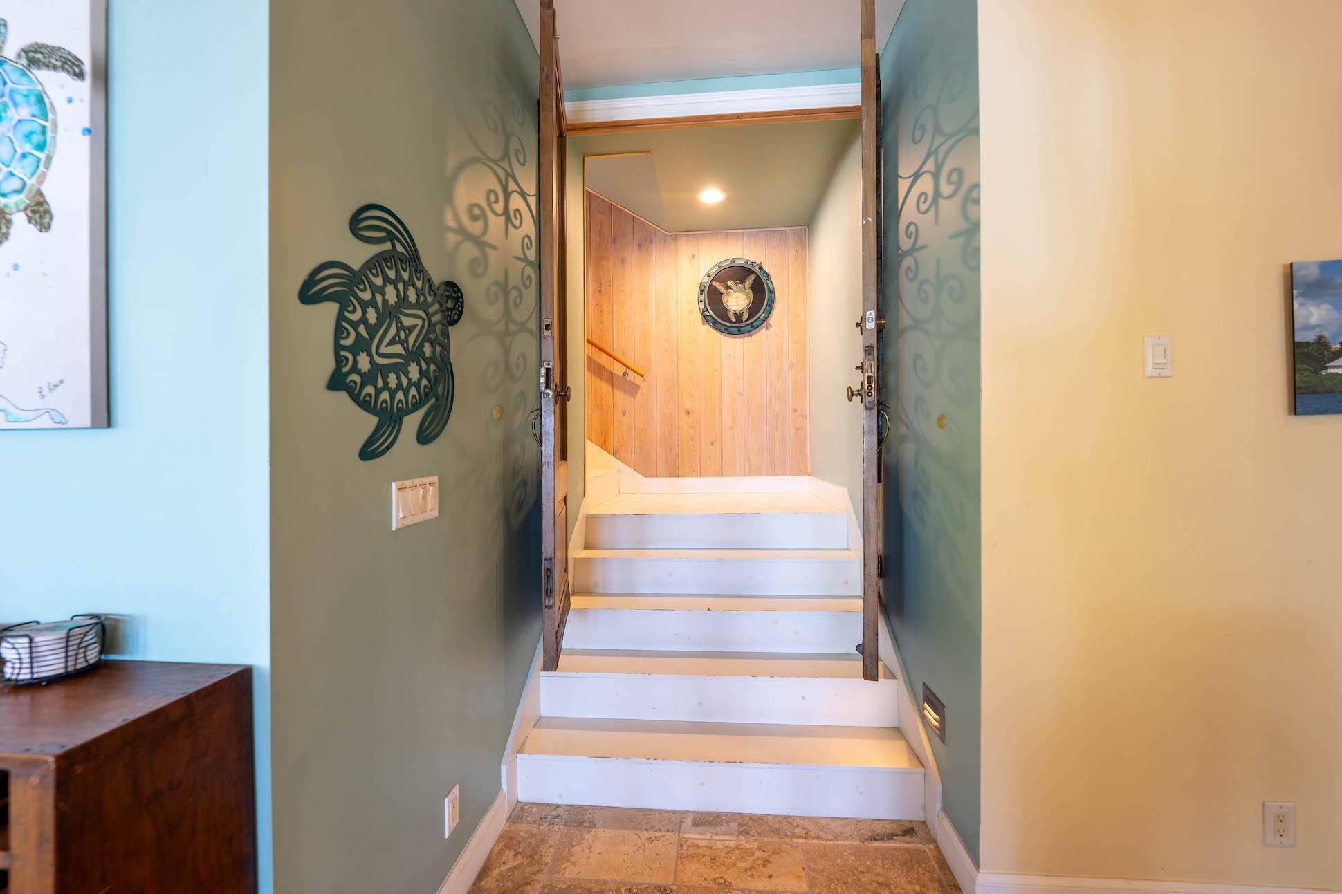 Discover Coco Bay House, an exceptional island retreat strategically located on the beach of Coco Bay on Green Turtle Cay, featuring breathtaking southwest views and a serene environment. This 3-bedroom, 3-bath home, which comfortably accommodates 13, spans 2,400 square feet across three levels, each offering spectacular sunsets and ever-changing vistas of the gin-colored waters of the protected bay. Situated on 33,342 square feet (0.765 acres) of beautifully landscaped grounds, the property includes 161.30 feet of pristine white sand beach. A 120-foot public dock is conveniently located just 700 feet to the west, perfect for boating enthusiasts. Hand-feed the turtles and stingrays, residents at the public dock. Coco Bay House is near the north end of Green Turtle Cay, with close proximity to the Green Turtle Club and Bluff House Marina. Primarily used as a vacation rental, this well-maintained, fully provisioned beach home has consistently exceeded guest expectations, offering a clean, inviting paradise. Coco Bay House is professionally maintained by local caretakers