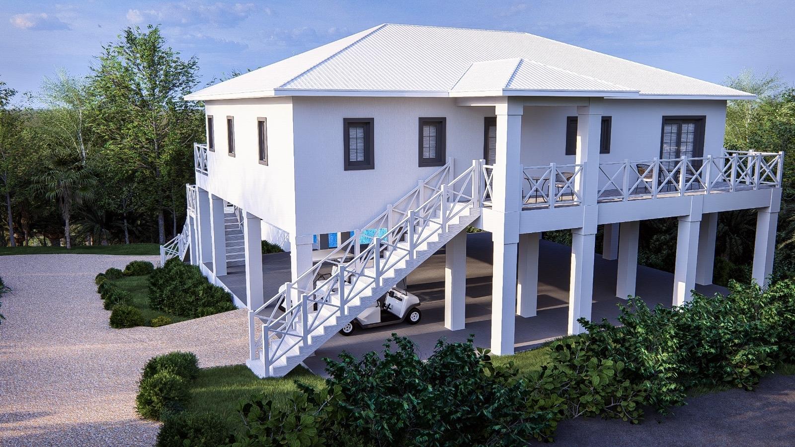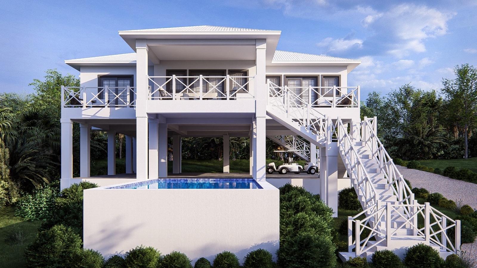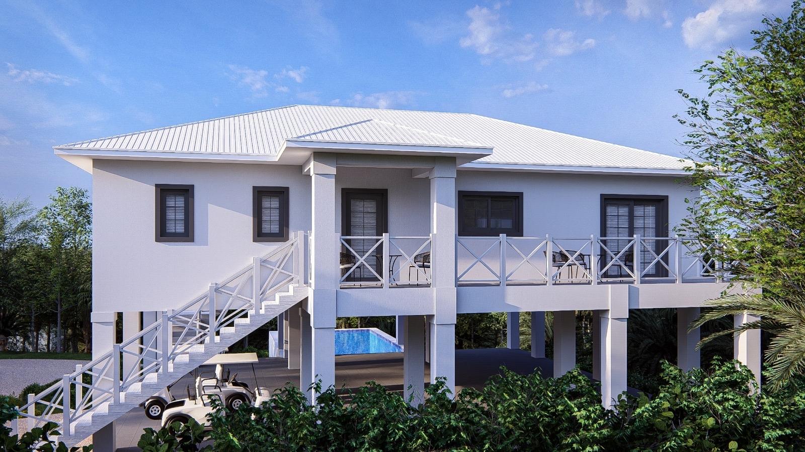 Ridgetop: beautifully appointed new home currently under construction on the ridgeline overlooking Cocoa Bay on the northwestern side of Green Turtle Cay. A 3 bedroom, 2 and a half bathroom built strategically with the main living space on the second level to take full advantage of the views and island breezes, Ridgetop is being sold fully furnished and the asking price includes a pool. Green Turtle Club Resort & Marina and Bluff House, both known for their excellent service and delicious island fare, are a 5 minute golf cart ride away. Cocoa Bay beach, a 2 minute walk down the hill from the property, outlines a protected, crescent shaped cove and is ideal for swimming and beachcombing. This is an excellent opportunity to buy your new island home in an idyllic location. The buyer who gets in early can choose between a plunge pool or full sized pool!