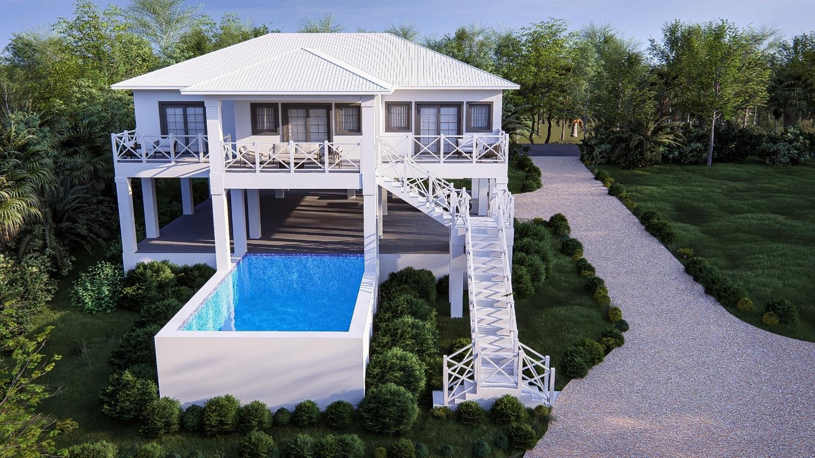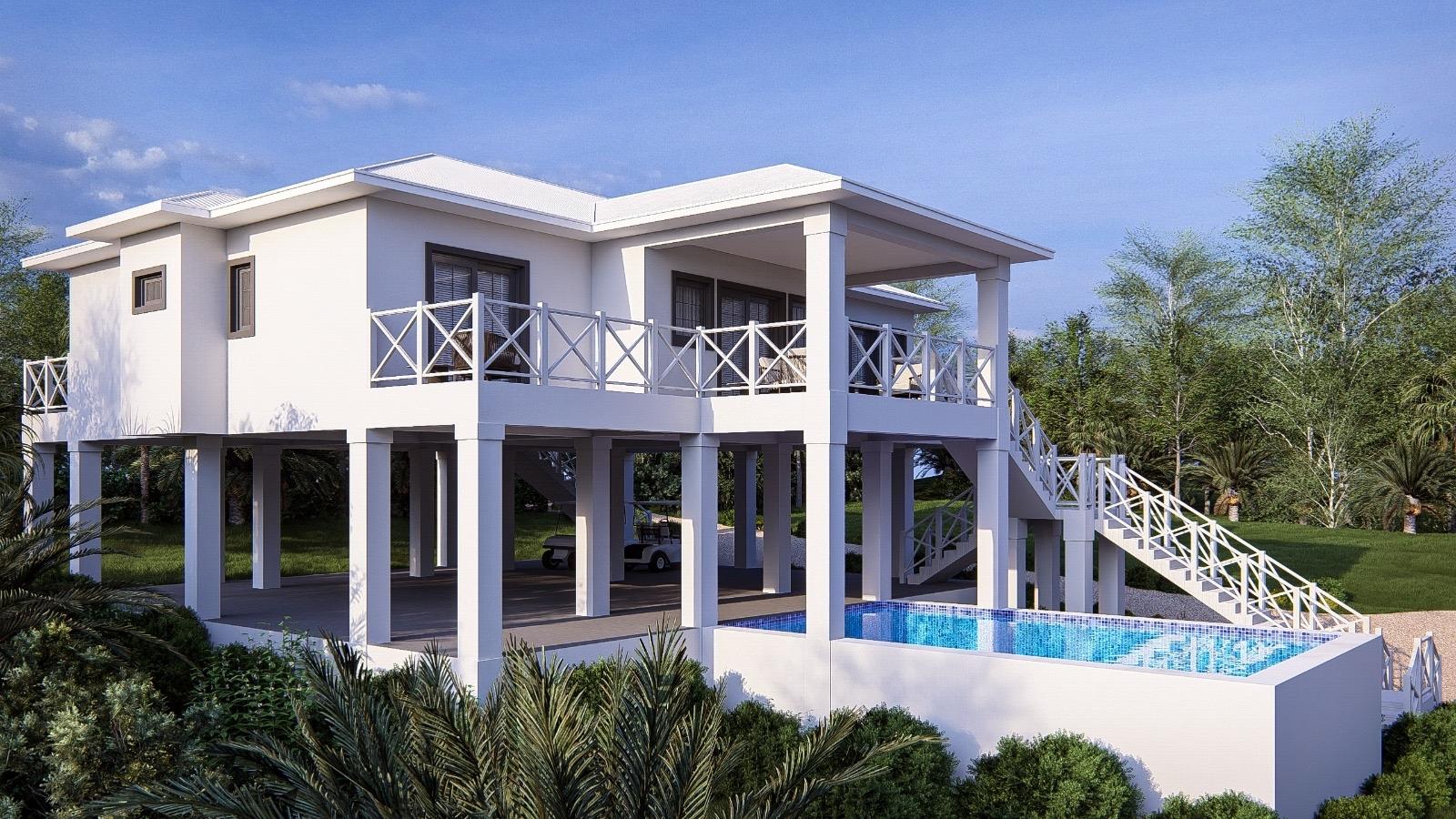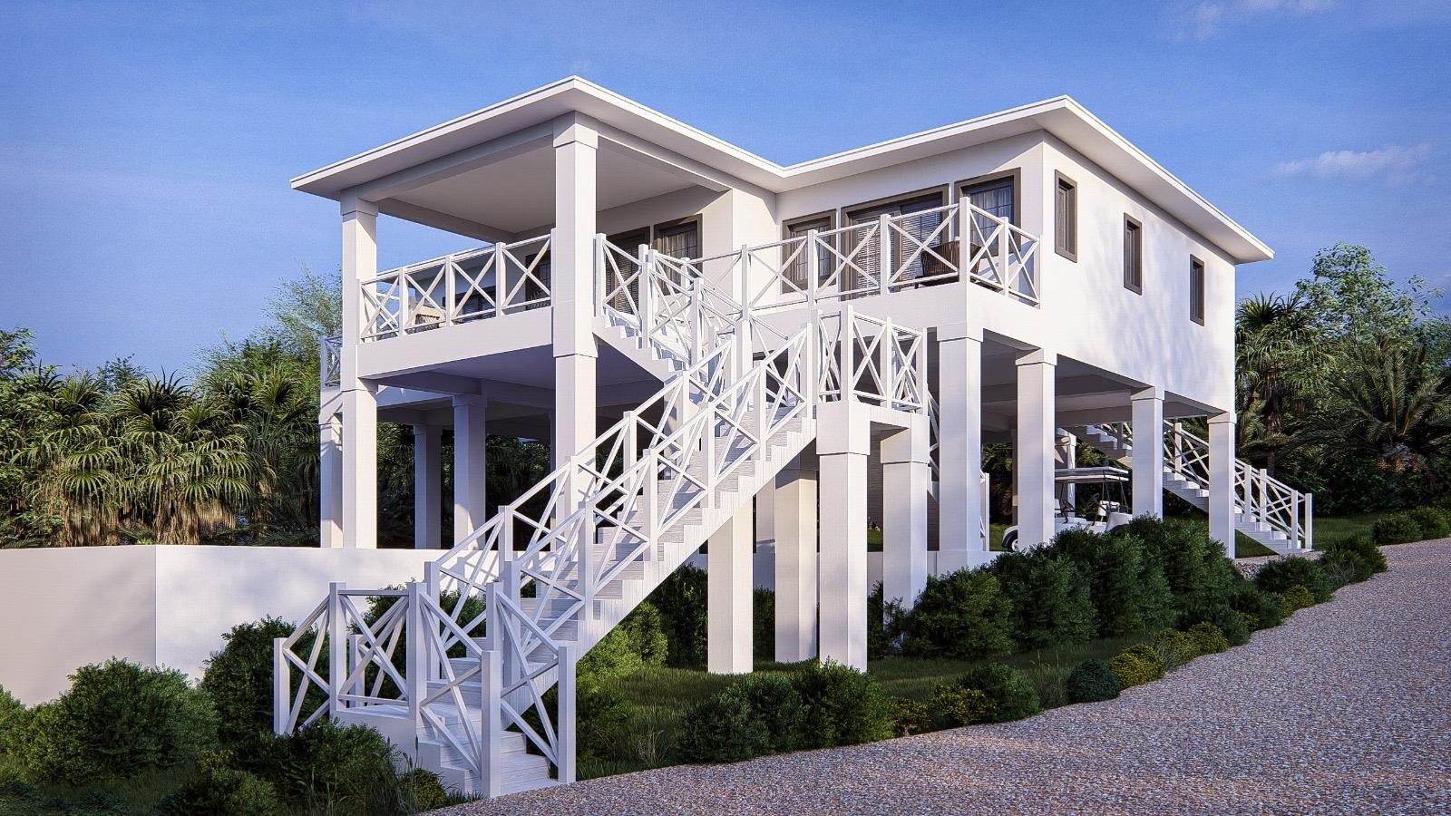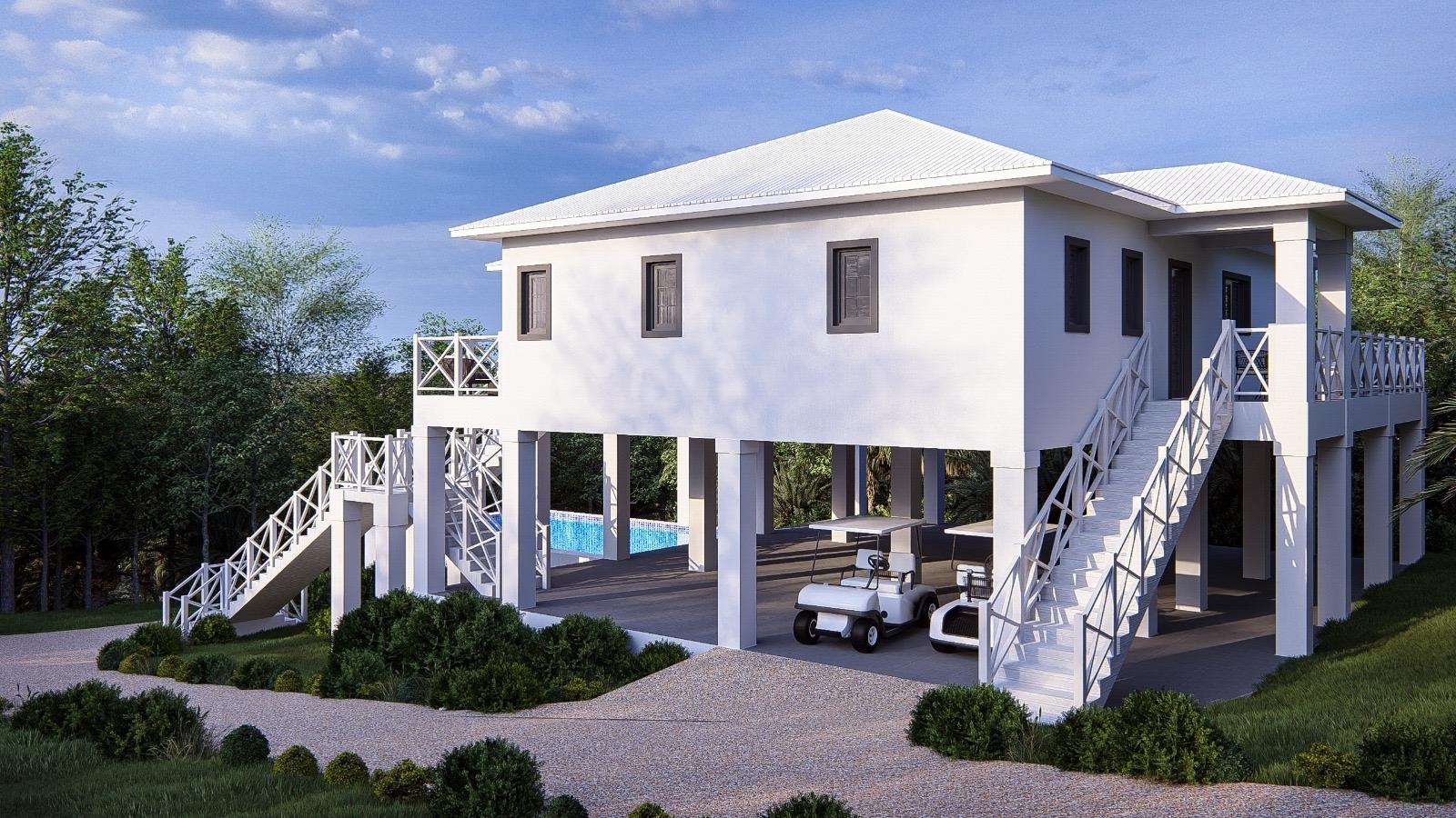 Ridgetop: beautifully appointed new home currently under construction on the ridgeline overlooking Cocoa Bay on the northwestern side of Green Turtle Cay. A 3 bedroom, 2 and a half bathroom built strategically with the main living space on the second level to take full advantage of the views and island breezes, Ridgetop is being sold fully furnished and the asking price includes a pool. Green Turtle Club Resort & Marina and Bluff House, both known for their excellent service and delicious island fare, are a 5 minute golf cart ride away. Cocoa Bay beach, a 2 minute walk down the hill from the property, outlines a protected, crescent shaped cove and is ideal for swimming and beachcombing. This is an excellent opportunity to buy your new island home in an idyllic location. The buyer who gets in early can choose between a plunge pool or full sized pool!