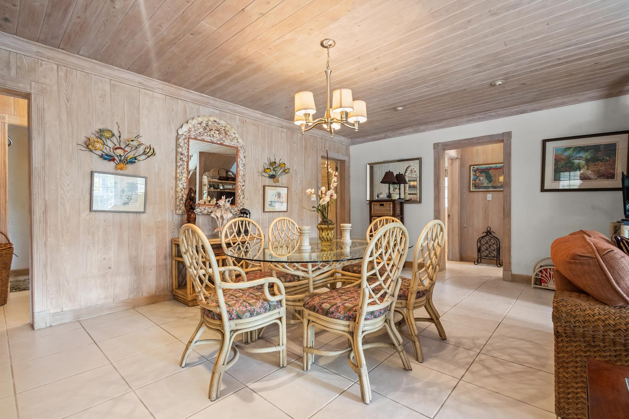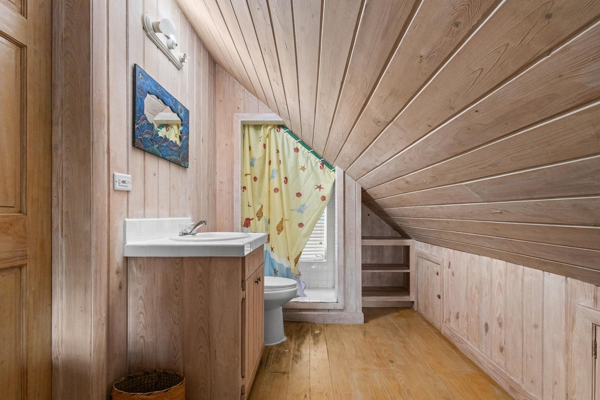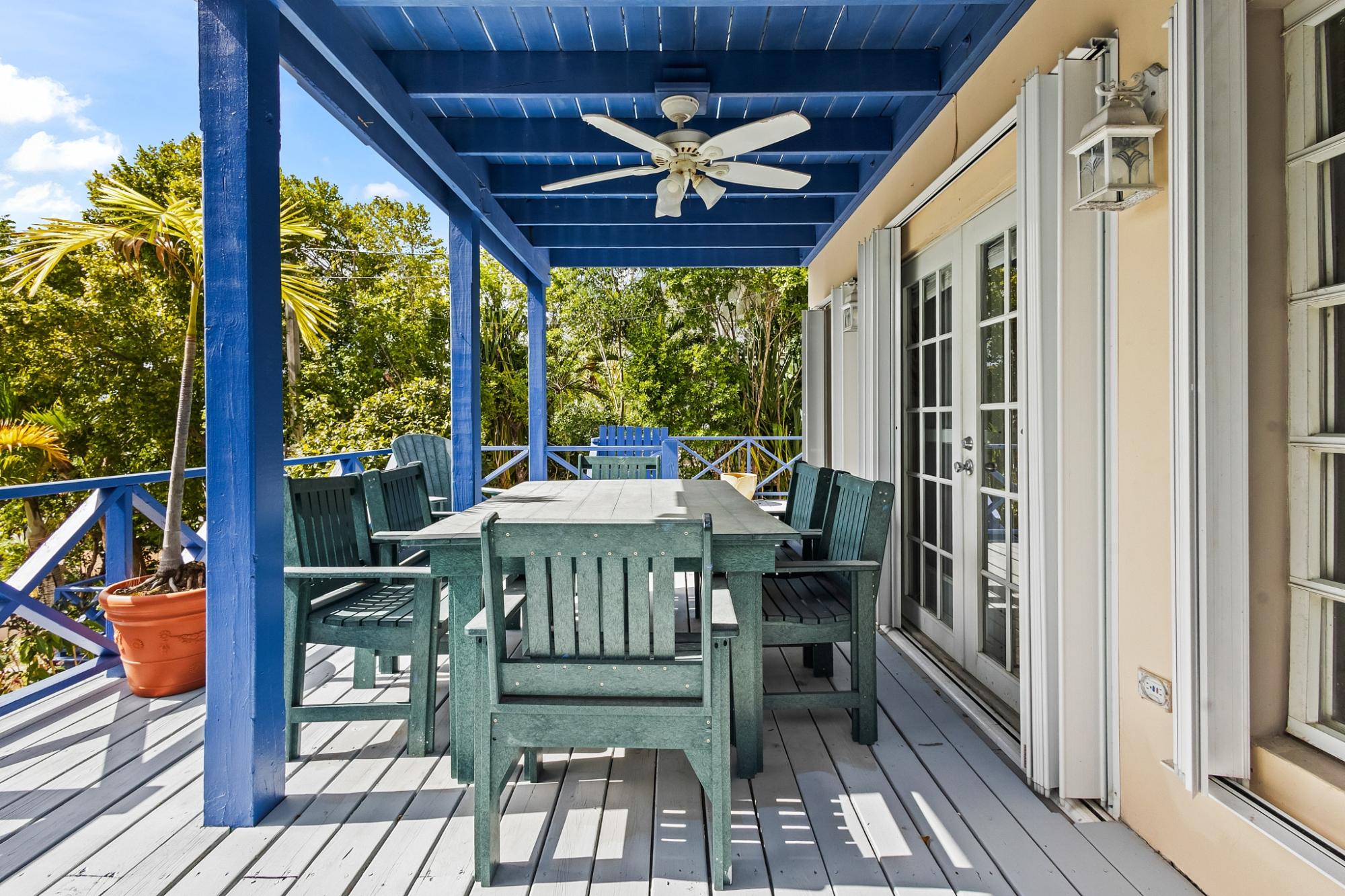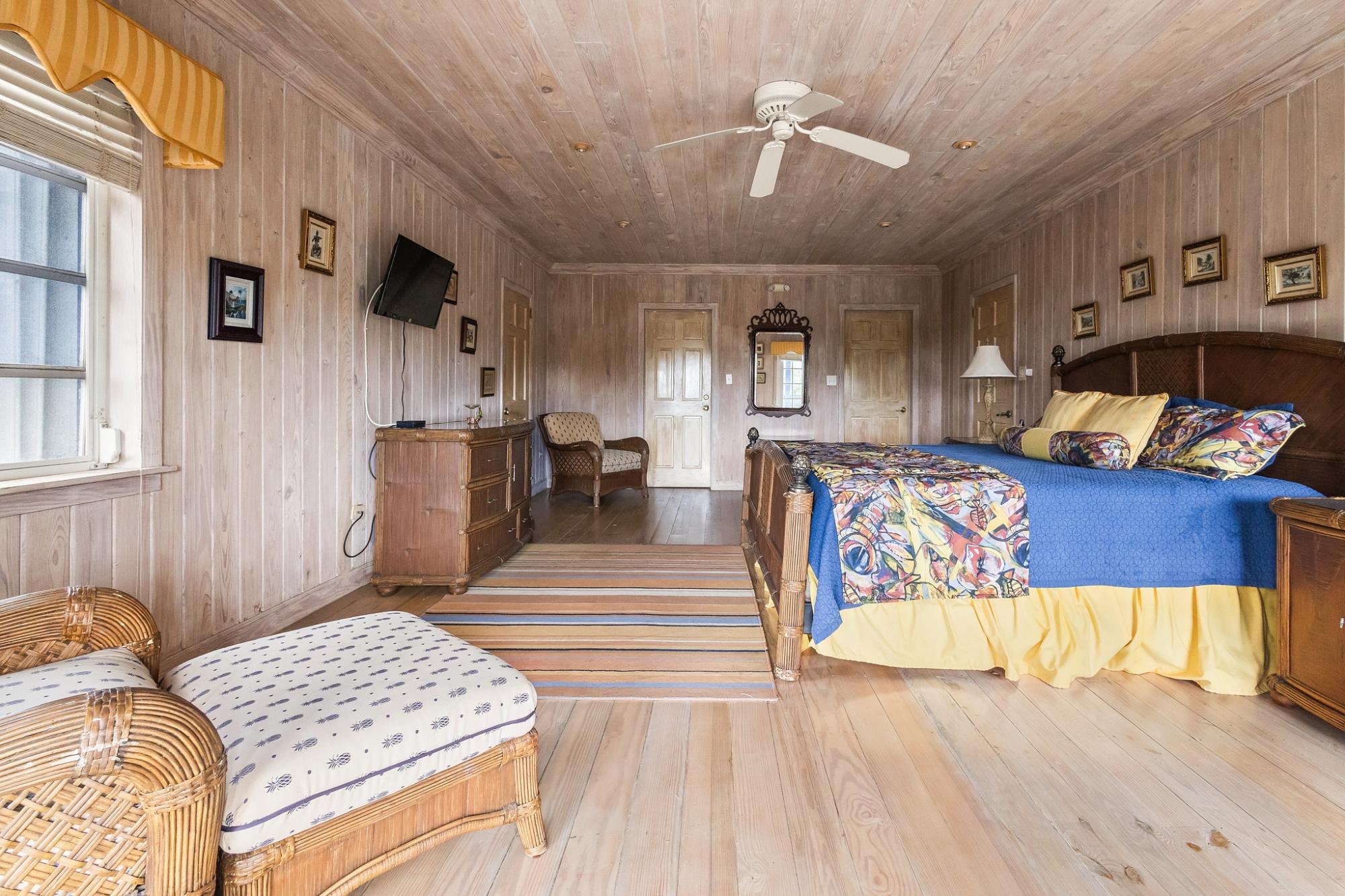 Sea Vision is a Bahamian-style residence located in the established community of Triana Shores, offering elevated views toward Harbour Island and stunning sunset vistas. Designed with classic island architecture, the home features native wood ceilings, an open living and dining layout, generous storage, and multiple balconies that capture natural light and ocean breezes. With over 1,000 square meters of outdoor deck space and mature fruit trees, the property is well-suited for guest entertaining and indoor-outdoor living.