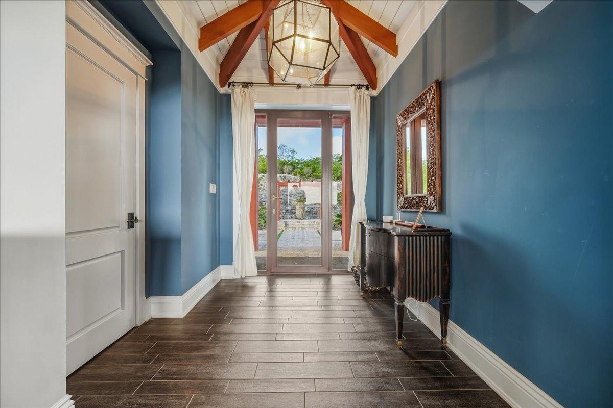 “Blown Away” is a stunning custom-built home within The Reserve at Hooper’s Bay, a private enclave of just ten estate lots minutes from Exuma International Airport. Set on an elevated parcel, the residence enjoys sweeping views of the turquoise harbour and pristine beach below. Spanning approximately 4,500 sq. ft., the main home features three bedrooms, three and a half bathrooms, a spacious open-concept living and kitchen area, dining room, office, and a one-bedroom, one-bath detached guest suite. High ceilings, large windows, and natural finishes create a bright and airy ambiance throughout. The property is beautifully landscaped with native vegetation for low-maintenance tropical living. Professionally furnished and elegantly decorated, Blown Away offers timeless sophistication and the perfect balance of privacy, comfort, and contemporary island elegance. A golf cart is also included in the purchase for convenient access to the beach.