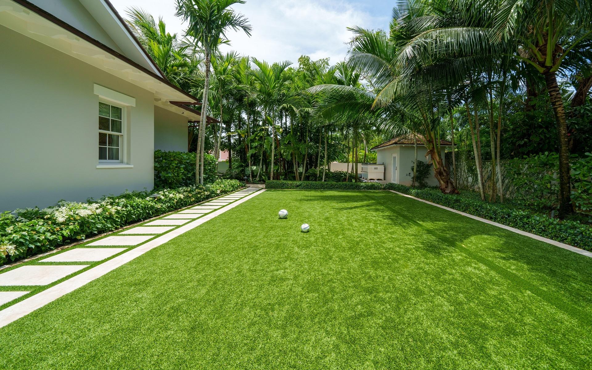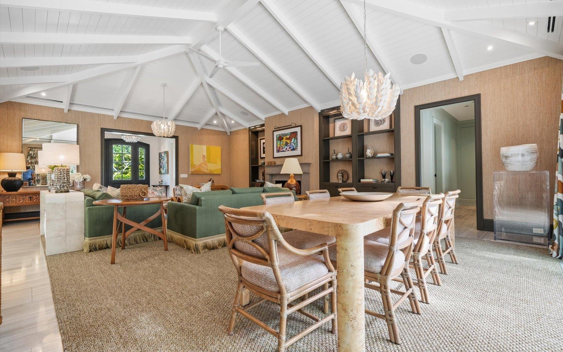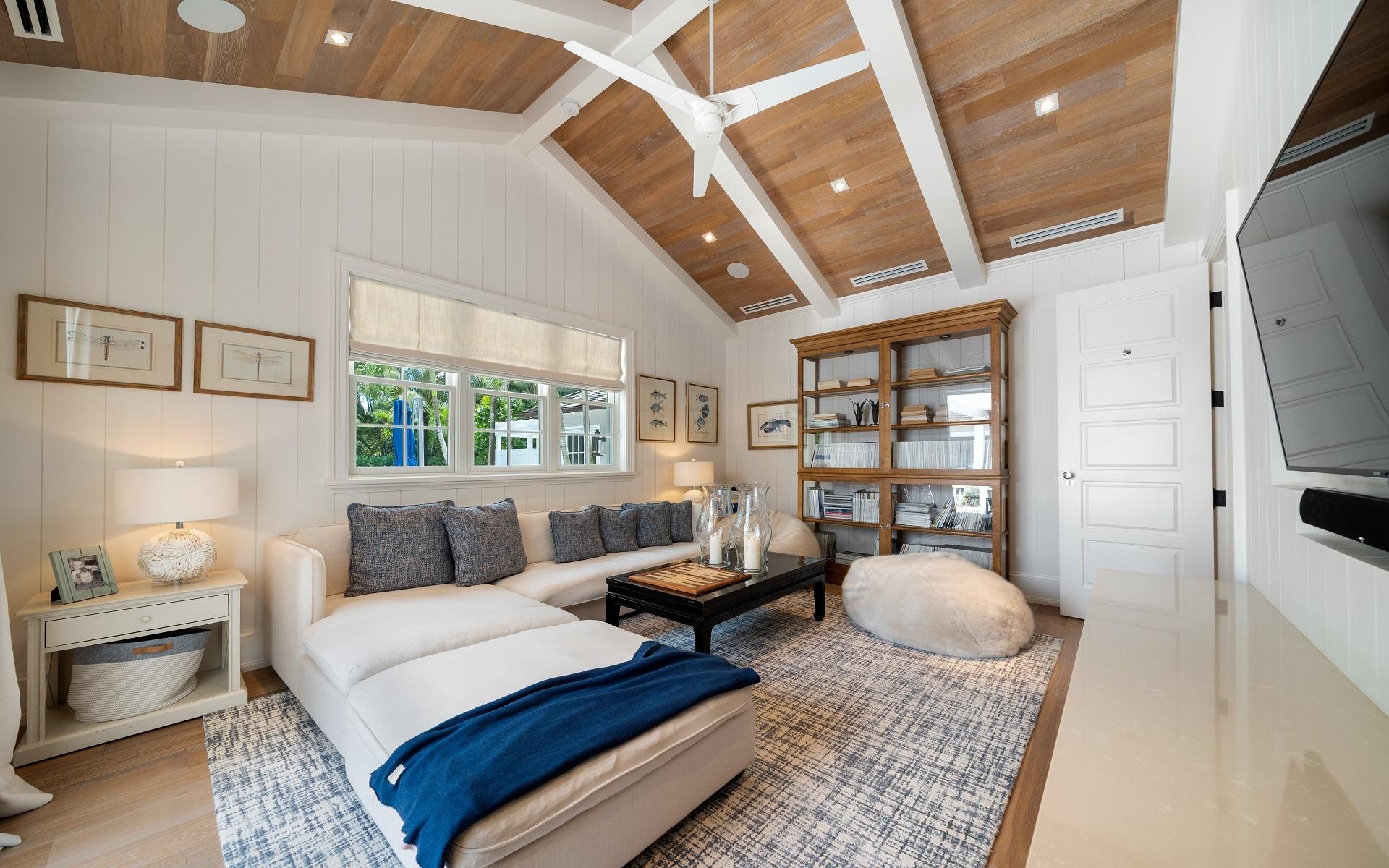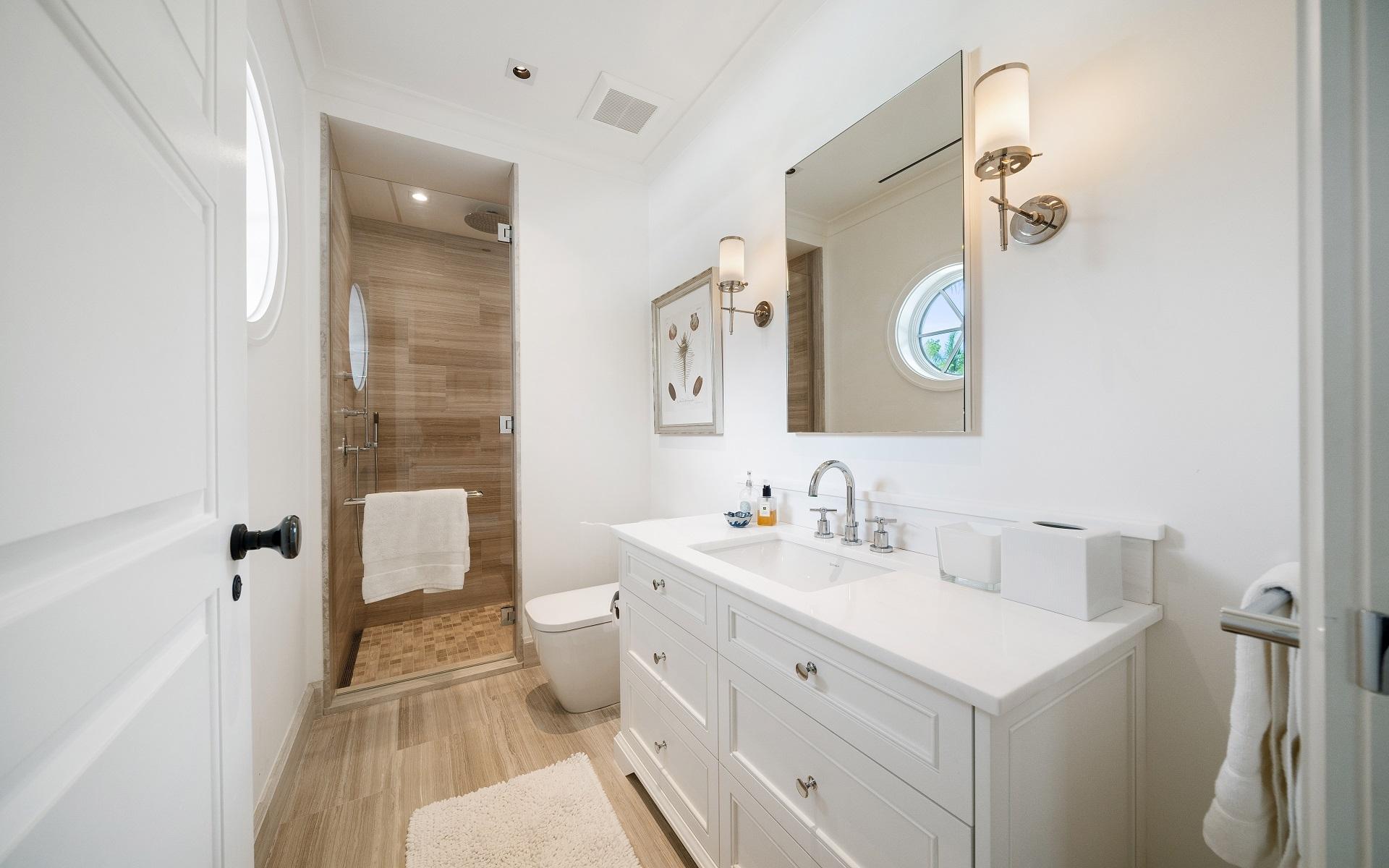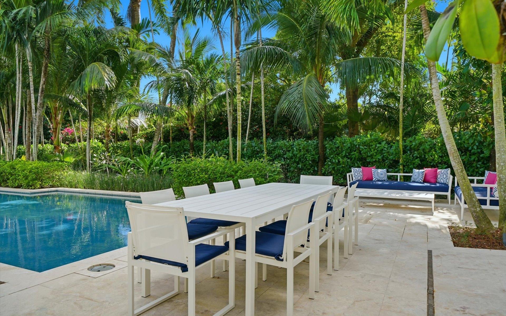 Carlea House is a beautifully renovated four-bedroom residence situated on Chelsea Place in the prestigious Lyford Cay community. The 5,214 sq ft home sits on 0.55 acres. Built by E.P Taylor and designed by John Volk, it was home to the original manager of the Lyford Cay Club. Although the home underwent a complete modern, custom renovation in 2019, the original front wall façade and the classic Lyford Cay rooflines preserve the charm. Then in 2024, it was reimagined in the eyes of international architectural and interior design firm Noorani Greiner who brought a warmth and comfort to a this contemporary island home. At the front of the house, one is greeted by six Hong Kong orchid trees, spaced along the street easement. Many of the palm trees were original to the property and preserved during construction, then replanted to maximize the new layout. The mature and extensive landscaping includes the original rubber trees flanking the east and west boundary and over 100 palm trees providing an oasis of privacy in the rear of the property and a sense of belonging from the street.