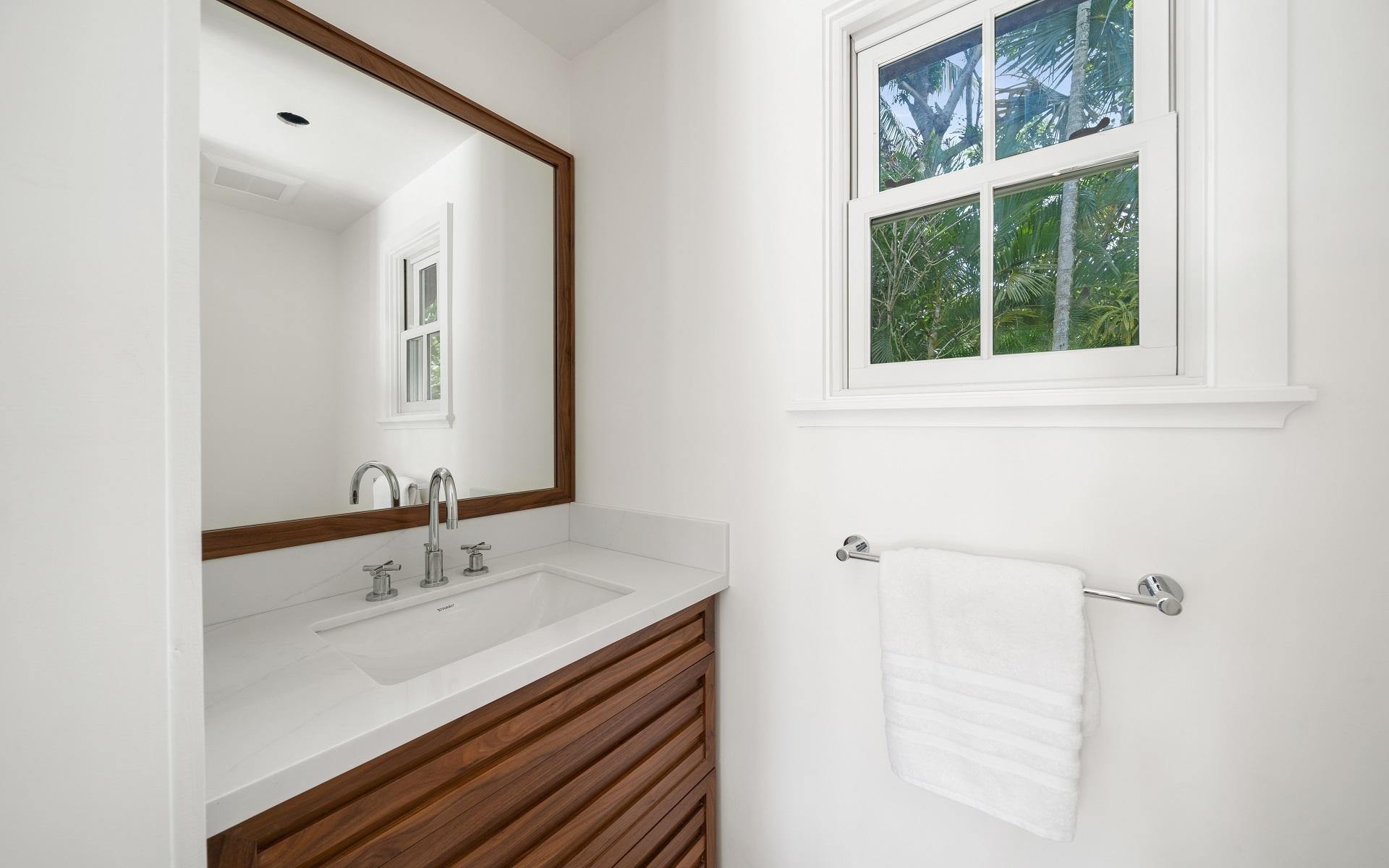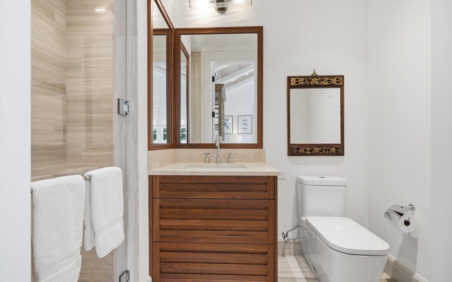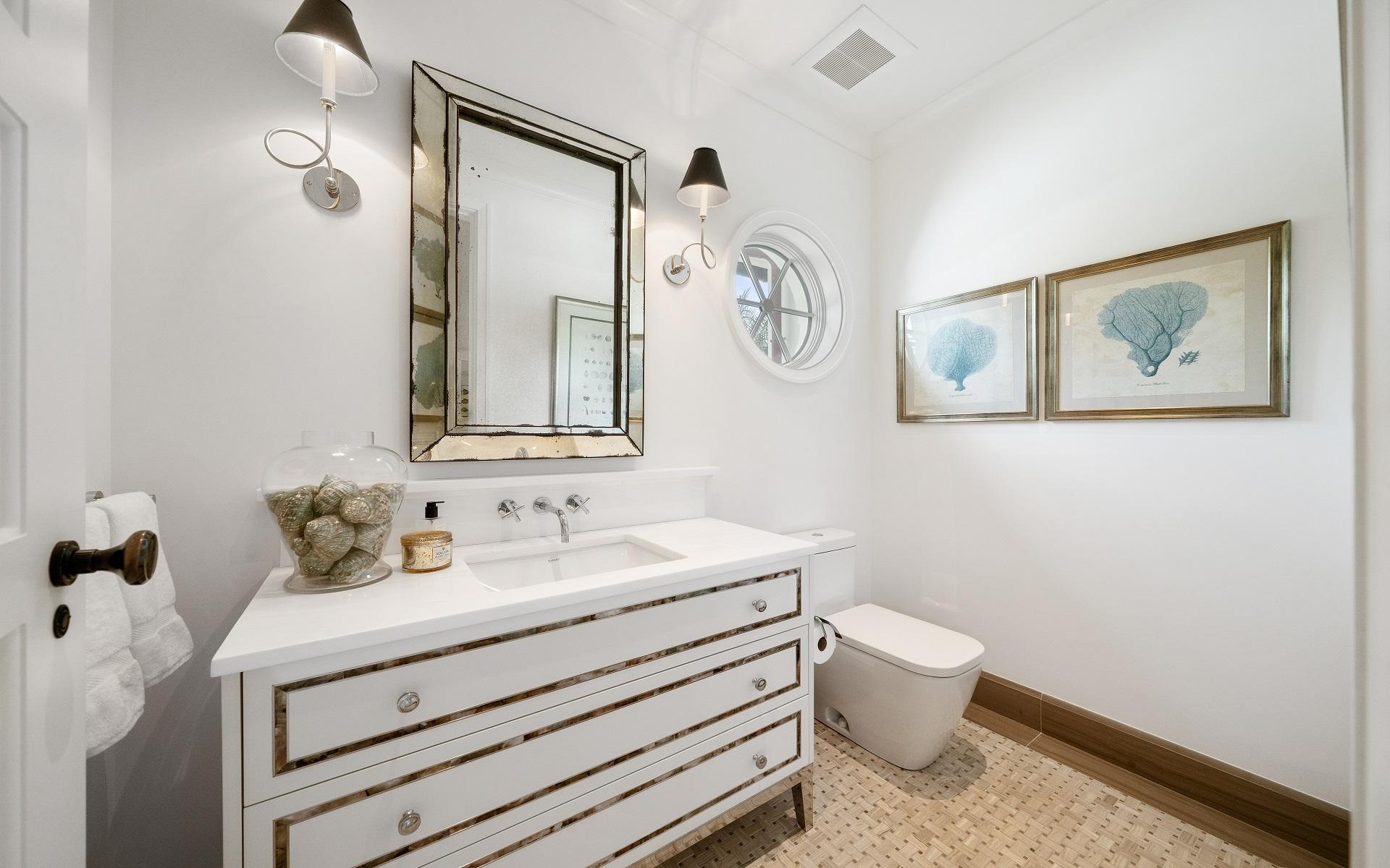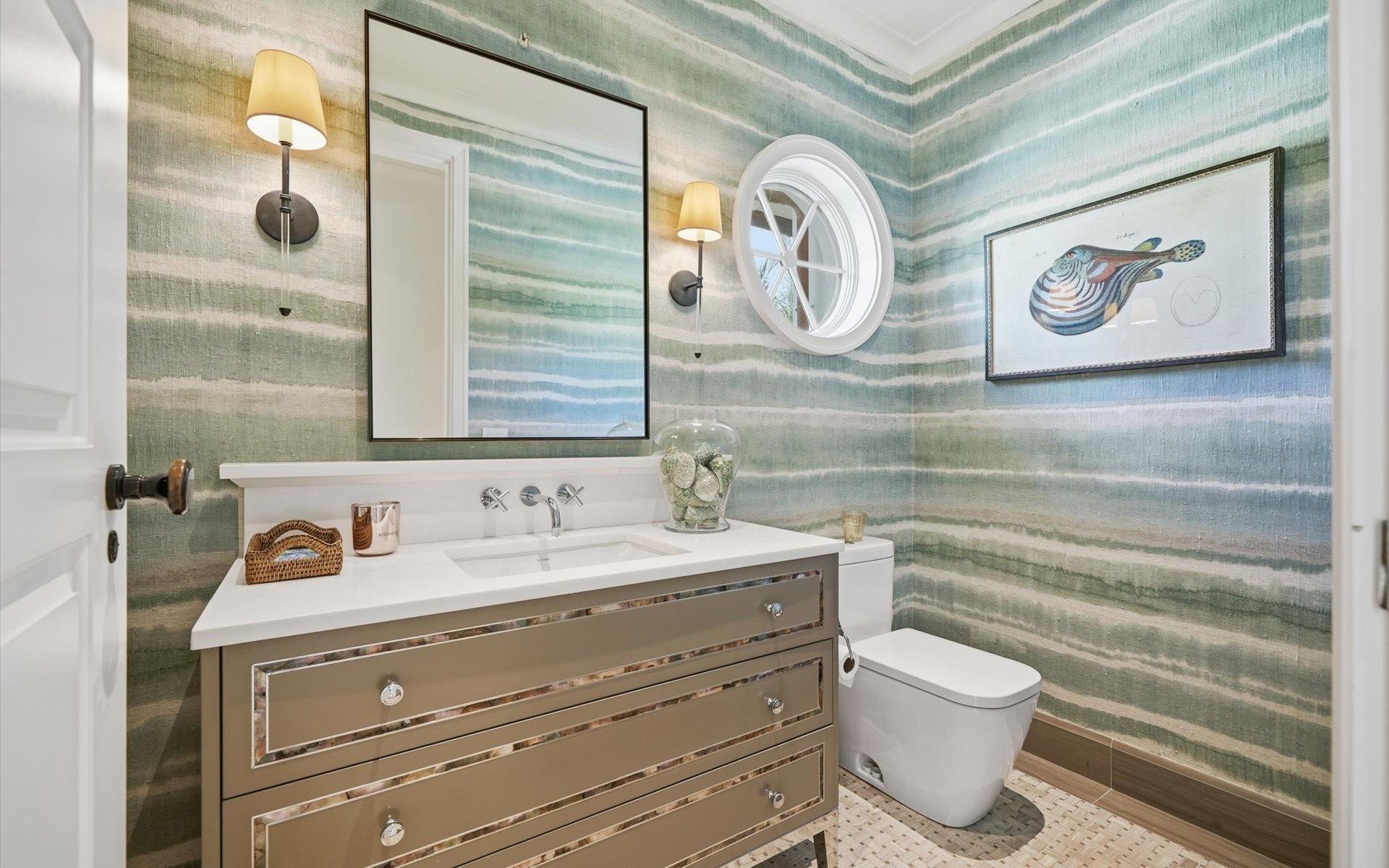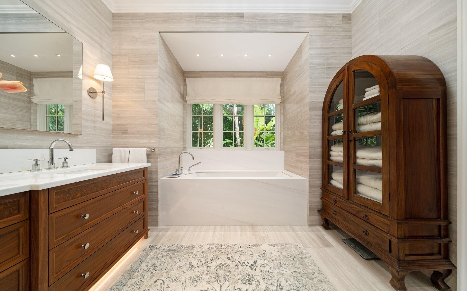 Carlea House is a beautifully renovated four-bedroom residence situated on Chelsea Place in the prestigious Lyford Cay community. The 5,214 sq ft home sits on 0.55 acres. Built by E.P Taylor and designed by John Volk, it was home to the original manager of the Lyford Cay Club. Although the home underwent a complete modern, custom renovation in 2019, the original front wall façade and the classic Lyford Cay rooflines preserve the charm. Then in 2024, it was reimagined in the eyes of international architectural and interior design firm Noorani Greiner who brought a warmth and comfort to a this contemporary island home. At the front of the house, one is greeted by six Hong Kong orchid trees, spaced along the street easement. Many of the palm trees were original to the property and preserved during construction, then replanted to maximize the new layout. The mature and extensive landscaping includes the original rubber trees flanking the east and west boundary and over 100 palm trees providing an oasis of privacy in the rear of the property and a sense of belonging from the street.