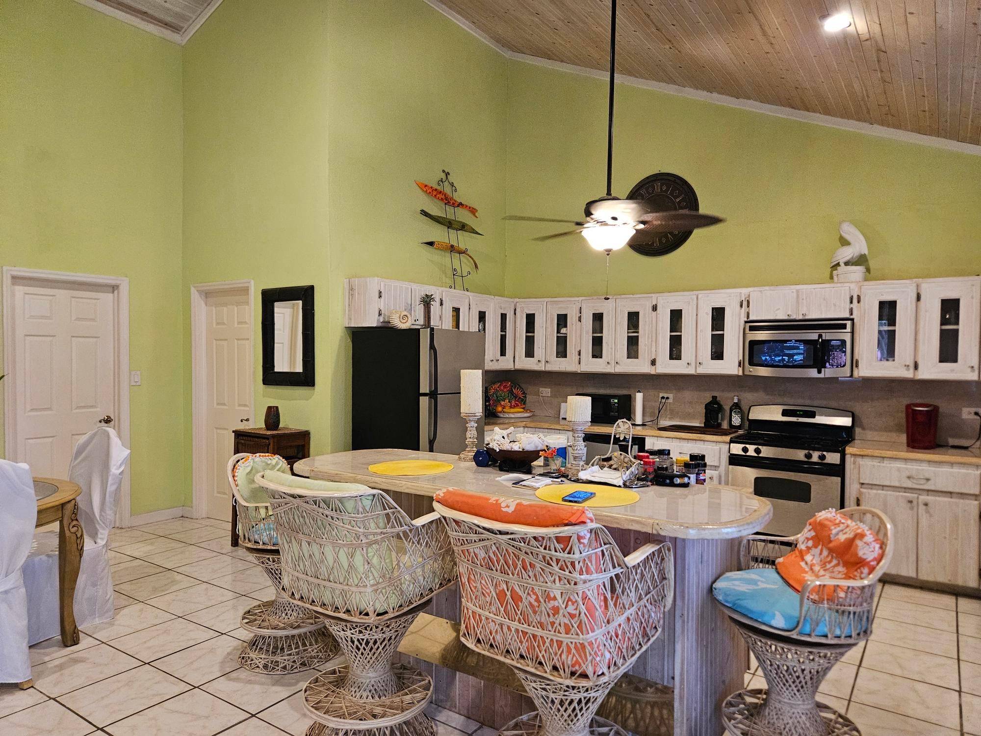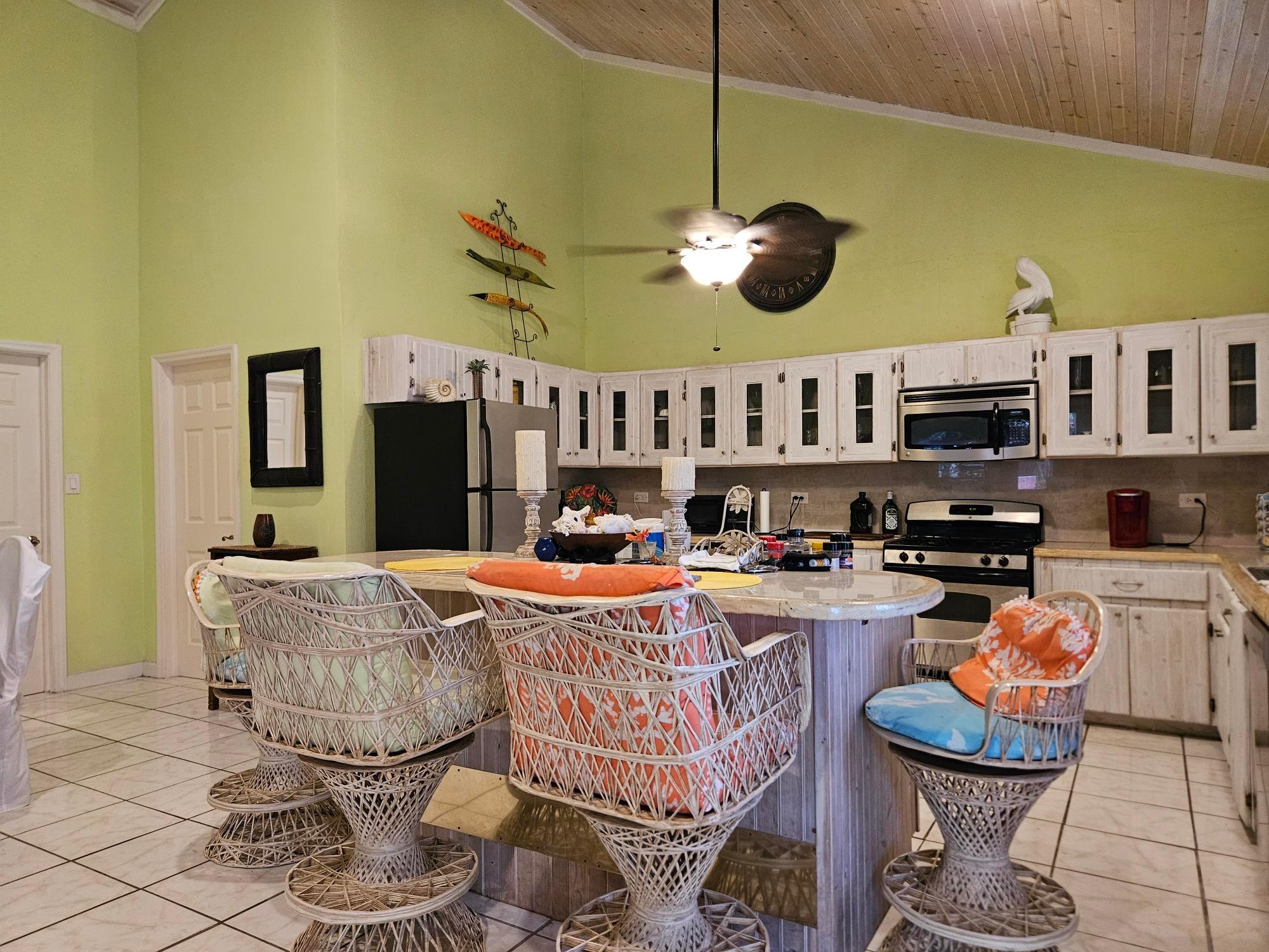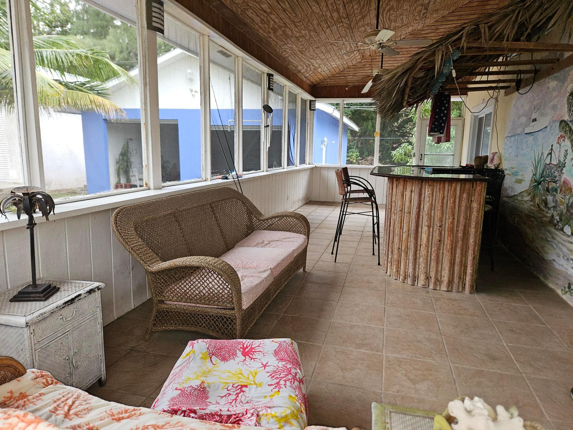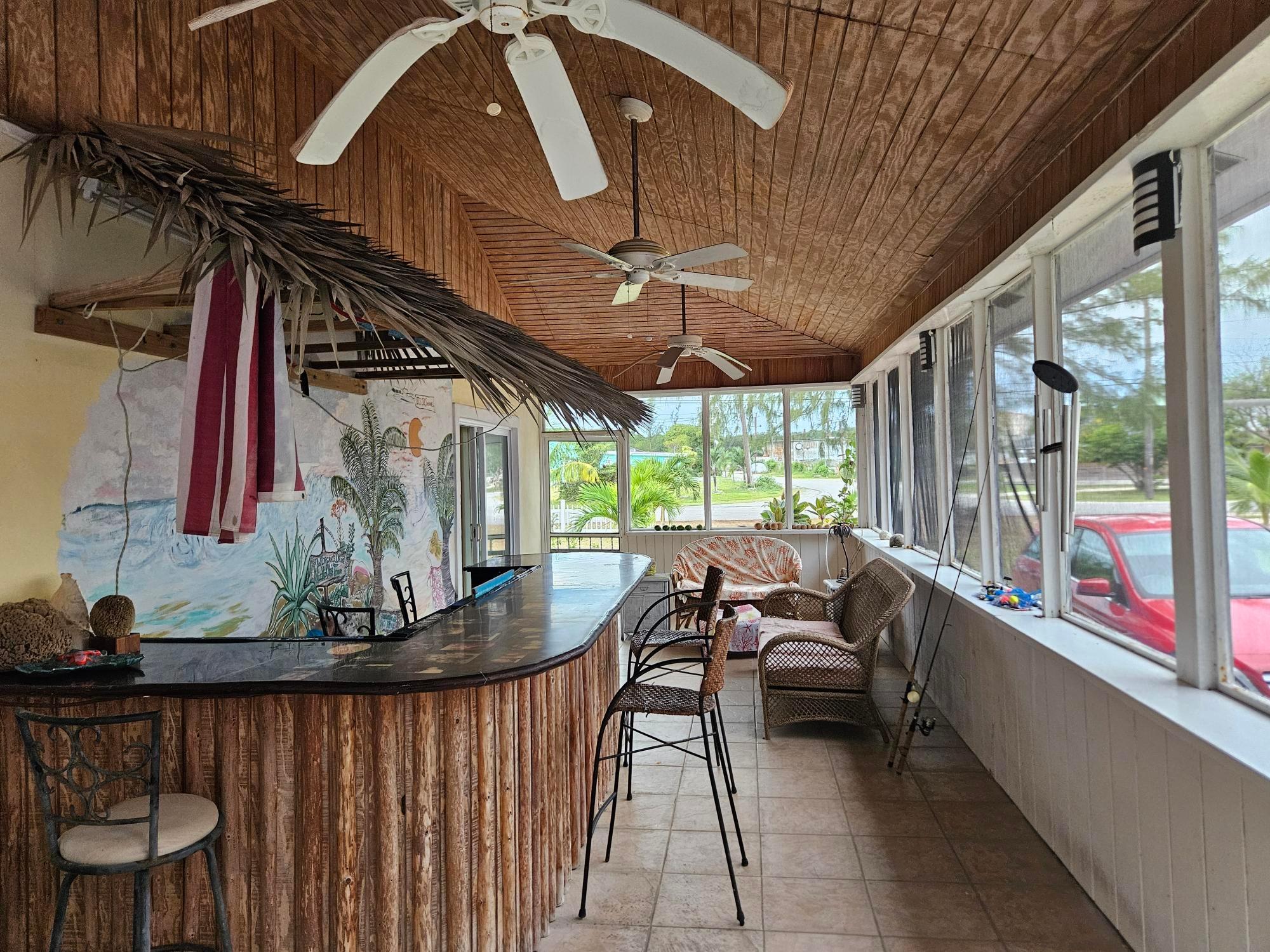 This beautifully maintained 2-bedroom, 2-bath home offers a rare turnkey opportunity and comes fully furnished for effortless move-in. Built just 11 years ago, the residence features a bright, open living and kitchen area highlighted by soaring 23-foot ceilings that create an impressive sense of space and light. The kitchen is outfitted with custom cabinets crafted from Bahamian pine, adding warmth and character, and includes all appliances—refrigerator, stove, microwave, washer, and dryer—along with an outdoor grill for easy entertaining. The home sits on a generous 11,250 sq ft lot and offers 1,730 sq ft of comfortable living space designed for both relaxation and functionality. The garage is fully equipped, with all tools included in the sale, making it ideal for hobbyists or those who value convenience. As an added bonus, the deal also includes a 2012 Mercedes-Benz B180, providing exceptional value rarely found in a property offering. This is a unique, all-inclusive package combining quality construction, thoughtful features, and unmatched extras.