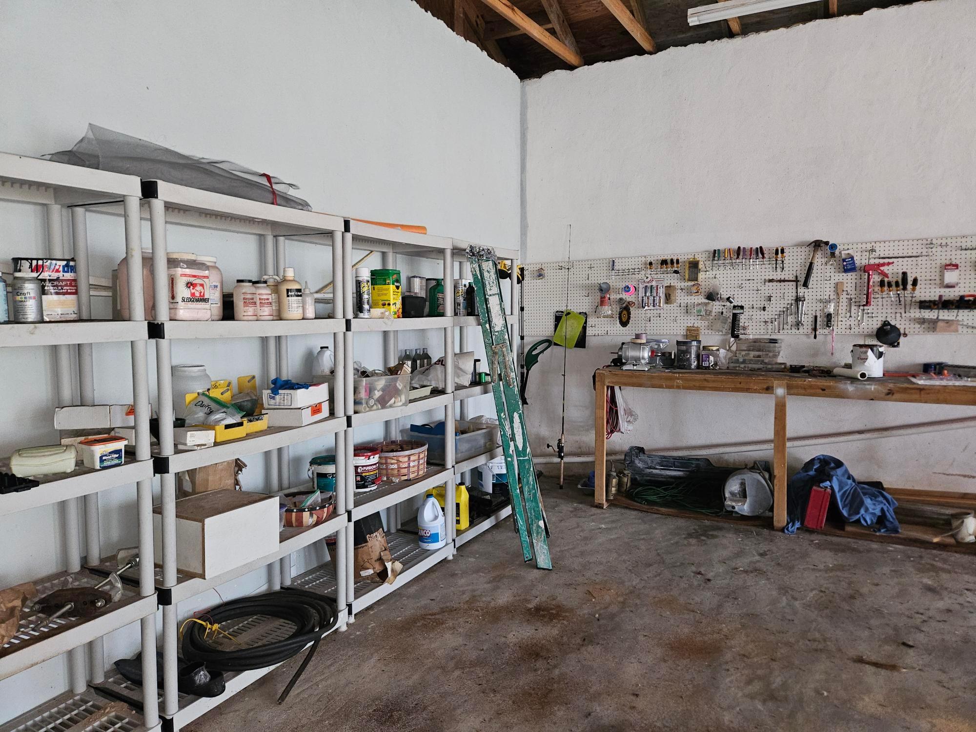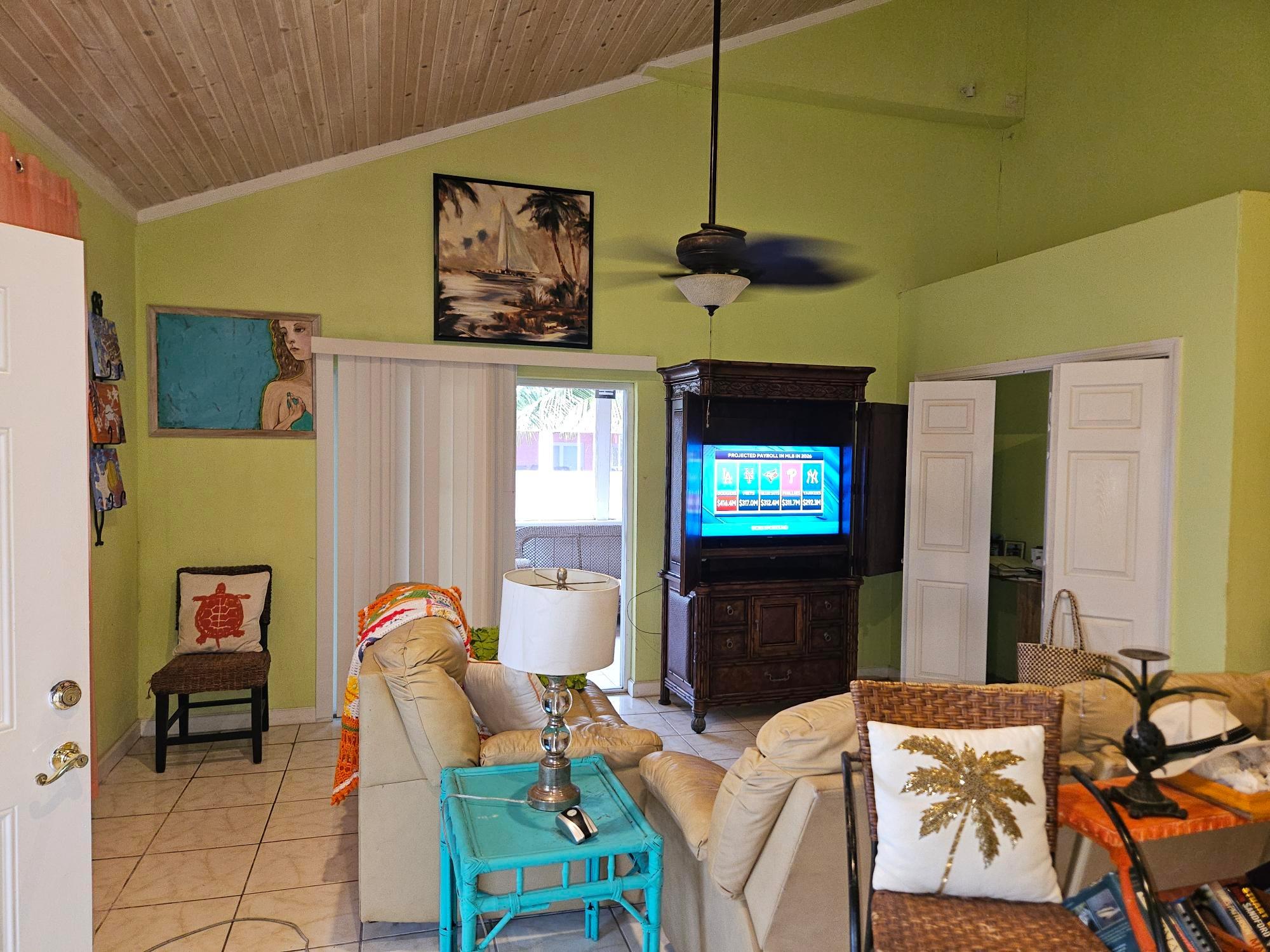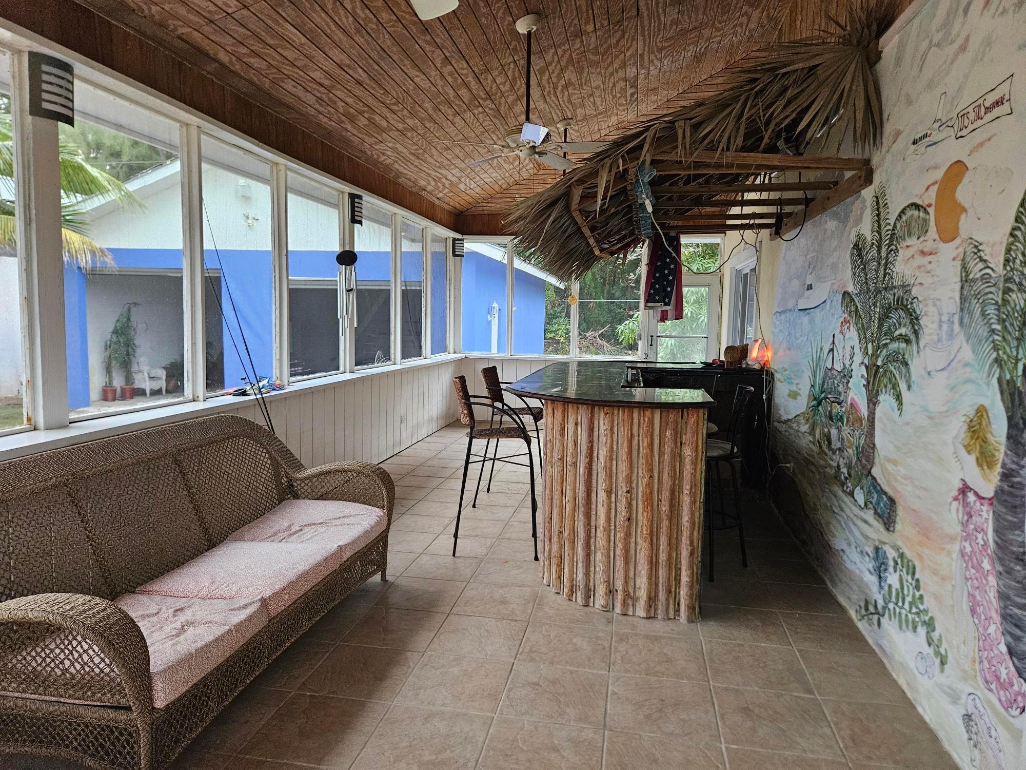 This beautifully maintained 2-bedroom, 2-bath home offers a rare turnkey opportunity and comes fully furnished for effortless move-in. Built just 11 years ago, the residence features a bright, open living and kitchen area highlighted by soaring 23-foot ceilings that create an impressive sense of space and light. The kitchen is outfitted with custom cabinets crafted from Bahamian pine, adding warmth and character, and includes all appliances—refrigerator, stove, microwave, washer, and dryer—along with an outdoor grill for easy entertaining. The home sits on a generous 11,250 sq ft lot and offers 1,730 sq ft of comfortable living space designed for both relaxation and functionality. The garage is fully equipped, with all tools included in the sale, making it ideal for hobbyists or those who value convenience. As an added bonus, the deal also includes a 2012 Mercedes-Benz B180, providing exceptional value rarely found in a property offering. This is a unique, all-inclusive package combining quality construction, thoughtful features, and unmatched extras.