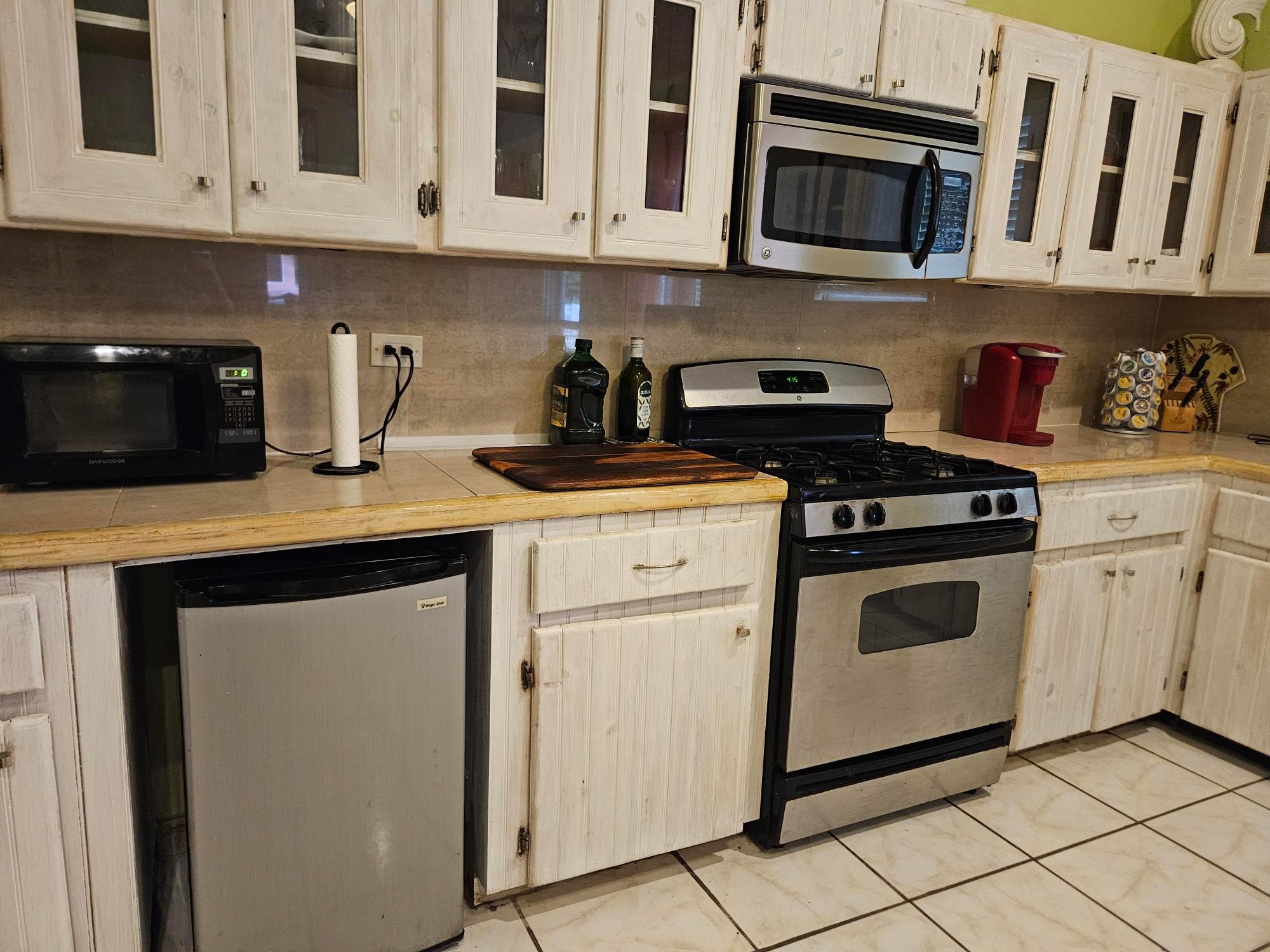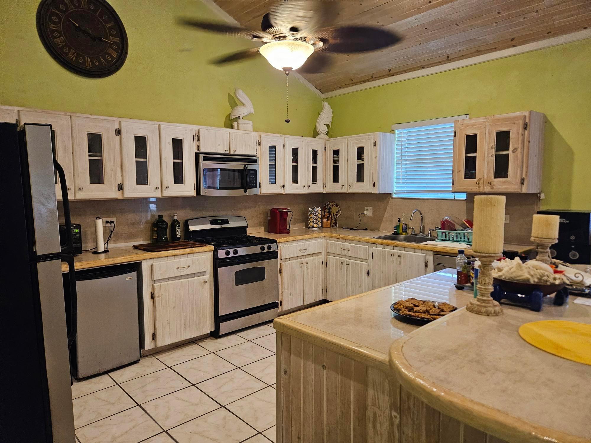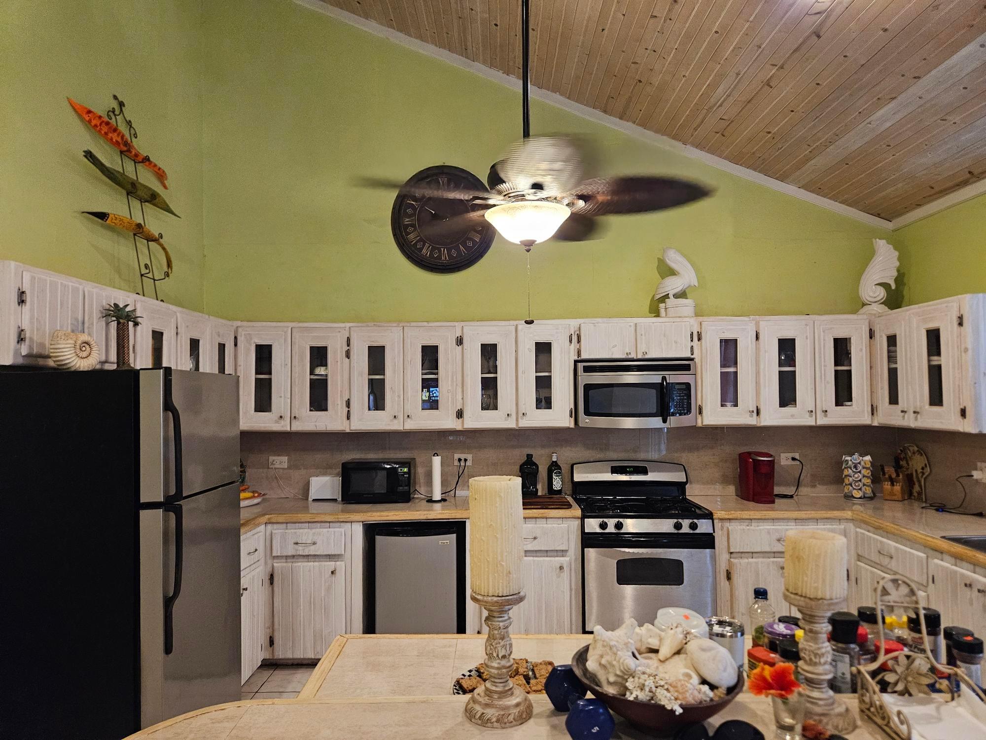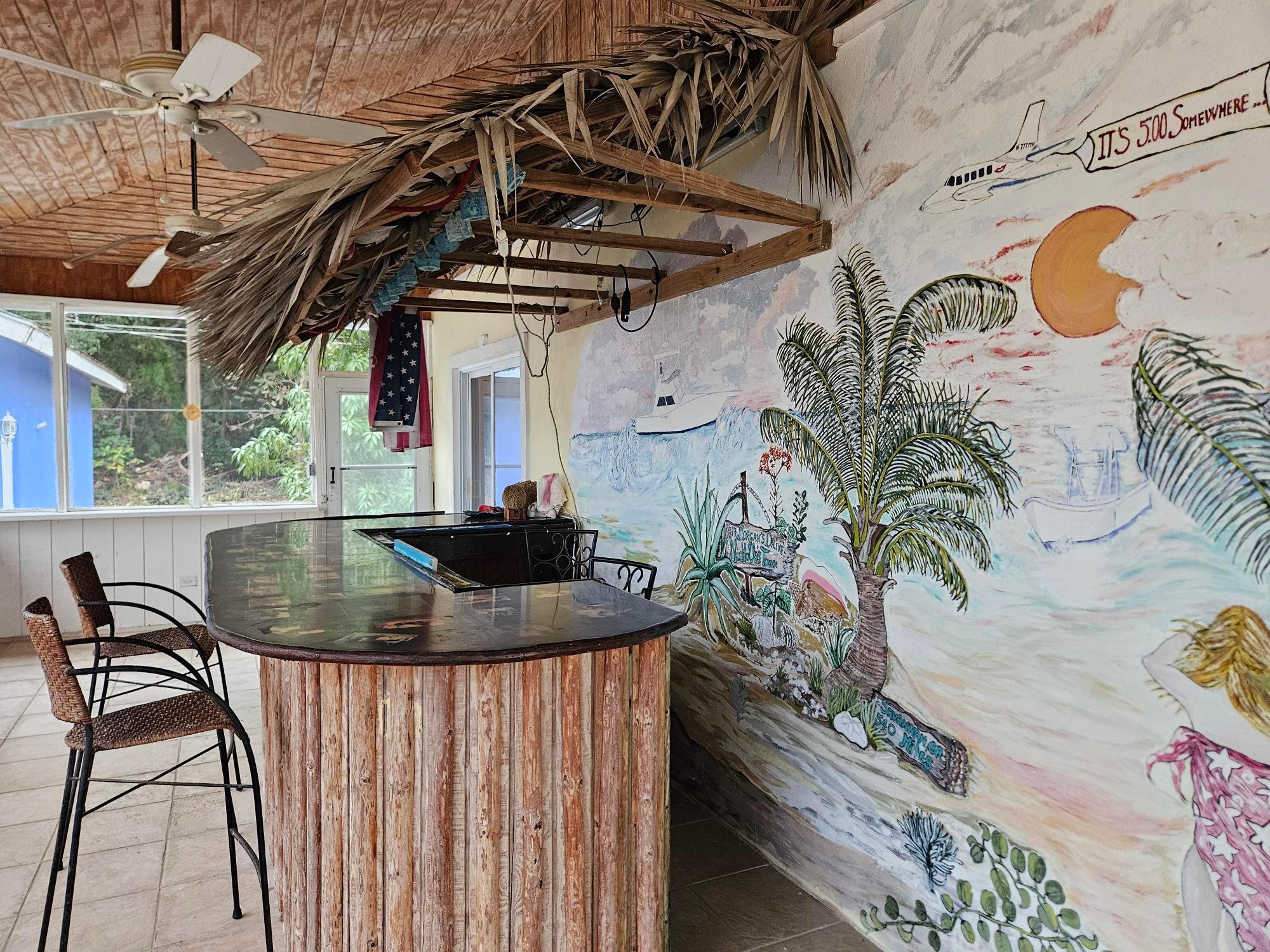 This beautifully maintained 2-bedroom, 2-bath home offers a rare turnkey opportunity and comes fully furnished for effortless move-in. Built just 11 years ago, the residence features a bright, open living and kitchen area highlighted by soaring 23-foot ceilings that create an impressive sense of space and light. The kitchen is outfitted with custom cabinets crafted from Bahamian pine, adding warmth and character, and includes all appliances—refrigerator, stove, microwave, washer, and dryer—along with an outdoor grill for easy entertaining. The home sits on a generous 11,250 sq ft lot and offers 1,730 sq ft of comfortable living space designed for both relaxation and functionality. The garage is fully equipped, with all tools included in the sale, making it ideal for hobbyists or those who value convenience. As an added bonus, the deal also includes a 2012 Mercedes-Benz B180, providing exceptional value rarely found in a property offering. This is a unique, all-inclusive package combining quality construction, thoughtful features, and unmatched extras.