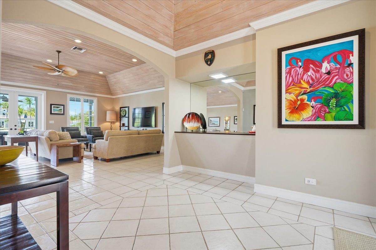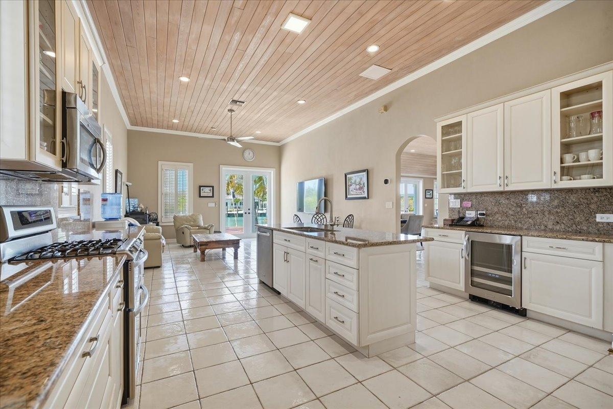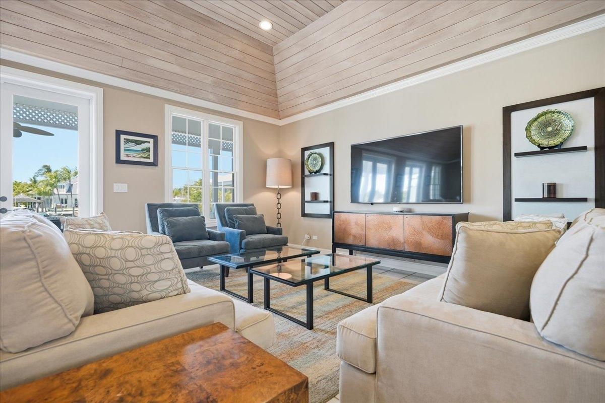 Located on a quiet cul de sac in Old Fort Bay, 3 Beach Island offers 100 feet of canal frontage with an 80 ft dock and approximately 3,500 sq ft of single level interior living space. The four bedroom, five and a half bathroom layout opens directly to the pool, patio, and gazebo ideal for outdoor dining and entertaining. This home is move in ready with a modern custom kitchen, stainless steel appliances, Lutron lighting with home automation, impact resistant doors, and drop down shutters for all windows. Additional features include a fully automatic diesel generator, heated pool, and a golf cart included. Sold fully furnished, including original Bahamian artwork.