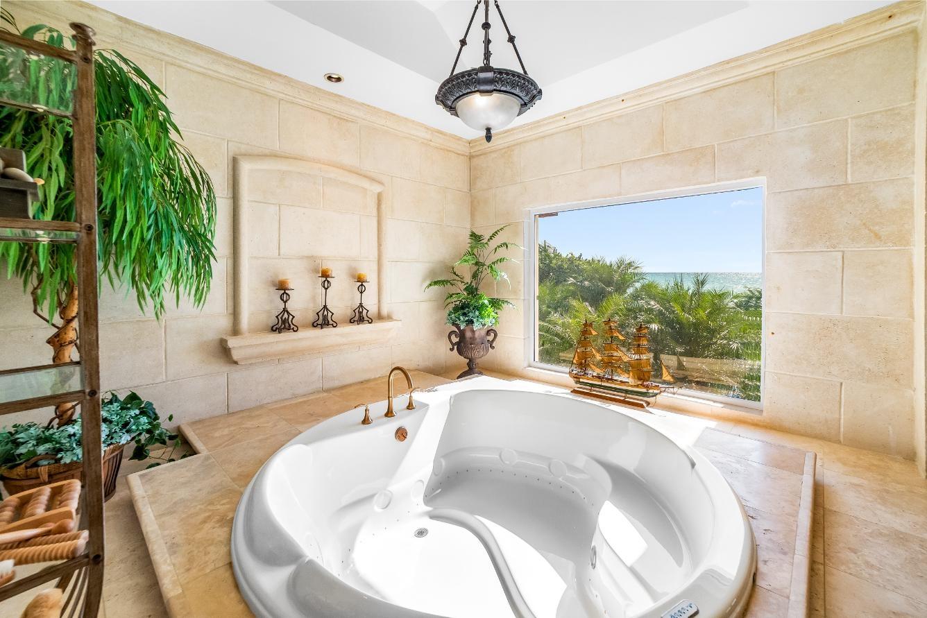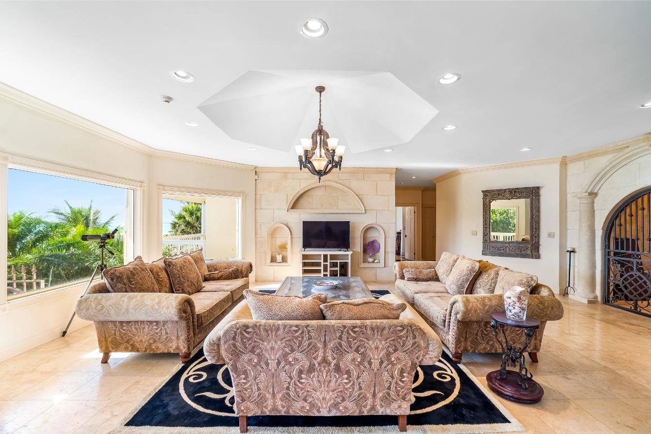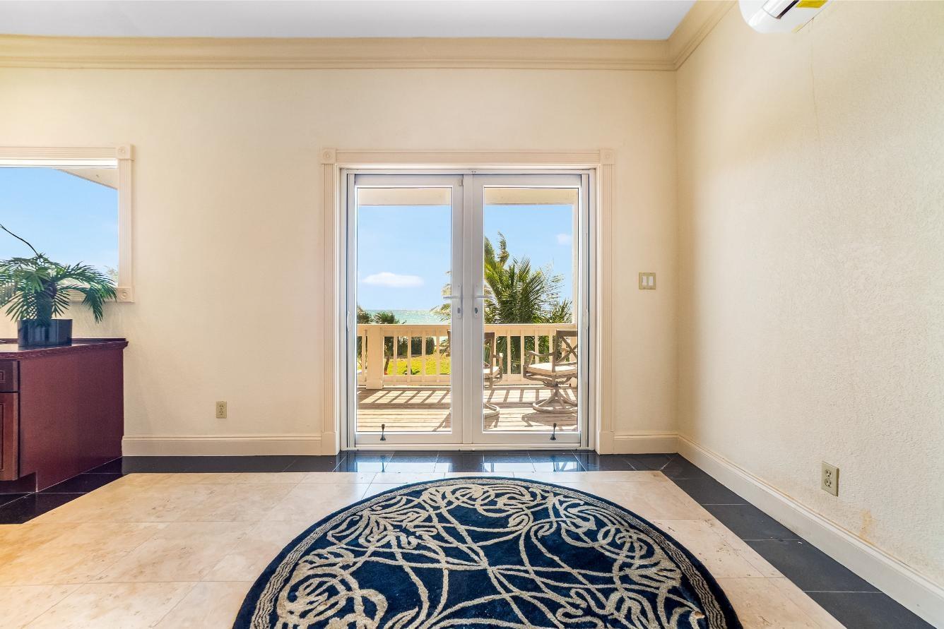 Experience refined island living in this exceptional single-family waterfront residence located in the sought-after Turtle Reef Settlement, East Grand Bahama. Designed for comfort, elegance, and functionality, this 3-bedroom, 3-bathroom home spans approximately 4,000 square feet and offers breathtaking ocean views throughout. The heart of the home is a spacious, chef-inspired kitchen outfitted with premium, high-end appliances, including a 36” Wolf oven, 30” Thermador oven, 36” Thermador induction cooktop, and a 30” GE Advantium halogen oven. Custom high-end cabinetry, a large pantry, and a generously sized laundry room add both style and convenience. Step outside to enjoy a waterfall pool overlooking 120 feet of pristine beachfront, perfect for entertaining or relaxing in total privacy. The property features irrigation from a private well, lush outdoor spaces, and a garage with ceramic flooring, as well as a dedicated gardener’s room with shower. Inside, luxury details abound, including designer ceilings, travertine flooring, hurricane-proof windows with shutters, and an elevator