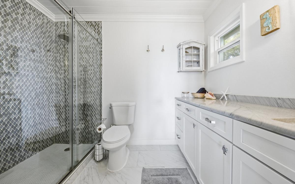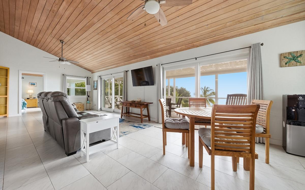 Completely renovated in 2022, Ware A Dise is a beautifully reimagined coastal residence nestled among lush tropical gardens in the heart of Palmetto Point. Originally built with enduring craftsmanship, the home now blends timeless island character with modern performance and storm-resilient upgrades. Water views and cooling sea breezes are enjoyed from nearly every room, while an open-concept great room flows seamlessly to an aluminum-framed screened veranda — perfect for relaxed indoor-outdoor living. The state-of-the-art kitchen anchors the main level, complemented by three spacious bedrooms, including two en-suite retreats with private outdoor access. An expansive entry deck and multi-level Trex sun decks create ideal spaces for entertaining and sunset gatherings. Below, a generous garage provides ample storage for vehicles and watercraft. Along the shoreline, a naturally protected swimming cove offers calm access for paddleboarding, kayaking, and launching small watercraft — a rare and highly desirable feature. Upgrades include impact-rated windows and doors, storm shutters