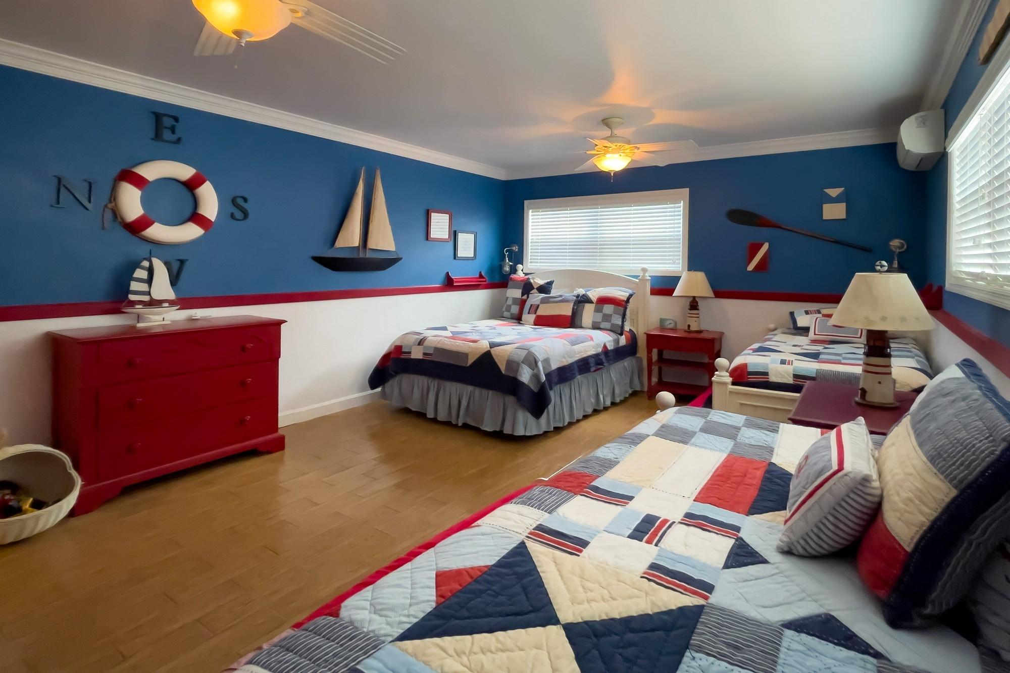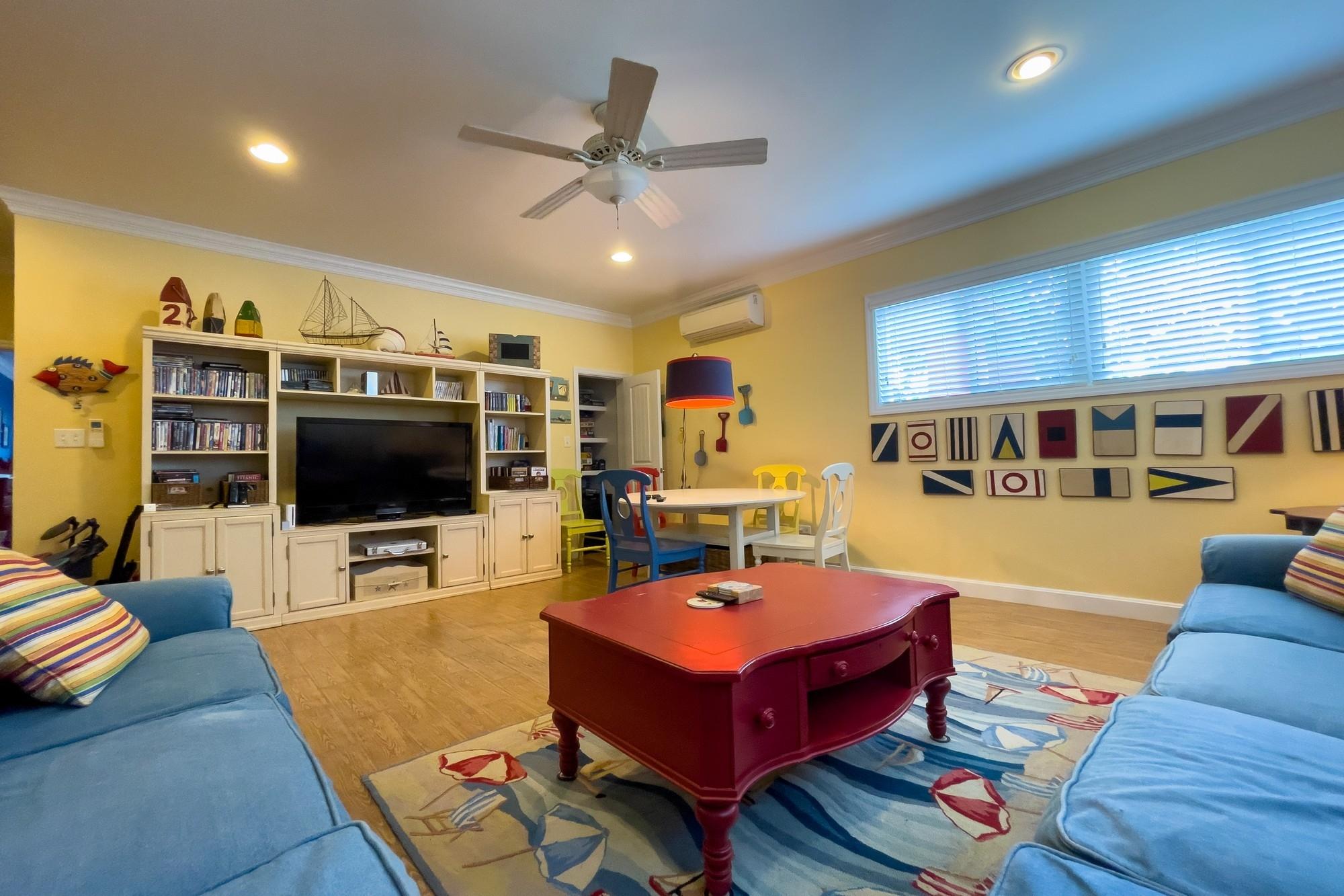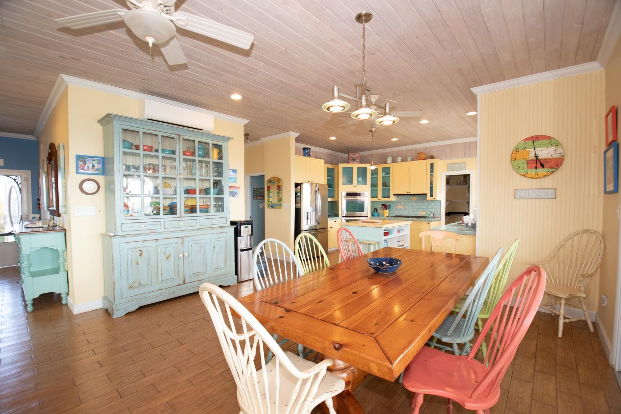 Welcome to Savannah Sunset, a stunning oceanfront home with a pool on the tranquil shores of Little Bay. Spanning two acres, this property offers ample space for additional cottages or a second residence. The great room boasts vibrant colors and breathtaking ocean views through expansive floor-to-ceiling windows. The open layout flows into a cheerful kitchen, spacious pantry, dining area, and a screened porch—ideal for relaxation, where you can enjoy the refreshing breezes and scenic vistas. The main level features two large bedrooms with king-sized beds and en-suite bathrooms. One bedroom overlooks the ocean, while the other offers views of the lush garden. Step outside to the boardwalk leading to the pool. The lower level is perfect for entertainment, with a cozy family room, plush seating, a large TV, and a wide selection of games, books, and activities. A bright bedroom accommodating up to six people is also located here, with a queen bed, twin beds, and trundles.