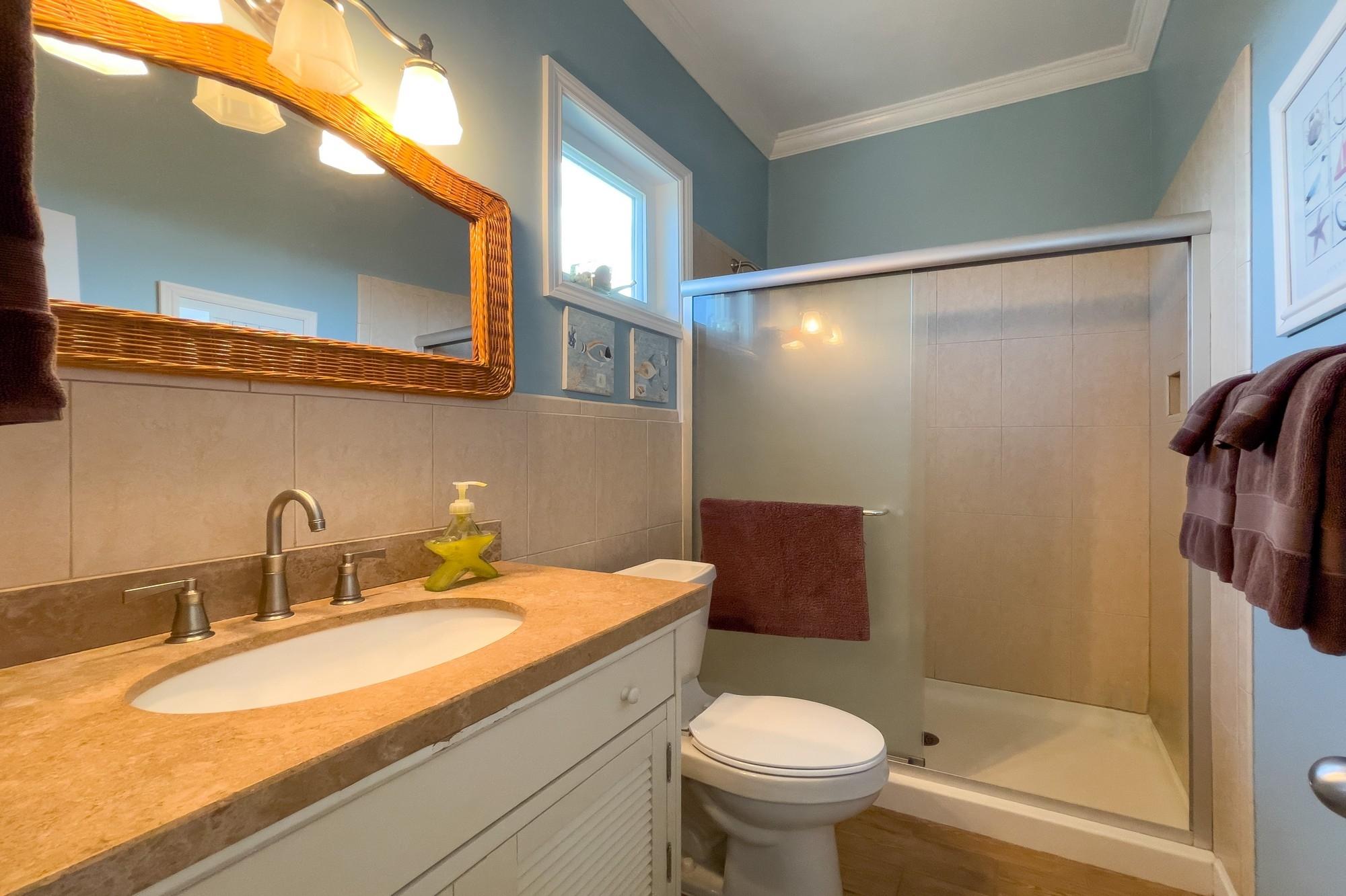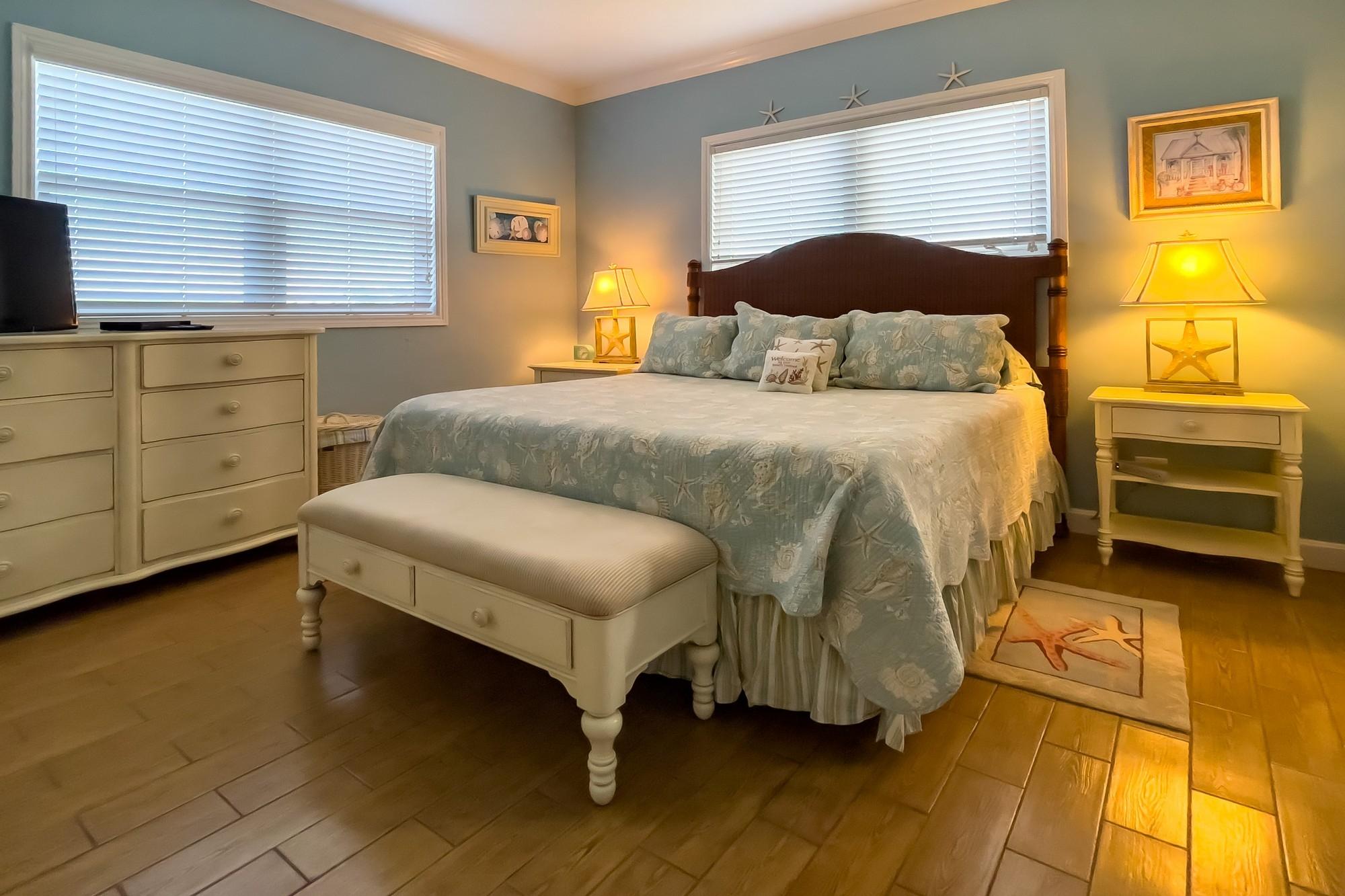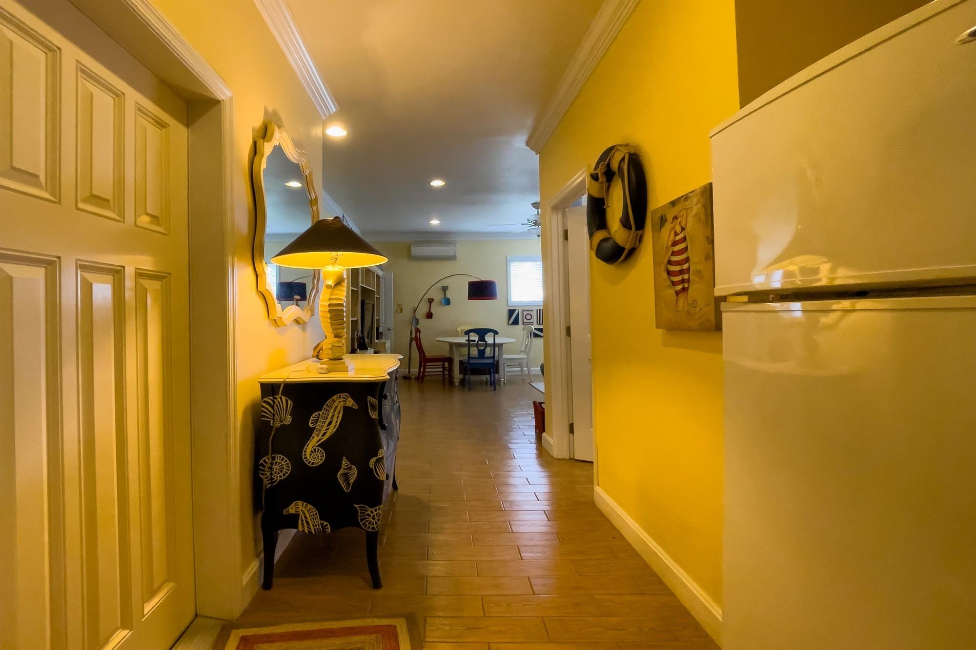 Welcome to Savannah Sunset, a stunning oceanfront home with a pool on the tranquil shores of Little Bay. Spanning two acres, this property offers ample space for additional cottages or a second residence. The great room boasts vibrant colors and breathtaking ocean views through expansive floor-to-ceiling windows. The open layout flows into a cheerful kitchen, spacious pantry, dining area, and a screened porch—ideal for relaxation, where you can enjoy the refreshing breezes and scenic vistas. The main level features two large bedrooms with king-sized beds and en-suite bathrooms. One bedroom overlooks the ocean, while the other offers views of the lush garden. Step outside to the boardwalk leading to the pool. The lower level is perfect for entertainment, with a cozy family room, plush seating, a large TV, and a wide selection of games, books, and activities. A bright bedroom accommodating up to six people is also located here, with a queen bed, twin beds, and trundles.