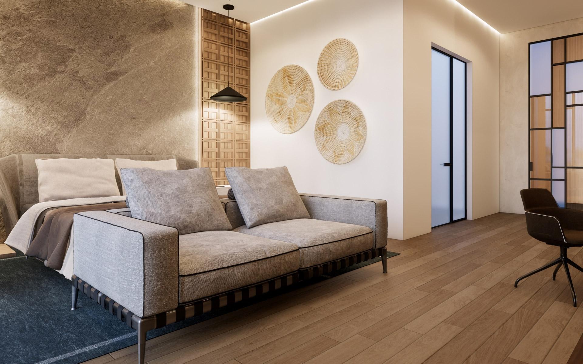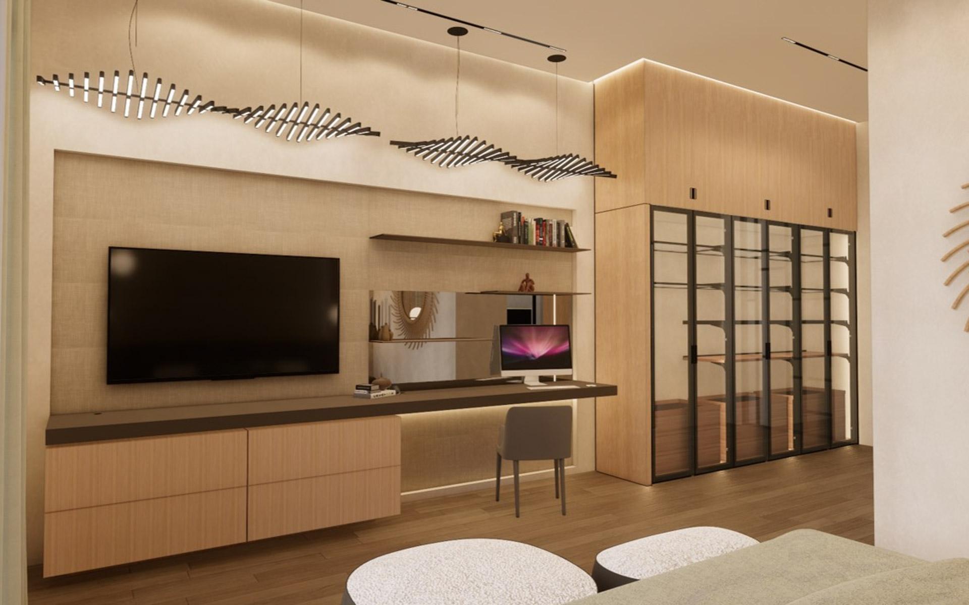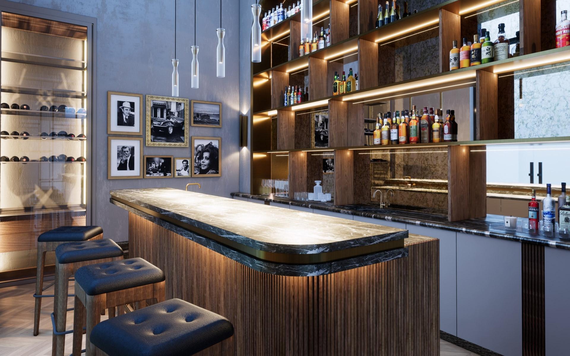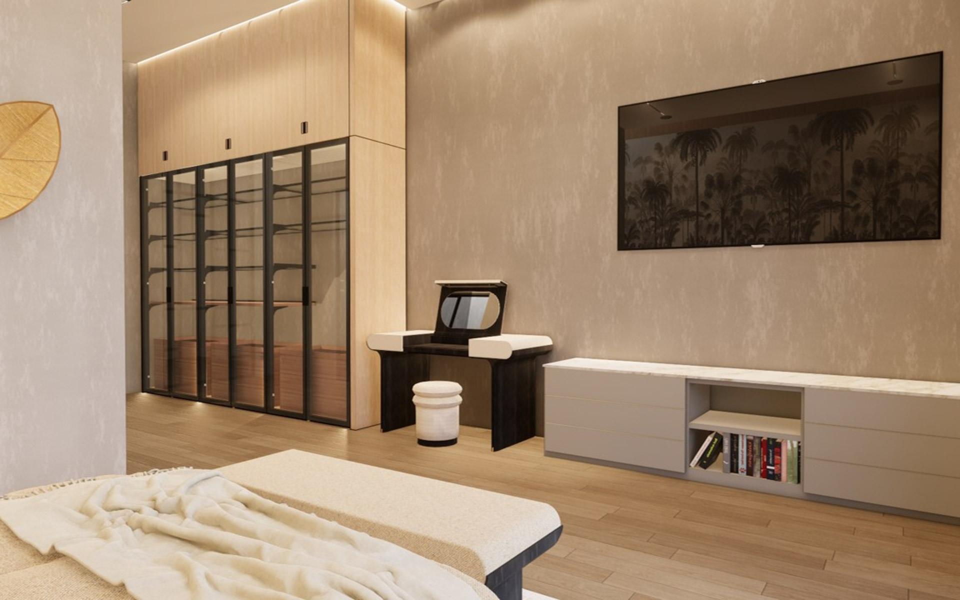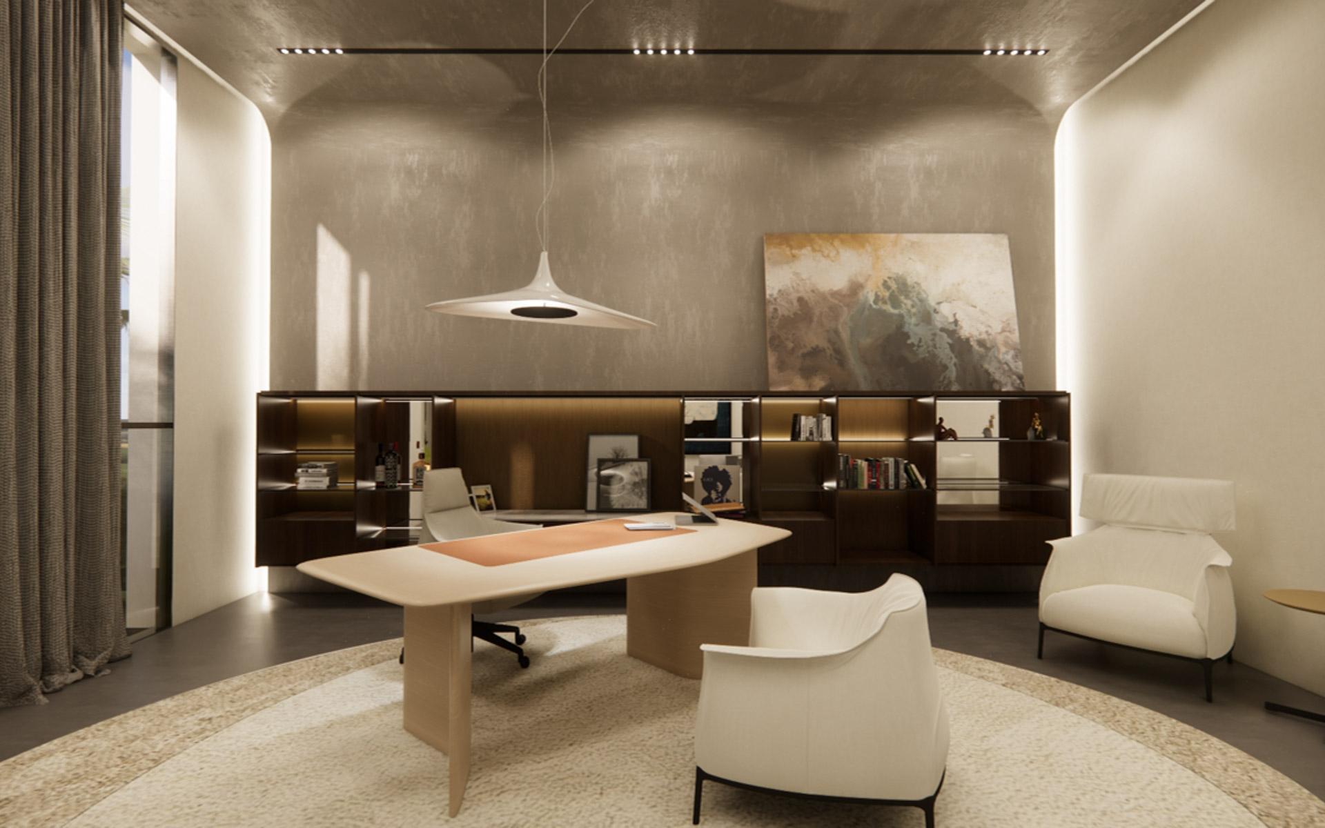 Situated at the entrance of the prestigious Equestrian Estates at Albany, ZOI is a masterful modern interpretation of a courtyard home. Spanning 1.2 acres, this estate offers approximately 12,000 square feet of air-conditioned living space, thoughtfully designed by renowned architect THA and interior designer CVC. The residence features a truly iconic design, blending striking interiors with lush landscaping to create a seamless indoor-outdoor experience. Stepping into the living area, you are welcomed by vaulted 16 ft high ceilings with rattan and wooden beams. Two intimate seating areas flank the entrance, while beyond, expansive living spaces feature floor-to-ceiling windows. Off the living room, the formal dining area showcases a grand 16-seat table and a full-wall panoramic window, offering an unforgettable dining experience. The state-of-the-art kitchen complete with two large islands, and an additional 10-seat dining area flows into the family room enhancing the home's functionality and elegance.
