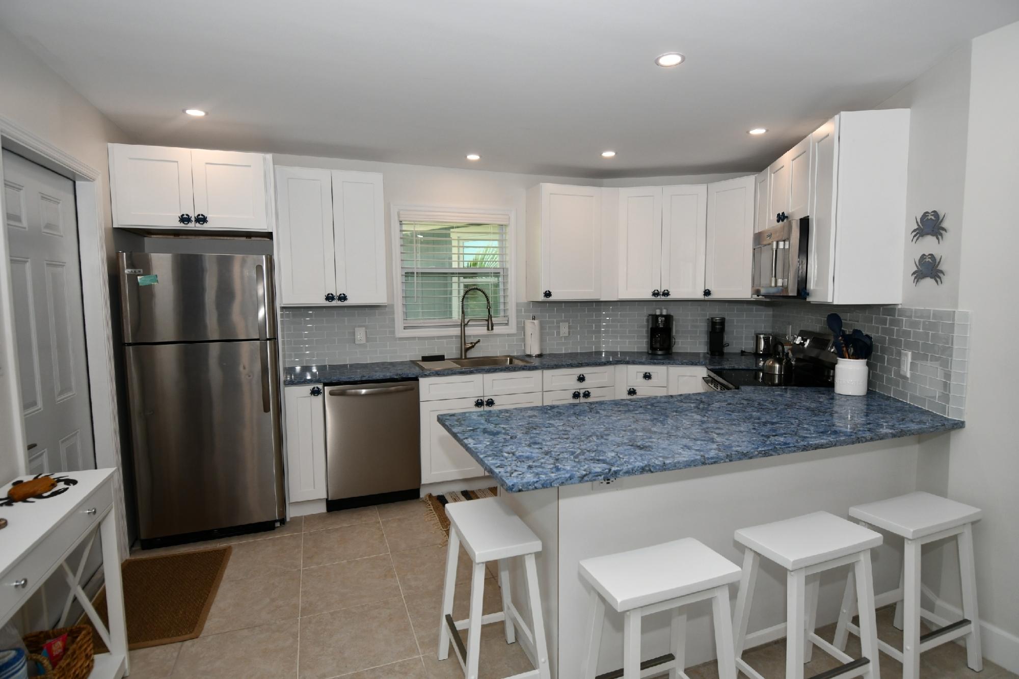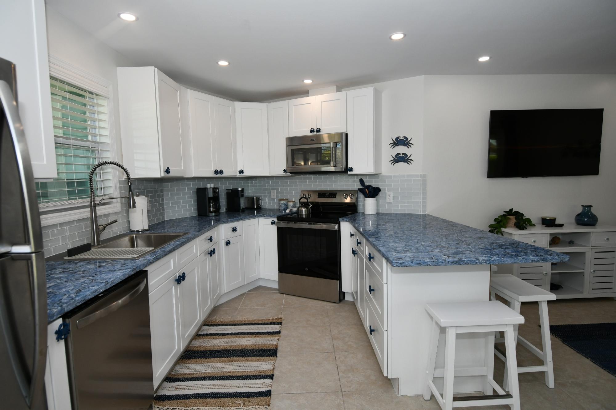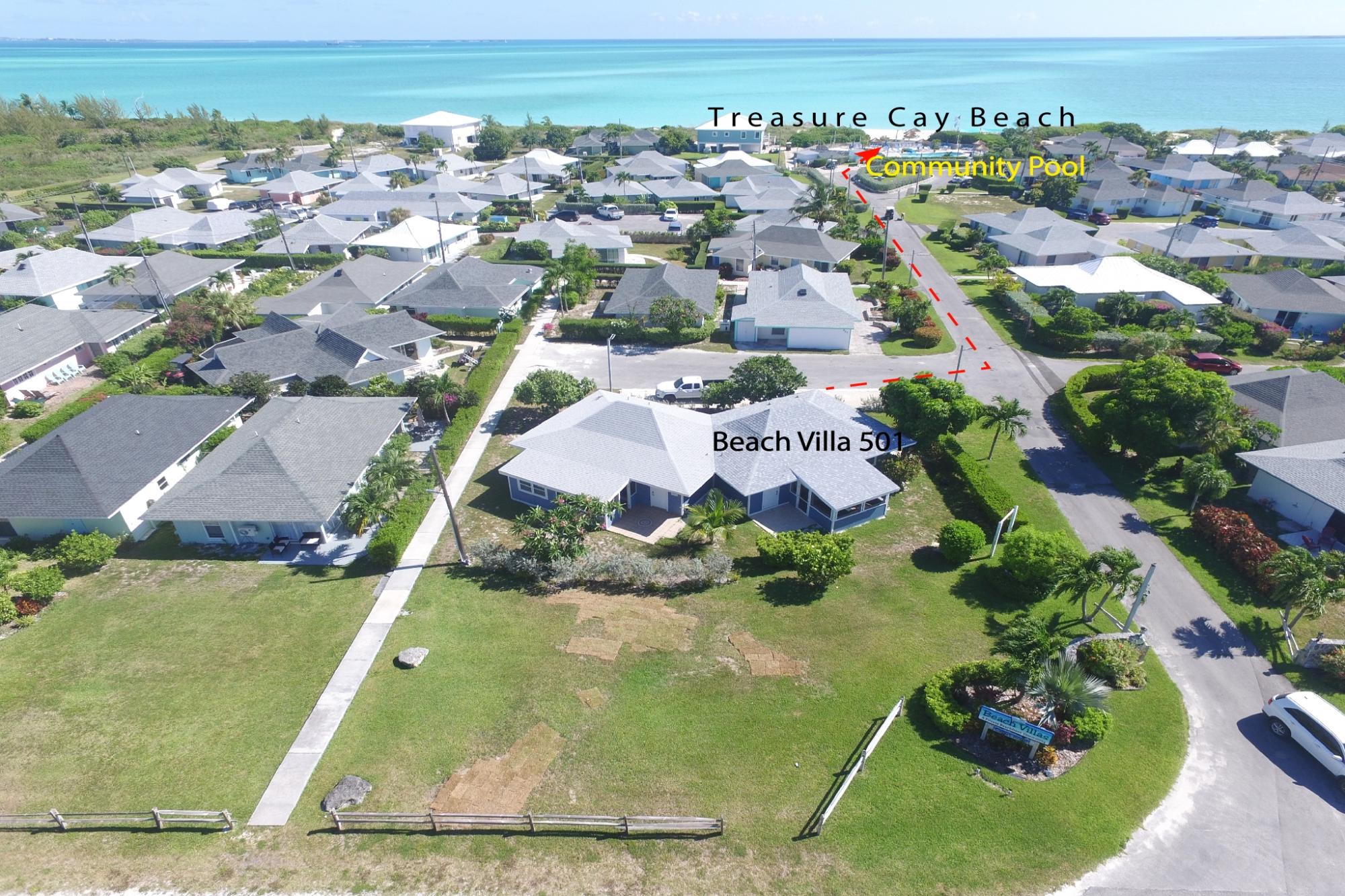 Blue Crab Beach Villa # 501 is an attractive 2 bedroom 2 bath fully furnished "turn-key" Villa, tastefully decorated and furnished villa offers a spacious 832 sq. ft. of comfortable tropical island living space under air. It also boasts a pleasant open concept kitchen, living and dining area in addition, large sliding glass doors leading to a large screened in lanai. This newly renovated and inviting villa has been in a vacation rental pool and presents itself well. Located in the popular Beach Villas complex within the gated residential community of Treasure Cay, Abaco, Bahamas and just a couple of minute walk to the Treasure Cay Beach, voted "One of the top ten beaches in the world" by National Geographic. This exceptional villa is situated on a corner lot, providing a comfortable degree of privacy. This villa is just a short walk from Treasure Cay Beach, the Beach Villas community pool, boat rentals and Treasure Cay's main commercial area comprising of retail shops, restaurants, library, & medical clinic. 30 minute drive to Marsh Harbour for shopping and International airport MHH.
