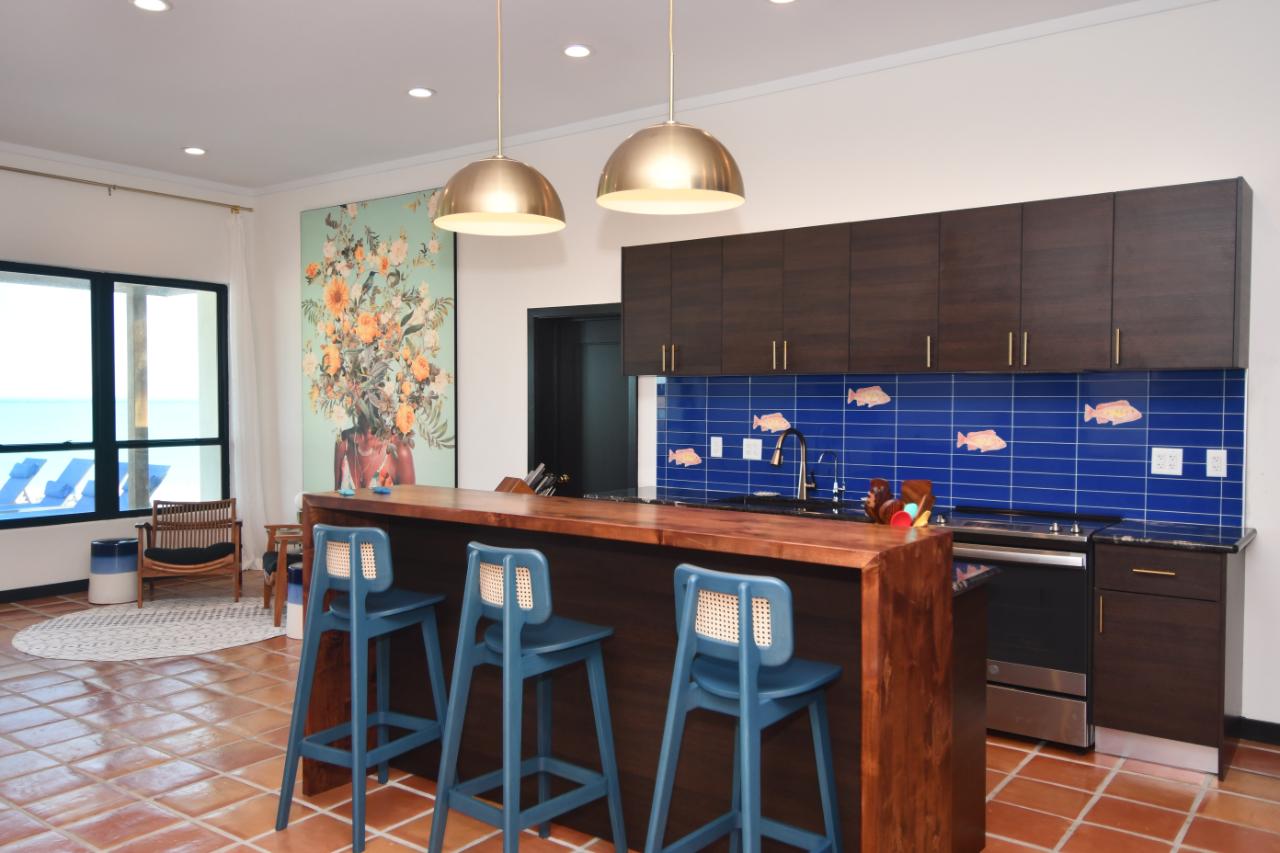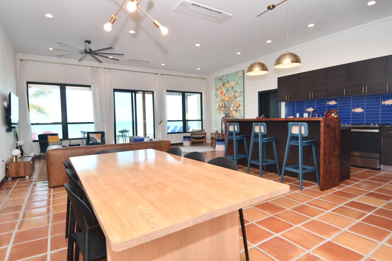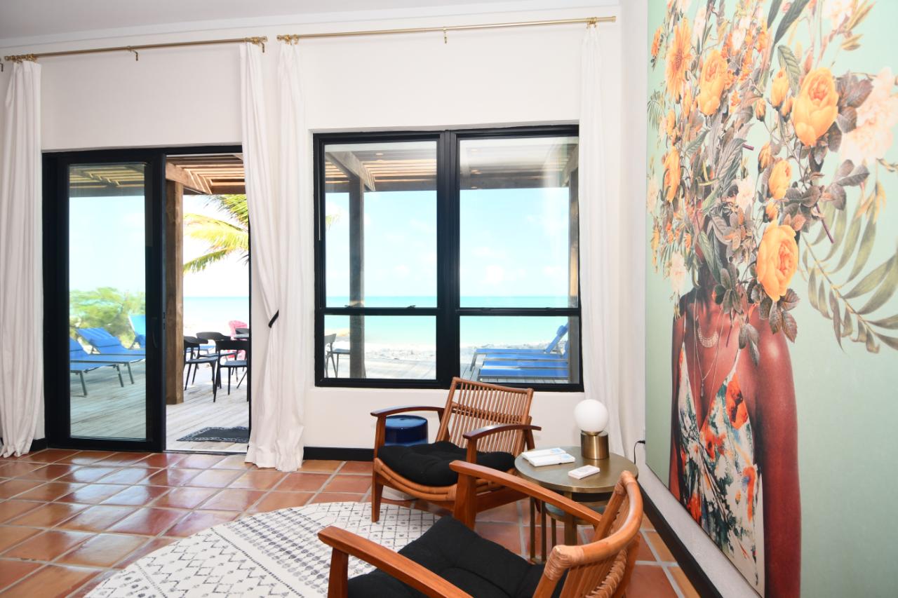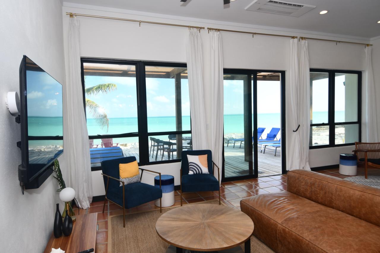 Tangled Up In Blue- This turn-key cozy fully furnished beach home is a charming 5 bedroom, 4 bath and was totally renovated, refurbished & furnished last year. It is situated at the end of a quiet private cul-de-sac within the beachfront residential community of Treasure Cay, Abaco, Bahamas. This tropical retreat with 2,252 s/f under air features open living space which focuses on the view and outdoor space. The open living and dining areas all afford spectacular unobstructed views of beautiful Windward Beach and the sparkling turquoise hues of the Sea of Abaco. 4 of 5 beachfront bedrooms, include 3 master suites, each with its on-suite bath.. There is 750 s/f of open wooden deck for lounging and evening BBQs just steps from 103 ft. of white sandy beach frontage on Windward Beach. This oversized parcel of almost ½ an acre includes a 300 s/f +/-, 1.5 vehicle garage. Minimum landscape maintenance with pebble stone drive and beach sand yard. Imagine waking up to stunning beach views each morning on your own beach, you can enjoy basking in the warm sun & sea with your family & friends.