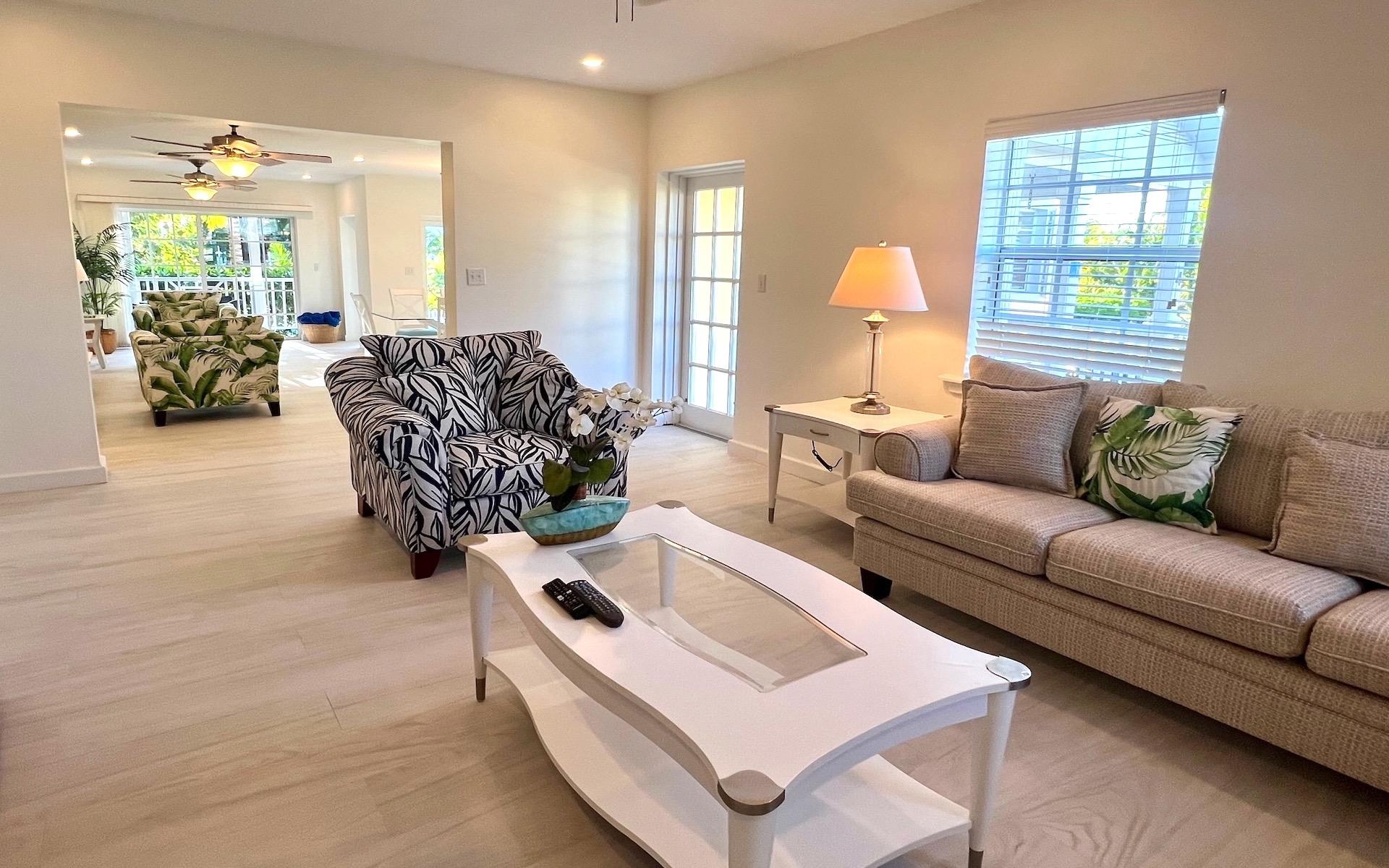 Set on one of the largest lots in Sandyport, with lush landscaping that creates a beautiful, private living experience. The home has a brand-new, large Coral stone-rimmed pool that creates a beautiful Ambiance and a view beyond King Fisher Island, with its fully built-out luxury homes. Recently renovated and upgraded, 4 Royal Palm Cay is move-in ready. The home has 3 ensuite bedrooms and a large family room. All of the cabinetry is solid wood, and the countertops are granite. Both upstairs and downstairs have large covered balconies overlooking the canal and the home's private beach and dock beyond. 4 Royal Palm Cay is ready now for you to begin your Sandyport Lifestyle