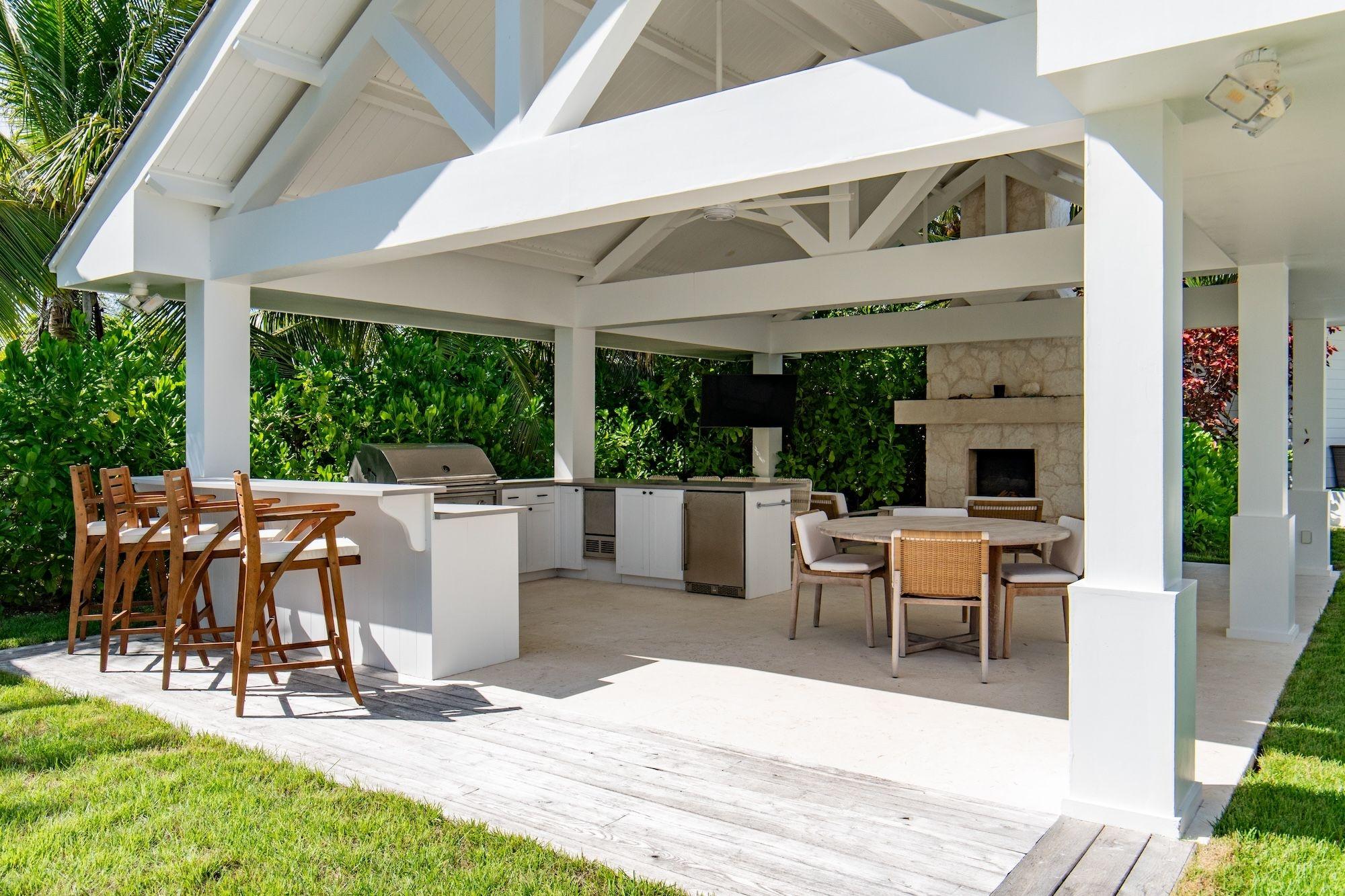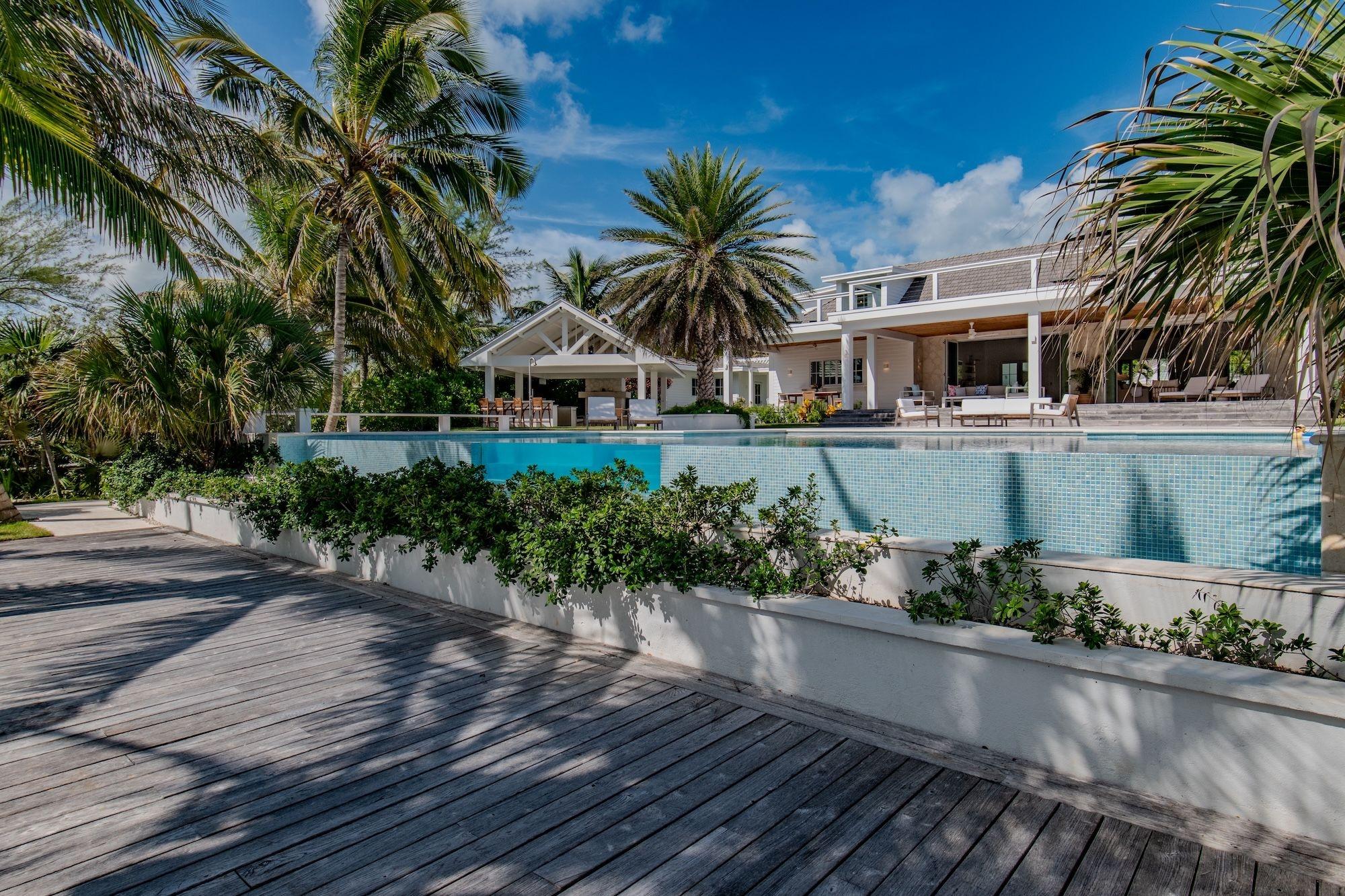 Nestled on the private island of Windermere along the Atlantic coast, lays a magnificent 2.4-acre property boasting 173 ft. of pristine pink sand beach. Ensuring maximum privacy, the estate features professionally landscaped grounds and benefits from Windermere Island's 24/7 security. Completed in 2023, the expansive 10,000 sq ft property includes four primary suites, each with king-sized beds, walk-in closets, and ensuite bathrooms. Notably, one suite is a fully ADA-compatible option. An additional highlight is the epic bunk room, designed to comfortably accommodate up to six, complete with its own ensuite. Adding to the allure is a separate private owner's cottage spanning approximately 1,000 sq. ft., with an outdoor bath and shower retreat. Each space is individually appointed with split A/C units and on-demand hot water systems. Seamlessly host gatherings with a spacious chef's kitchen, oversized pantry, and a living room/dining area. The heated infinity pool, features a striking glass element child-friendly area, complemented by a sprawling 600 sq ft open-air outdoor kitchen.